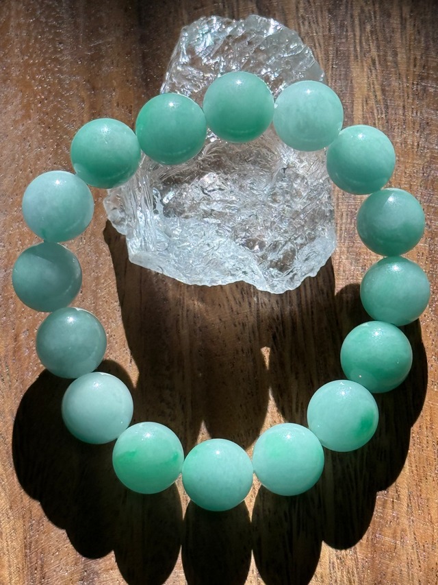 〜 洗練された透明感、内側から輝く翡翠 〜 ミャンマー産 翡翠《全透過・ブレスレット》 本品は、ミャンマー産の高品質な天然翡翠を使用した 全透過タイプのブレスレットです。 光を受けることで内部まで澄んで見える透明感と、 翡翠特有の深みあるグリーンが調和し、 落ち着きと気品を併せ持った表情を見せてくれます。 派手さではなく、 静かに美しい翡翠を求める方におすすめしたい一品です。 ⸻ ■ 全透過ミャンマー翡翠の魅力 • ミャンマー産・天然翡翠 • 内部まで光を通す高い透過性 • 透明感の中に感じられる上質なグリーン • 無着色・天然由来の色合い • 一珠一珠、表情の異なる個体 透過性の高い翡翠は原石段階での質が重要で、 ここまで均一に光を通す個体は多くありません。 ⸻ ■ デザインと使い心地 12.5mm玉ならではの存在感がありながら、 透過感があるため重たく見えず、 手元を上品にまとめてくれます。 • 日常使い • 仕事中のお守り的なブレスレット • 特別な日の装い いずれにも自然に馴染むデザインです。 ⸻ ■ 翡翠について(文化的背景) 翡翠は古来より 「健康」「富」「繁栄」の象徴として親しまれてきました。 東洋文化においては、 精神の安定や調和を大切にする石として扱われてきた歴史があります。 ※これらは文化的・象徴的な意味合いであり、 効果を保証するものではありません。 ⸻ ■ こんな方におすすめ • 透過性の高い翡翠を探している方 • ミャンマー産翡翠の質を重視したい方 • 派手すぎない、上質なブレスレットを求める方 • 長く身につけられる翡翠を選びたい方 • 自分への節目のご褒美、または大切な方への贈り物に ⸻ ■ 商品詳細 • 産地:ミャンマー • 素材:天然 翡翠(無着色) • 玉サイズ:約12.5mm • 内径:約16.5cm • 管理番号:MBH-0015 ※写真の現物をお届けします。 ⸻ ■ お手入れ・取り扱いについて • 直射日光を避け、安定した場所で保管してください • 化学薬品との接触はお控えください • 落下や強い衝撃にはご注意ください ⸻ ■ 発送について • ご注文後 1〜3営業日以内に発送 • 他商品との同梱時は発送が前後する場合があります • 返品・交換はお受けできません ⚫︎出品前には必ず検品しておりますが、お届けした商品に不明点がございましたら、レビューを書く前にショップまでご連絡くださいませ。 ⸻ ■ ショップより このミャンマー産翡翠は、 光を当てたときの透過の美しさが何よりの魅力です。 主張しすぎず、 それでいて確かな存在感を持つ翡翠。 日常に静かな豊かさを添える一本として、 長くお楽しみいただけましたら幸いです。 #翡翠 #自分軸 #グラウンディング #ぶれない #中今