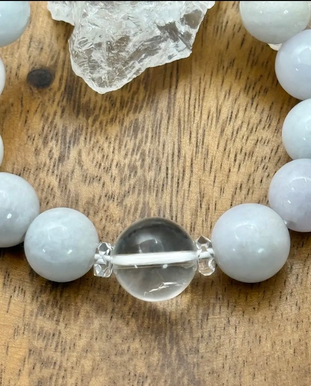 ミャンマー産の天然白翡翠と、 ヒマラヤクラック水晶を組み合わせたブレスレットです。 白翡翠ならではの柔らかな白と、 クラック水晶が生み出す内包の表情が調和し、 静かで神秘的な存在感を放っています。 派手さではなく、 奥行きのある美しさを楽しみたい方におすすめの一本です。 ⸻ ■ このブレスレットの魅力 • ミャンマー産 天然白翡翠 • ヒマラヤクラック水晶の自然な内包表情 • 時間とともに増す、しっとりとした艶 • 白と透明感が織りなす静かな存在感 • インテリアにも、身につけても映える一本 使い込むほどに、 石本来の質感がより引き立っていくのも魅力です。 ⸻ ■ 天然由来の個性について(価格について) ※ 最後の写真のように、一部に自然由来の茶色味が見られます。 これは天然石ならではの個性であり、 品質に問題はございませんが、 その点を踏まえ価格を抑えてご案内しております。 あらかじめご了承のうえ、 天然石の表情として楽しんでいただける方におすすめです。 ⸻ ■ サイズ・仕様 • 内径:約15cm • 白翡翠:約12mm • ヒマラヤクラック水晶:約14mm • 重さ:約52.17g しっかりとした存在感があり、 一本でも主役になるブレスレットです。 ⸻ ■ サイズ調整について • サイズアップ:ヒマラヤ水晶ビーズを追加 • サイズダウン:外した石を同封 ご希望の内径がございましたら、 ご購入時に概要欄またはメッセージよりお知らせください。 ⸻ ■ 白翡翠について(文化的背景) 白翡翠は古くから 「清らかさ」「調和」「安定」を象徴する石として 親しまれてきました。 また、 白翡翠と水晶の組み合わせは、 落ち着いたバランス感を大切にした組み合わせとして 選ばれることが多い石の組み合わせです。 ※これらは文化的・象徴的な意味合いであり、 効果を保証するものではありません。 ⸻ ■ こんな方におすすめ • 白翡翠のやさしい表情が好きな方 • クラック水晶の個性を楽しめる方 • 神秘的だけど落ち着いたブレスレットを探している方 • 天然石の「個性」を含めて愛せる方 • 特別感のある一点物を求めている方 ⸻ ■ 商品詳細 • 産地:ミャンマー • 素材:天然 白翡翠/ヒマラヤクラック水晶 • 内径:約15cm • 管理番号:MBH-0005 ※掲載写真の現物をお届けします。 ⸻ ■ お手入れ・取り扱いについて • 直射日光を避けて保管してください • 化学薬品との接触はお控えください • 硬い物との接触による傷にご注意ください ⸻ ■ 発送について • ご注文後 1〜3営業日以内に発送 • 複数商品ご注文時は発送が前後する場合があります • 返品・交換はお受けできません ⚫︎出品前には必ず検品しておりますが、お届けした商品に不明点がございましたら、レビューを書く前にショップまでご連絡くださいませ。 ⸻ ■ ショップより 白翡翠の静けさと、 ヒマラヤクラック水晶の自然な表情。 どちらも主張しすぎず、 それでいて確かな存在感を持った一本です。 天然石の個性を含めて、 「味わい」として楽しんでいただけたら嬉しいです。 #翡翠 #自分軸 #グラウンディング #ぶれない #中今