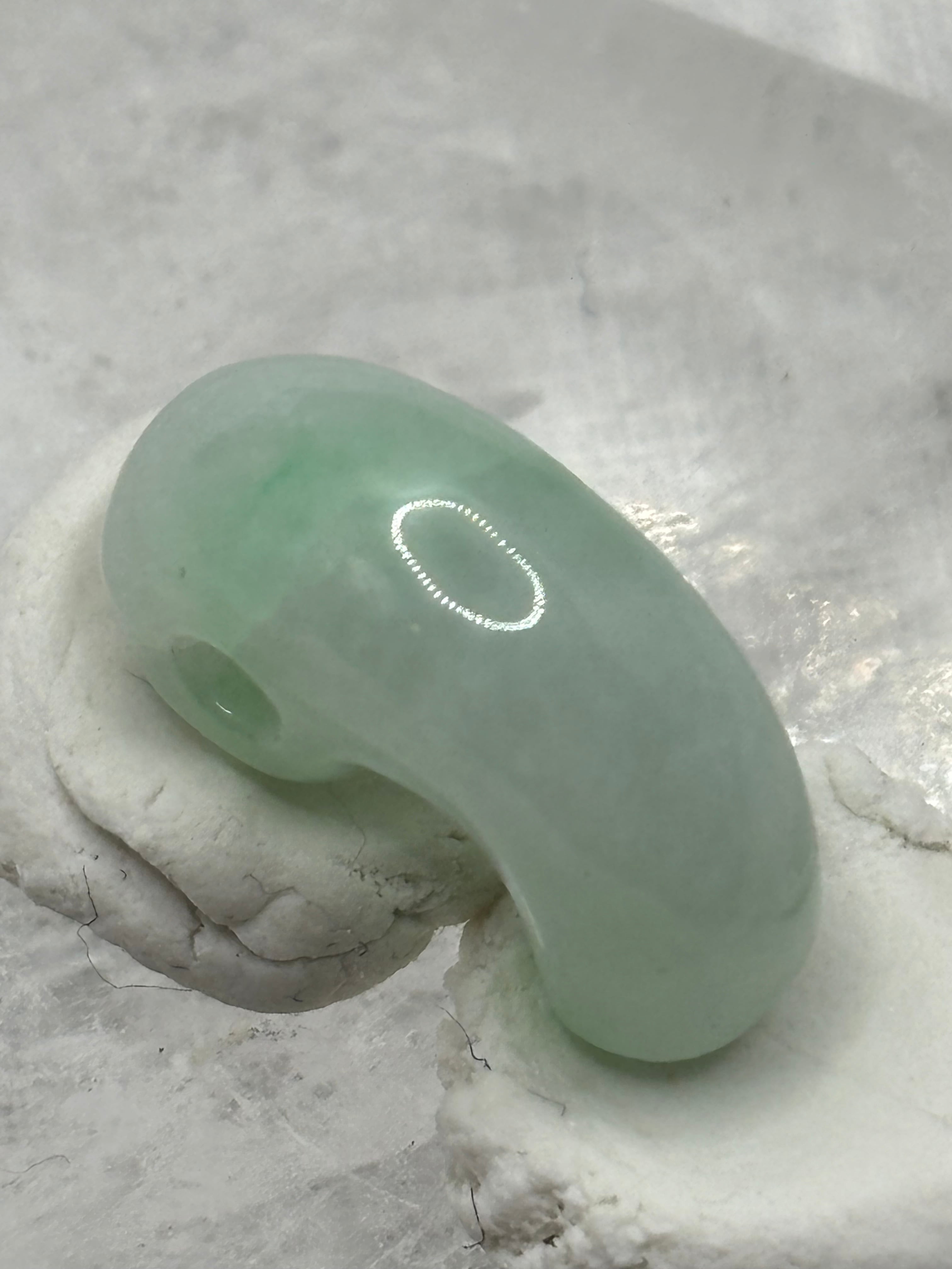 この勾玉は、小ぶりながらも優しいグリーンの色合いが持つ人の心を和ませ、独特の存在感を与えてくれることでしょう。透過度が抜群で、見る者を魅了するその美しさは、お守りやプレゼントとしても理想的です。