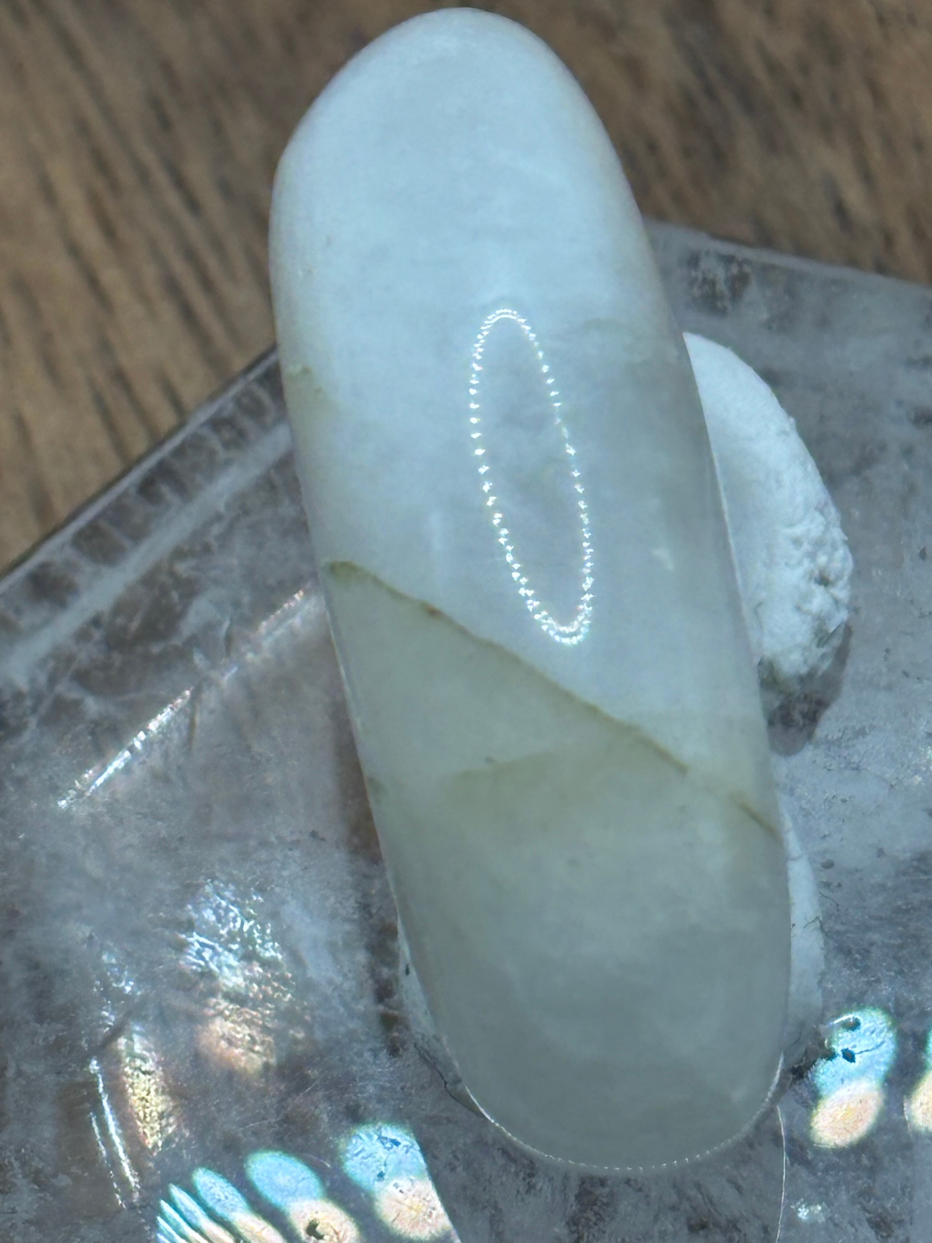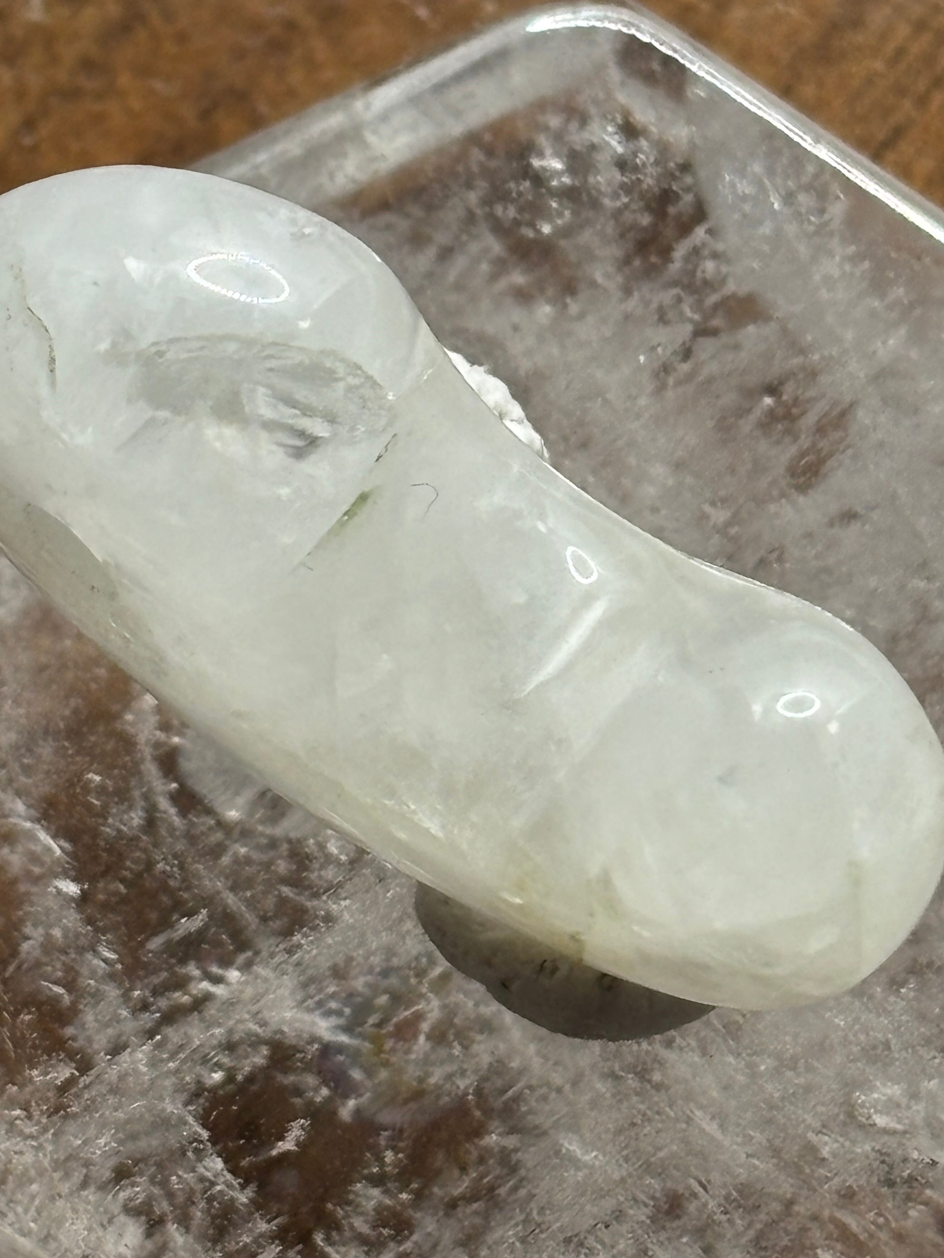 その優美なフォルムと白雲色の柔らかな輝きは、持つ人に特別なエネルギーを与え、心を落ち着けるアシスタントになるでしょう。この一品は、透過度が高く、見る者をうっとりさせる美しさが際立っています。