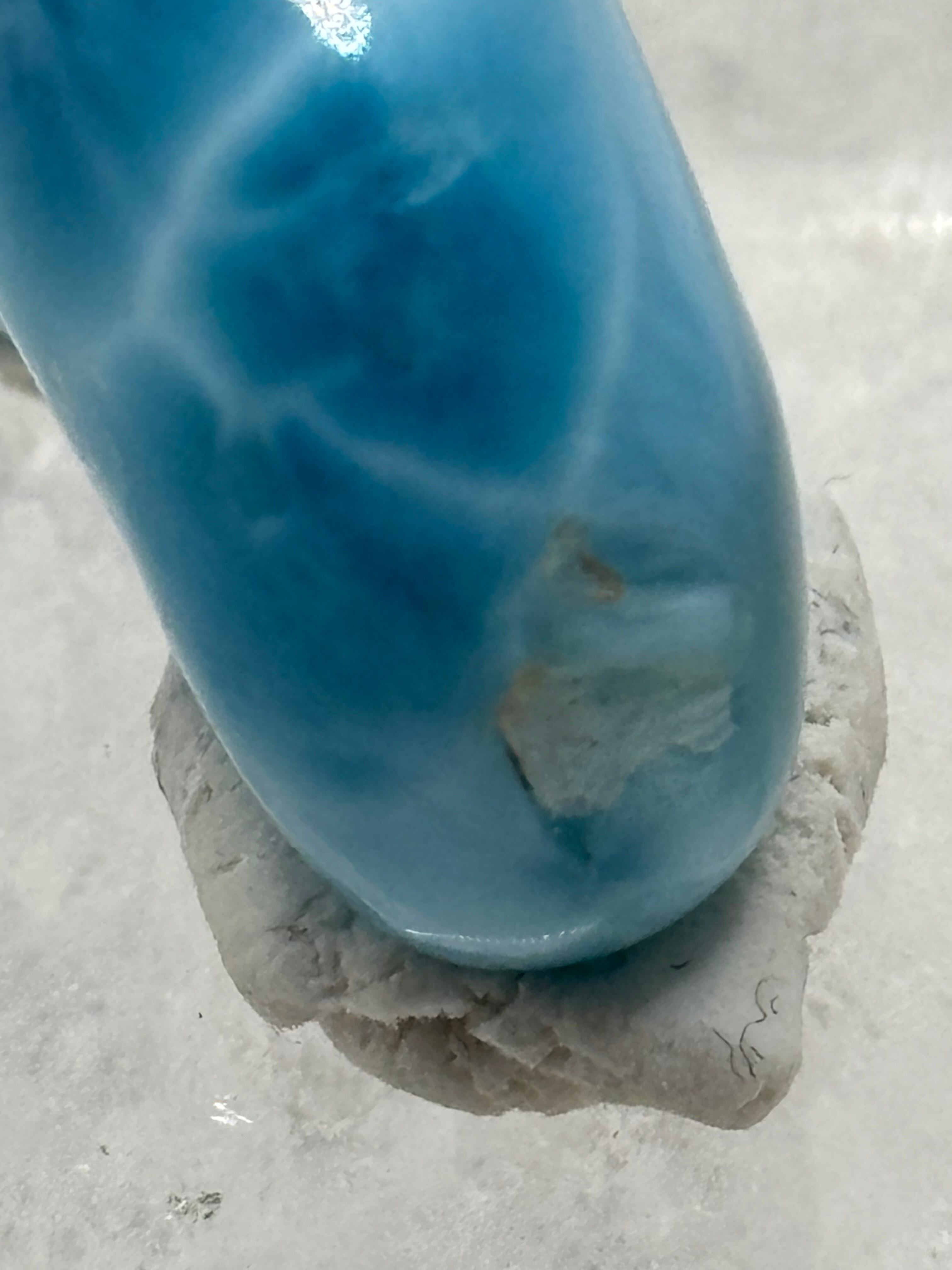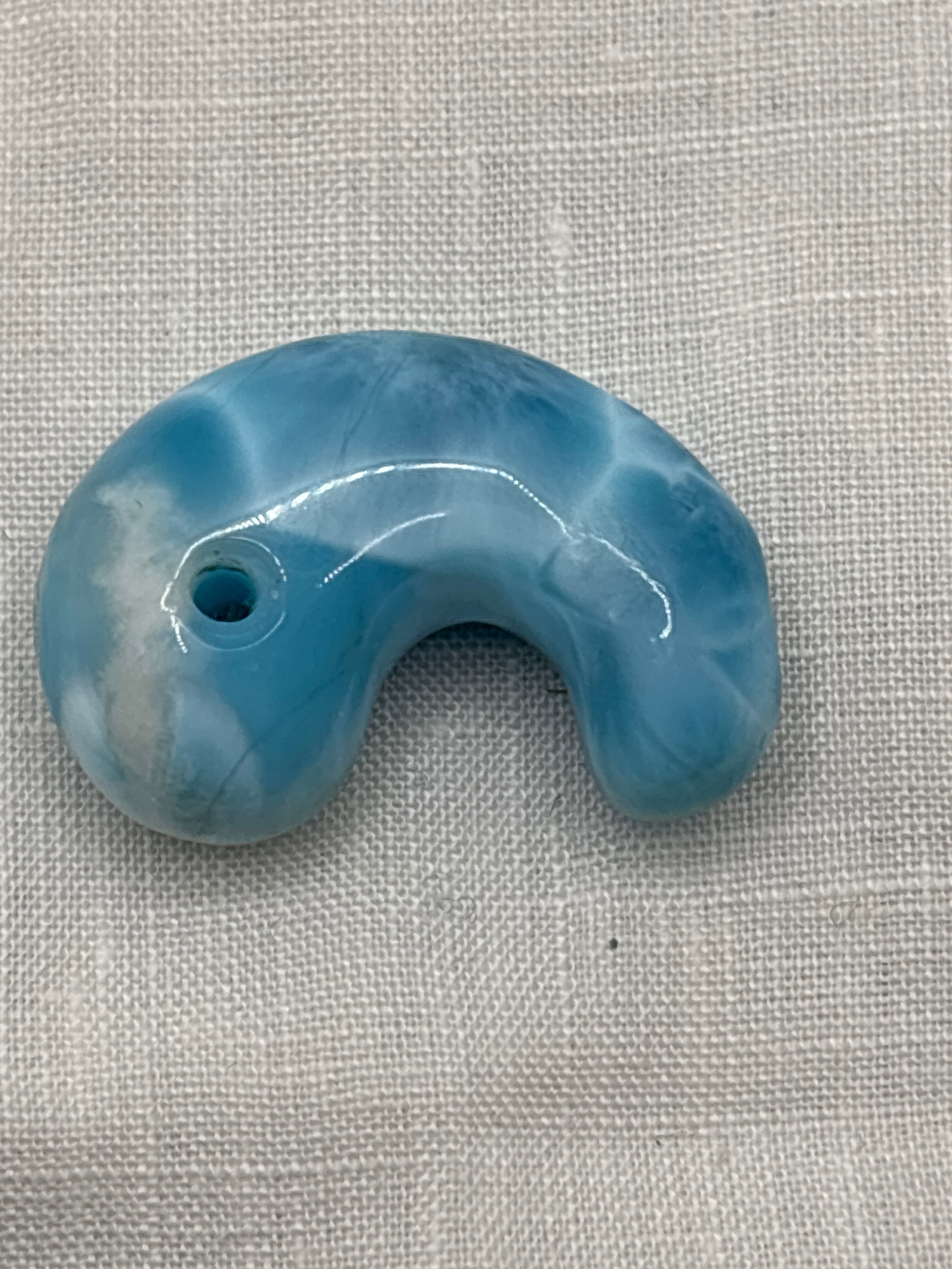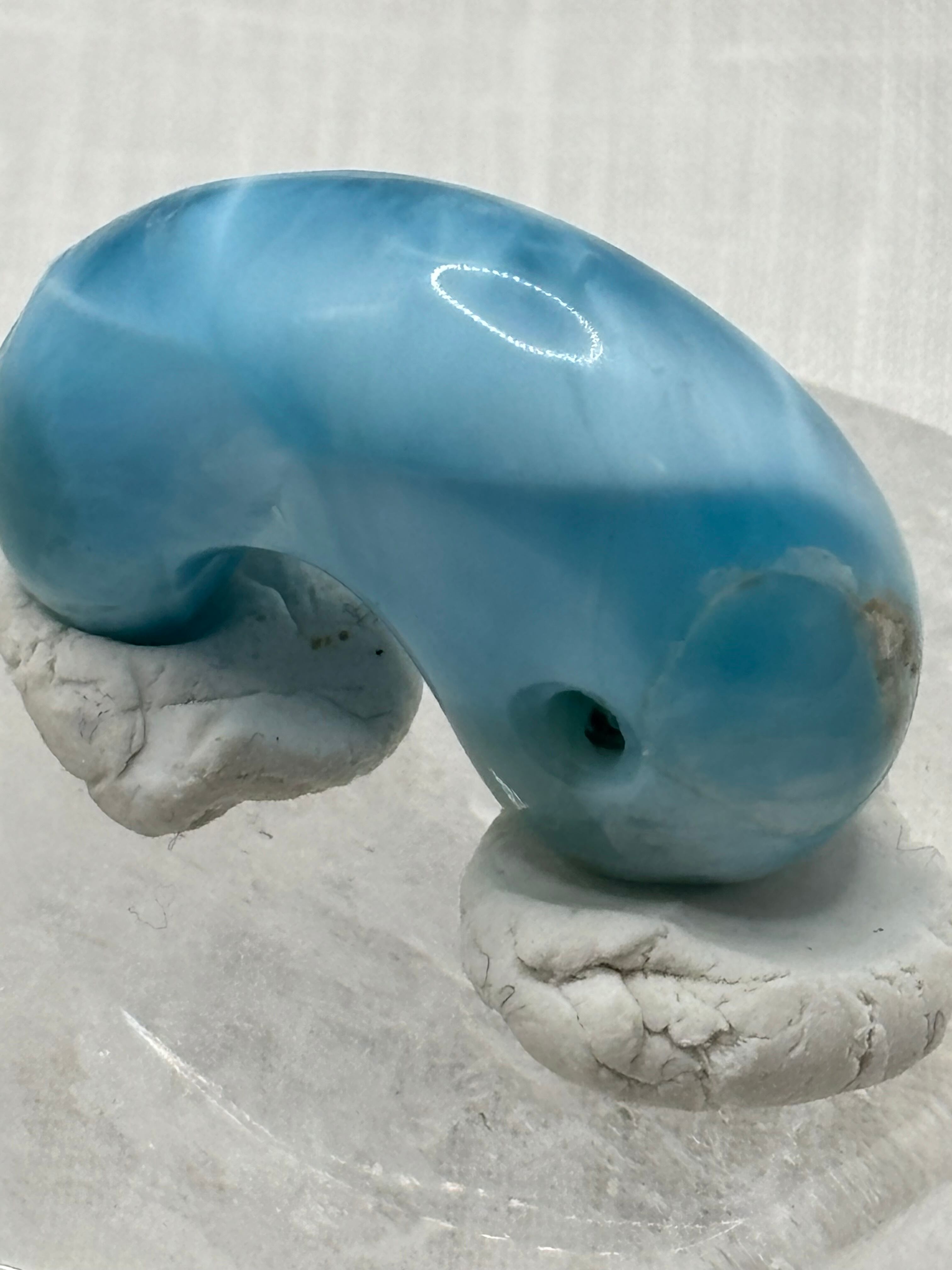 こちらのラリマー勾玉は、美しい海の模様が魅力の特別な存在です。少しの欠けがあるものの、その独特な美しさが心に癒しをもたらします。私は個人的には欠けやインクルージョンも石の魅力だと思うので、とても美しい子だなと眺めております。もし気に入って下さる方がいらっしゃれば本当に嬉しいです!