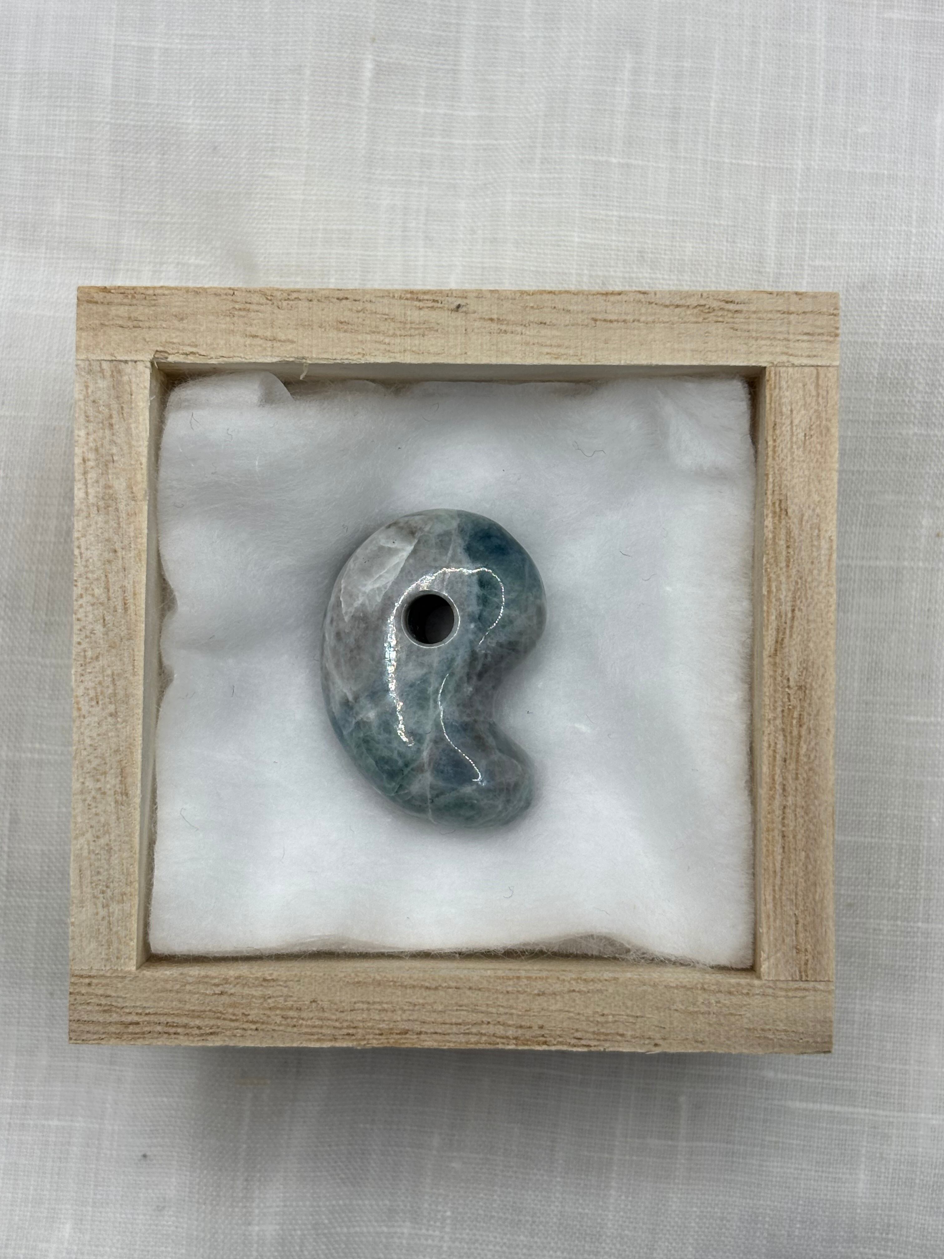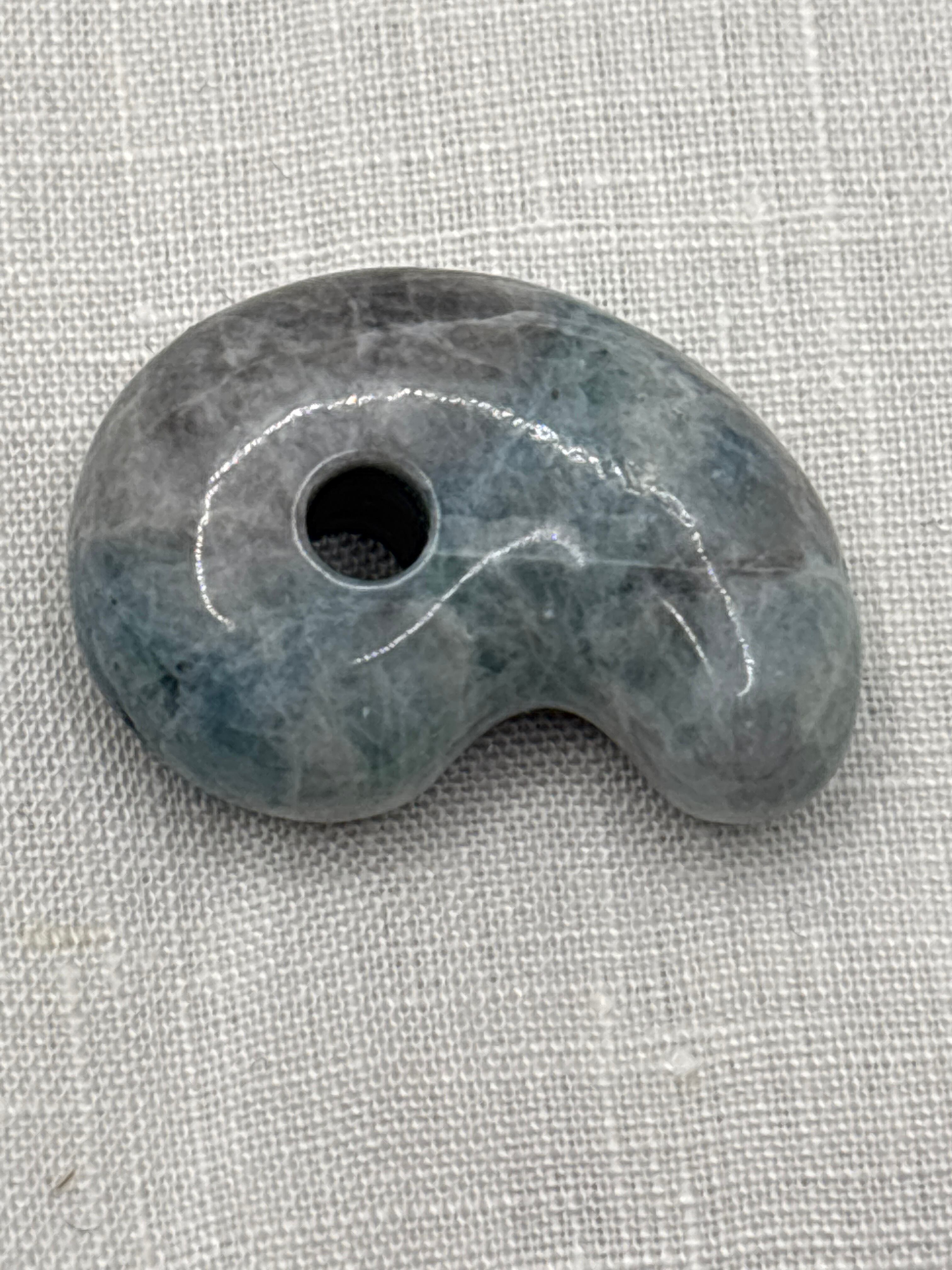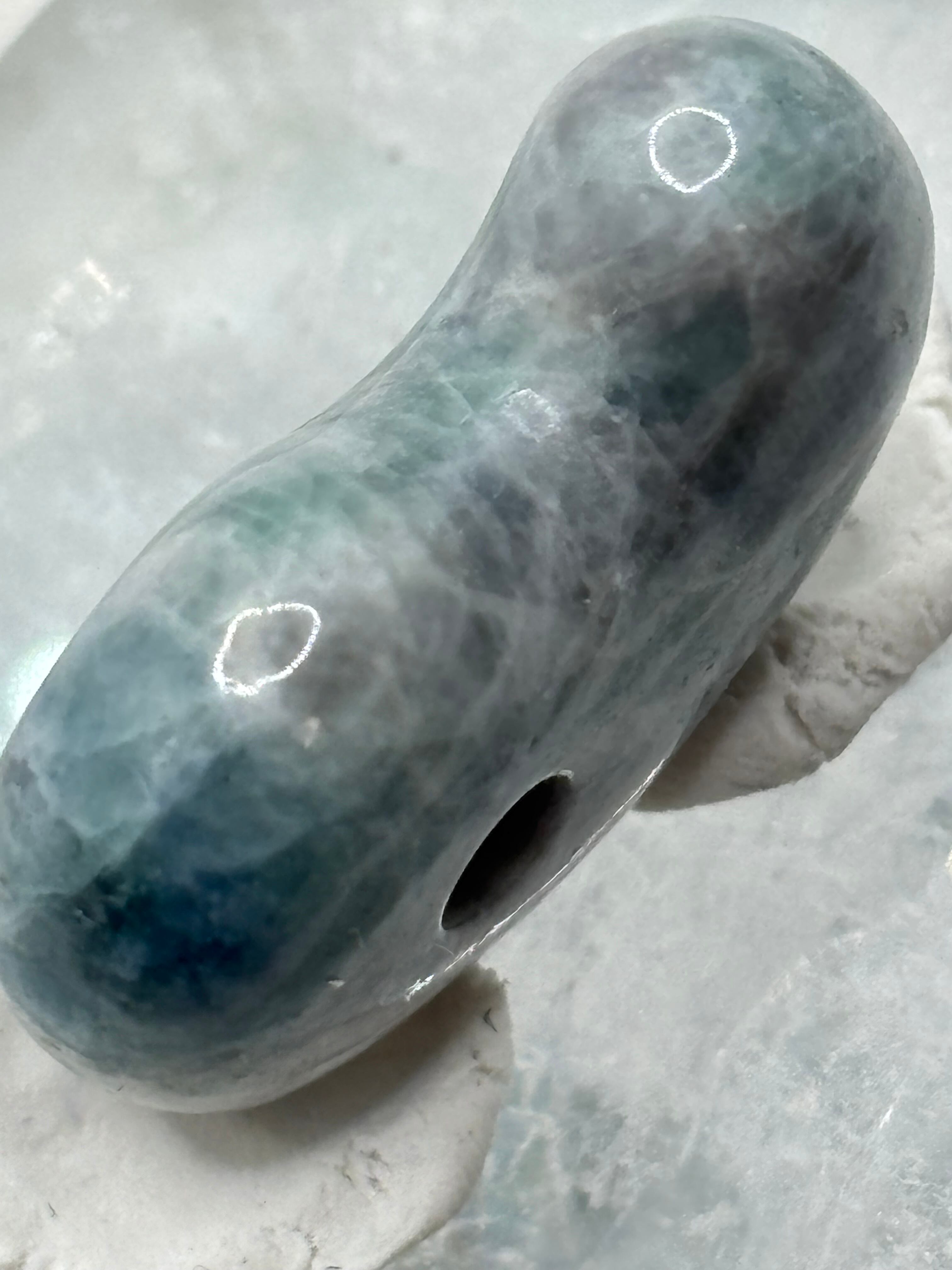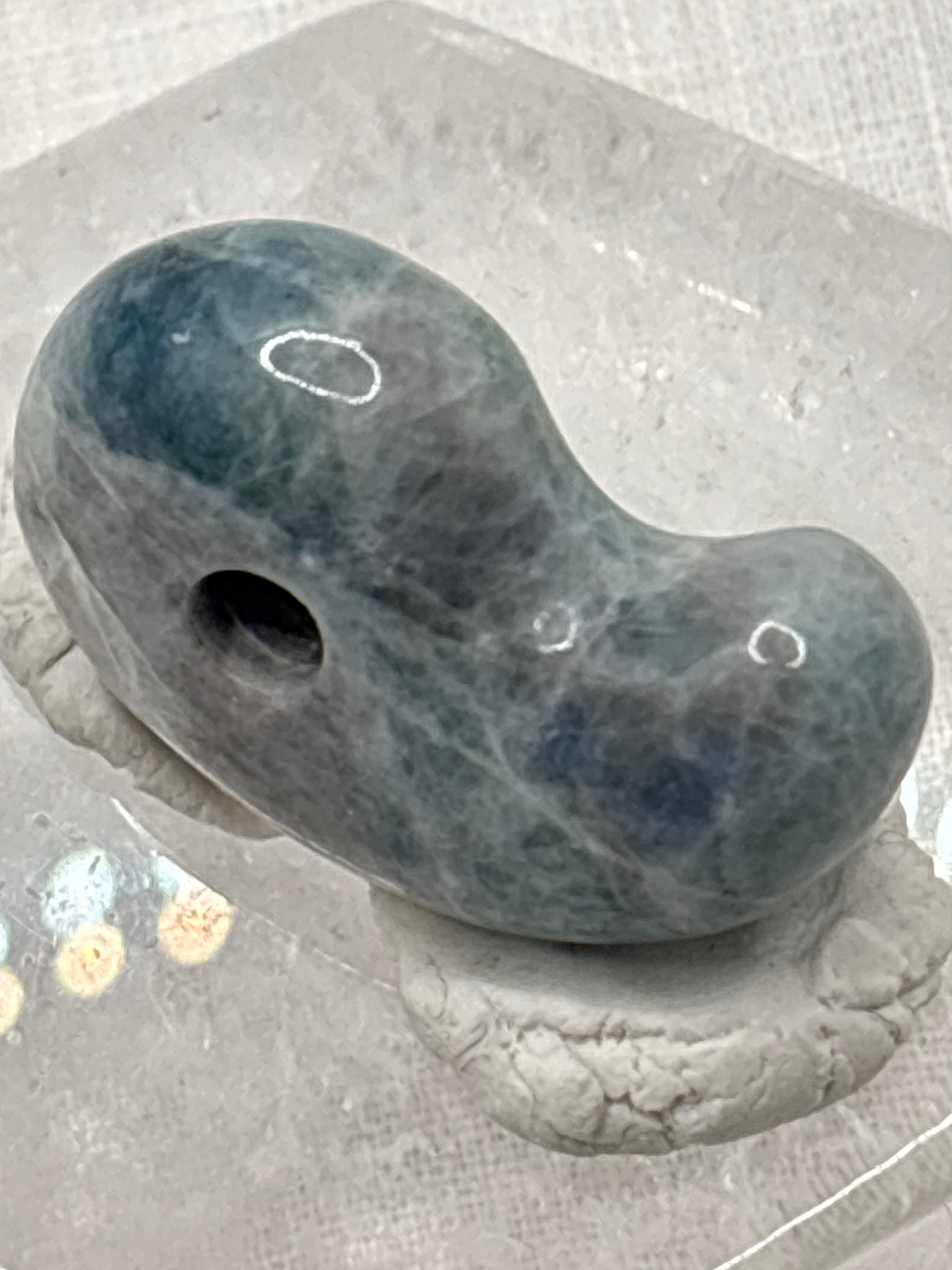 この勾玉は、青い色合いが心に清涼感をもたらし、持つ人に特別な存在感を与えます。入りコン沢の自然が生み出した神秘的な要素が、高いエネルギーを伝えてくれることでしょう。お守りや家宝として自分から子供へと代々繋いでゆくのも素敵ですね。