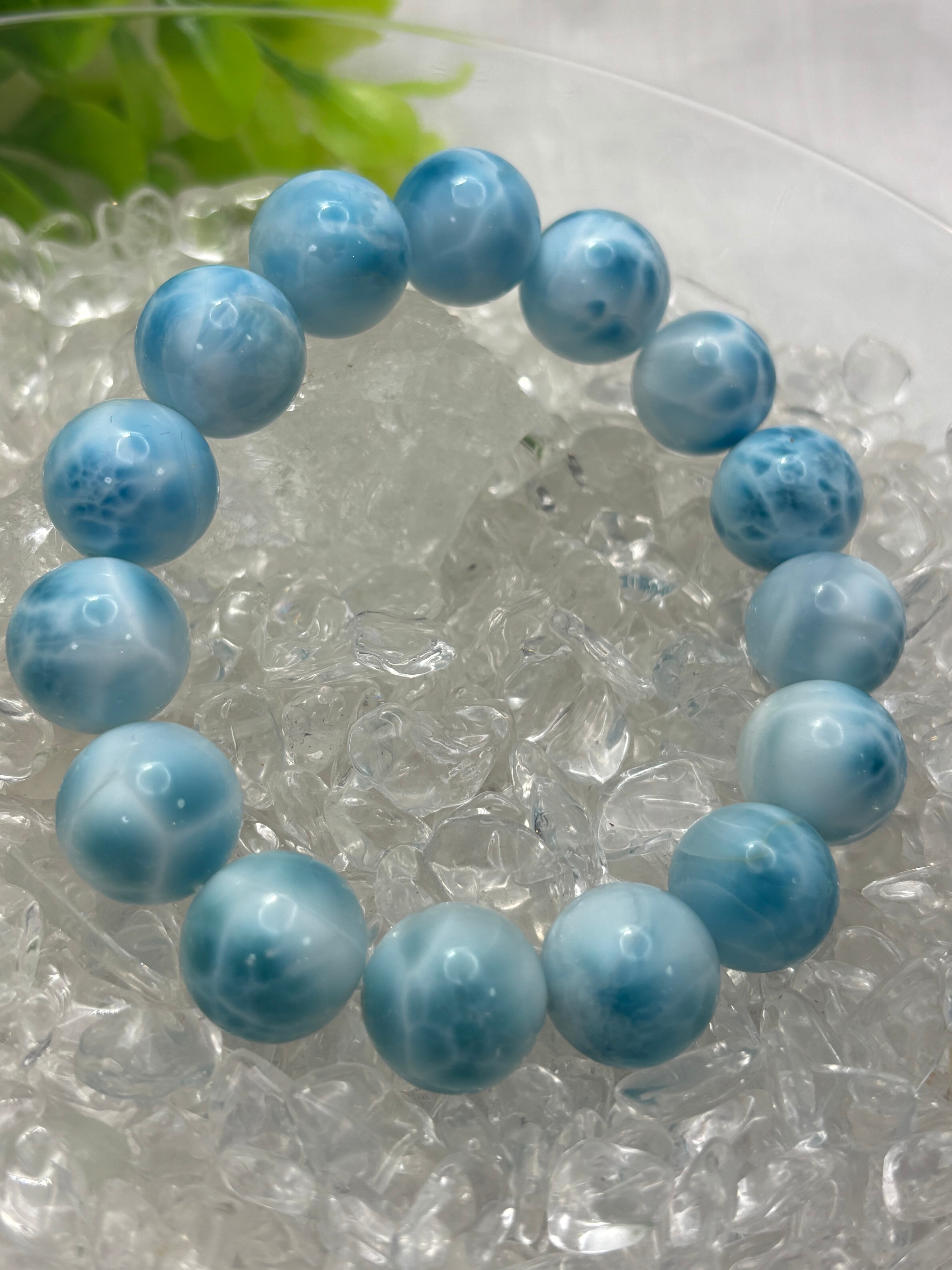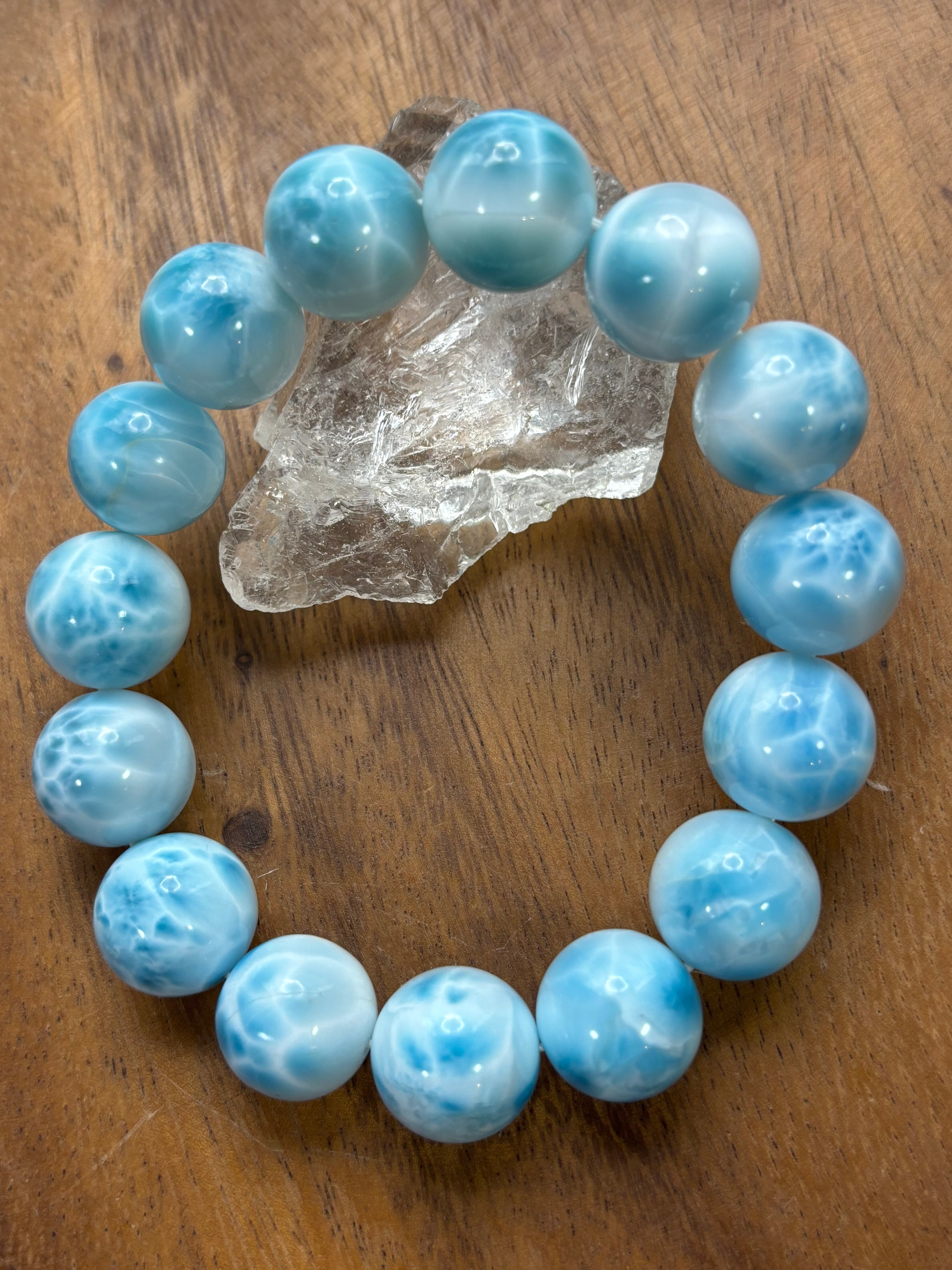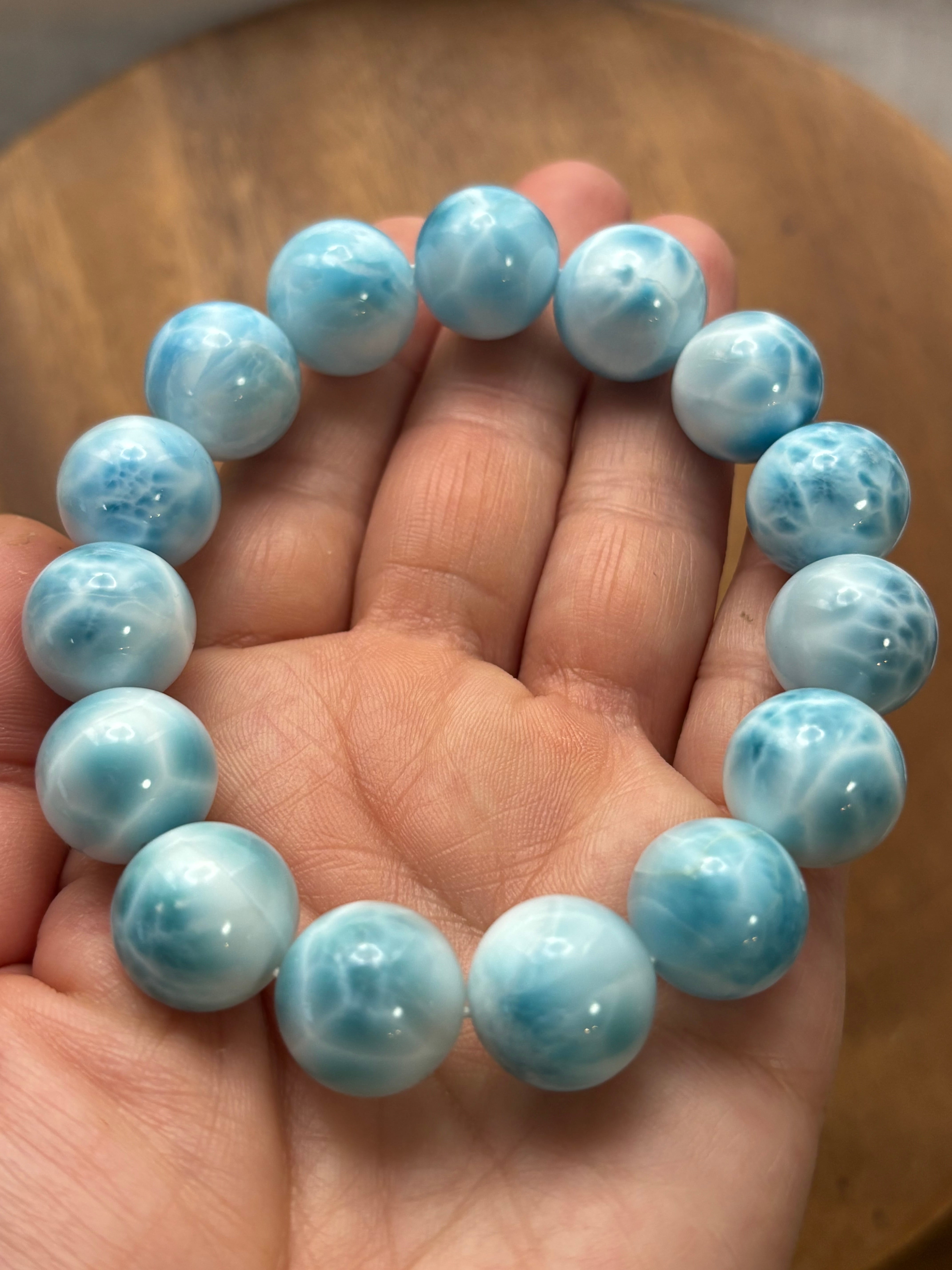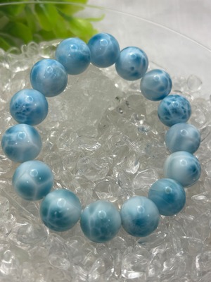 ブレスレットは、内径17センチで14.7ミリから15.3ミリのラリマーを使用しており、ちょっとした日常から特別な日まで幅広く活躍します。自分自身の癒しのプレゼントとしても、大切な方への贈り物としても最適です。