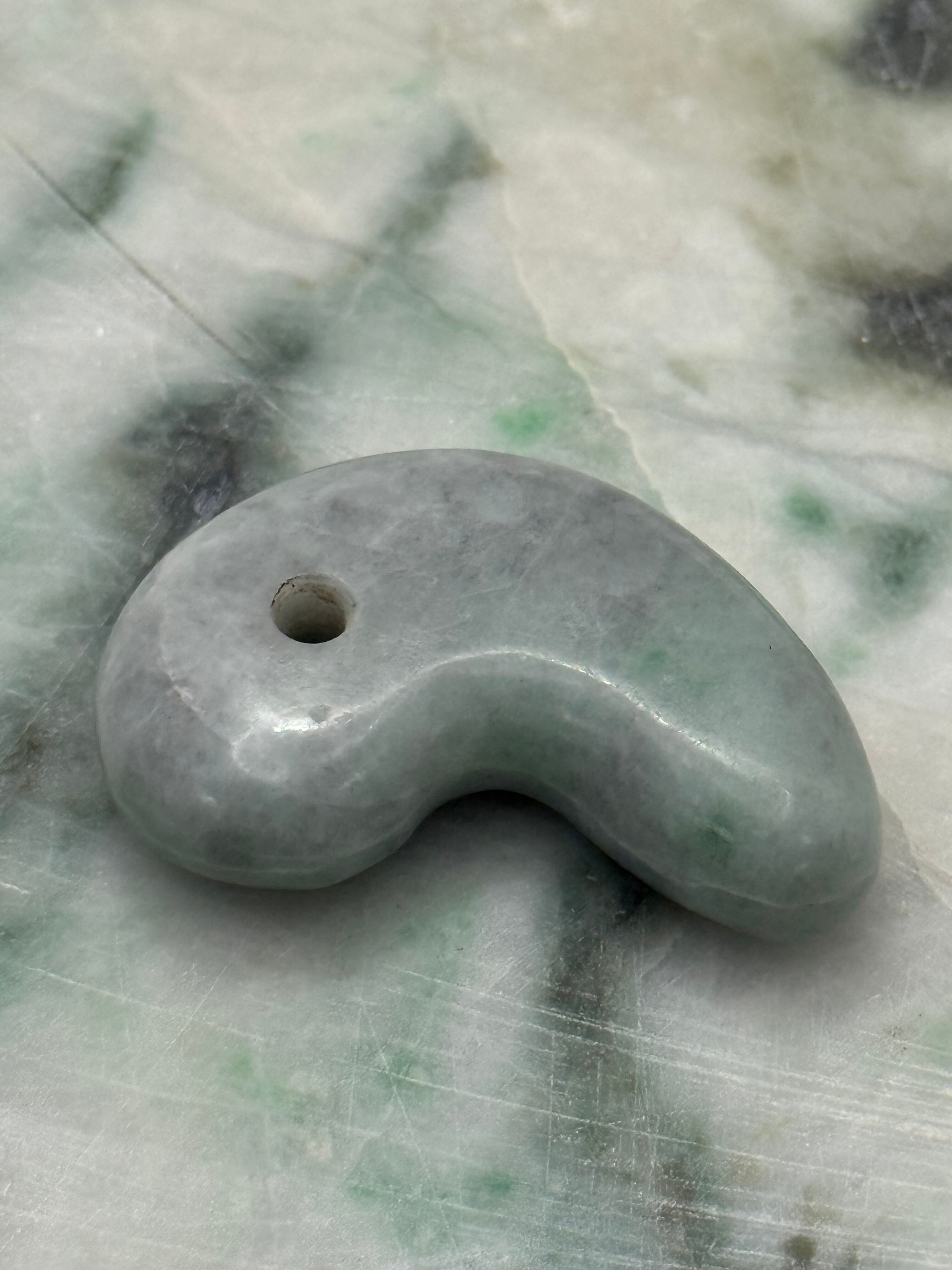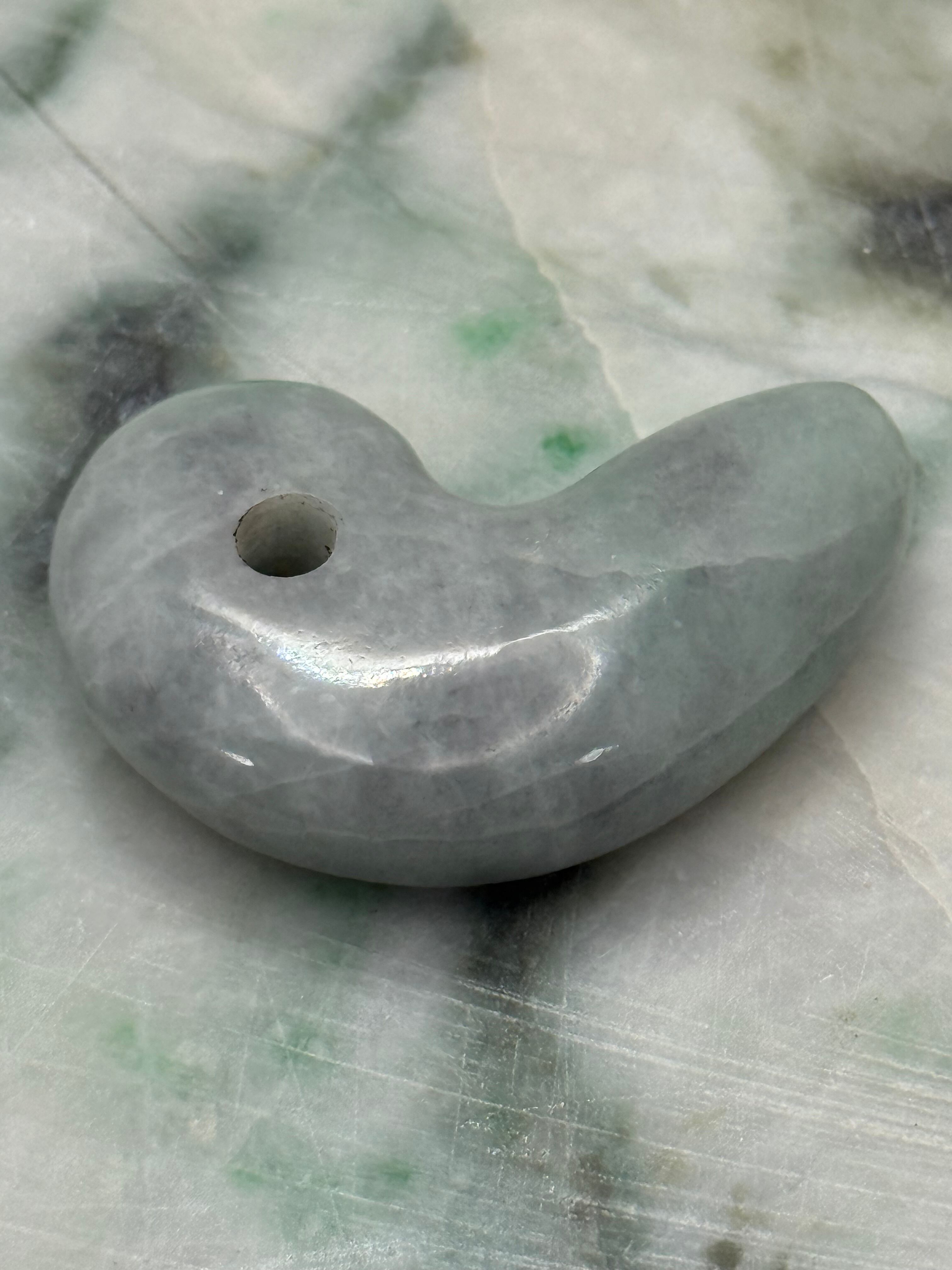 この翡翠は、持つ人に安らぎと心の平穏をもたらします。灰色緑の色合いは、自然との調和を感じさせると共に、心の安定をサポートします。