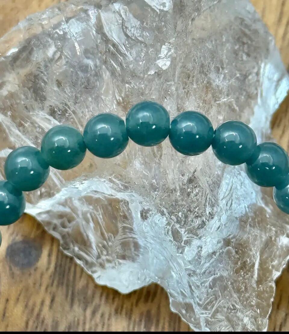 深い緑色と氷のような透過感を併せ持つ美しいブレスレットです。