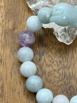 アクセントとしてアメジストの紫とヒキュウを組み合わせたブレスレットです。