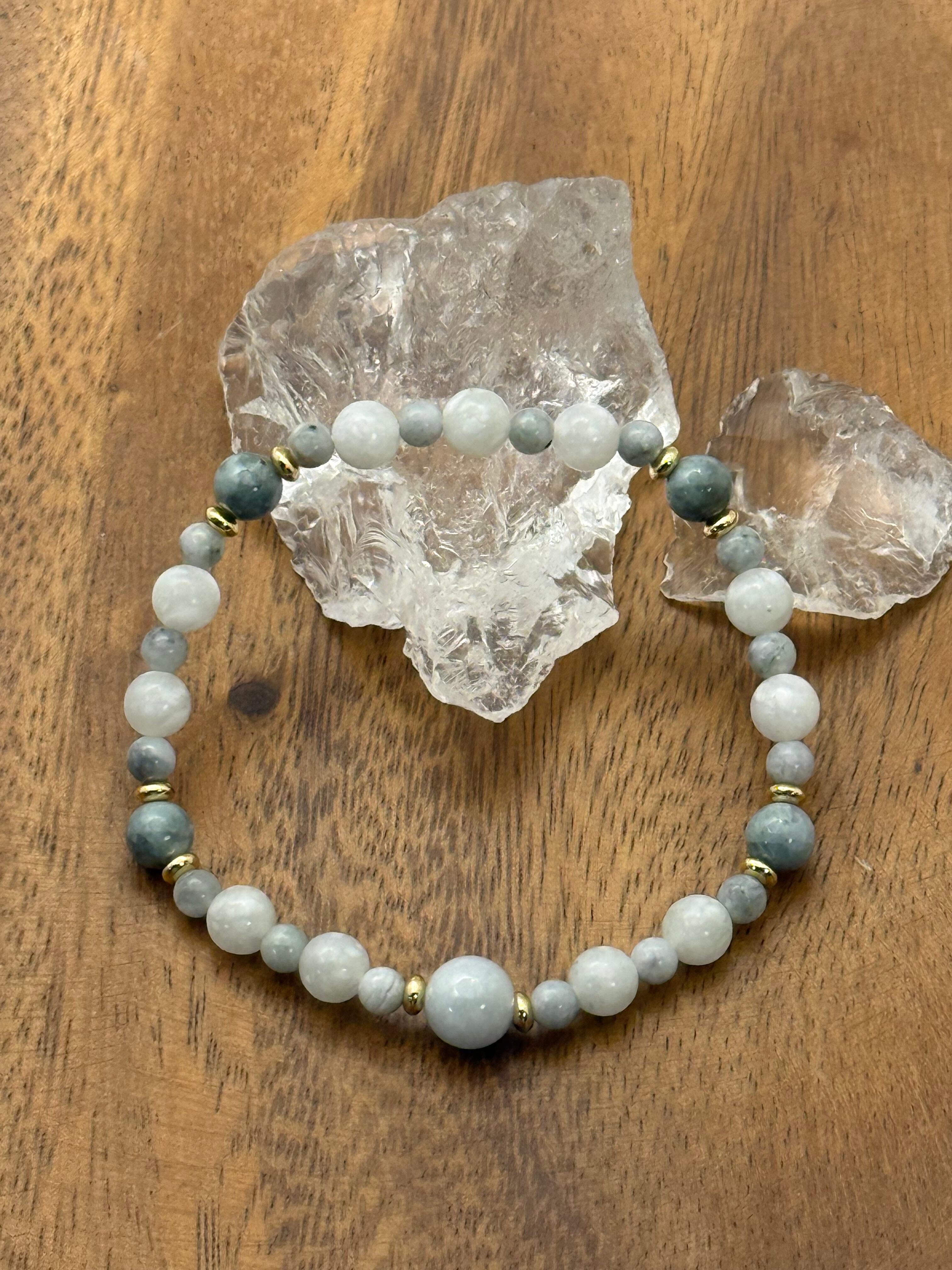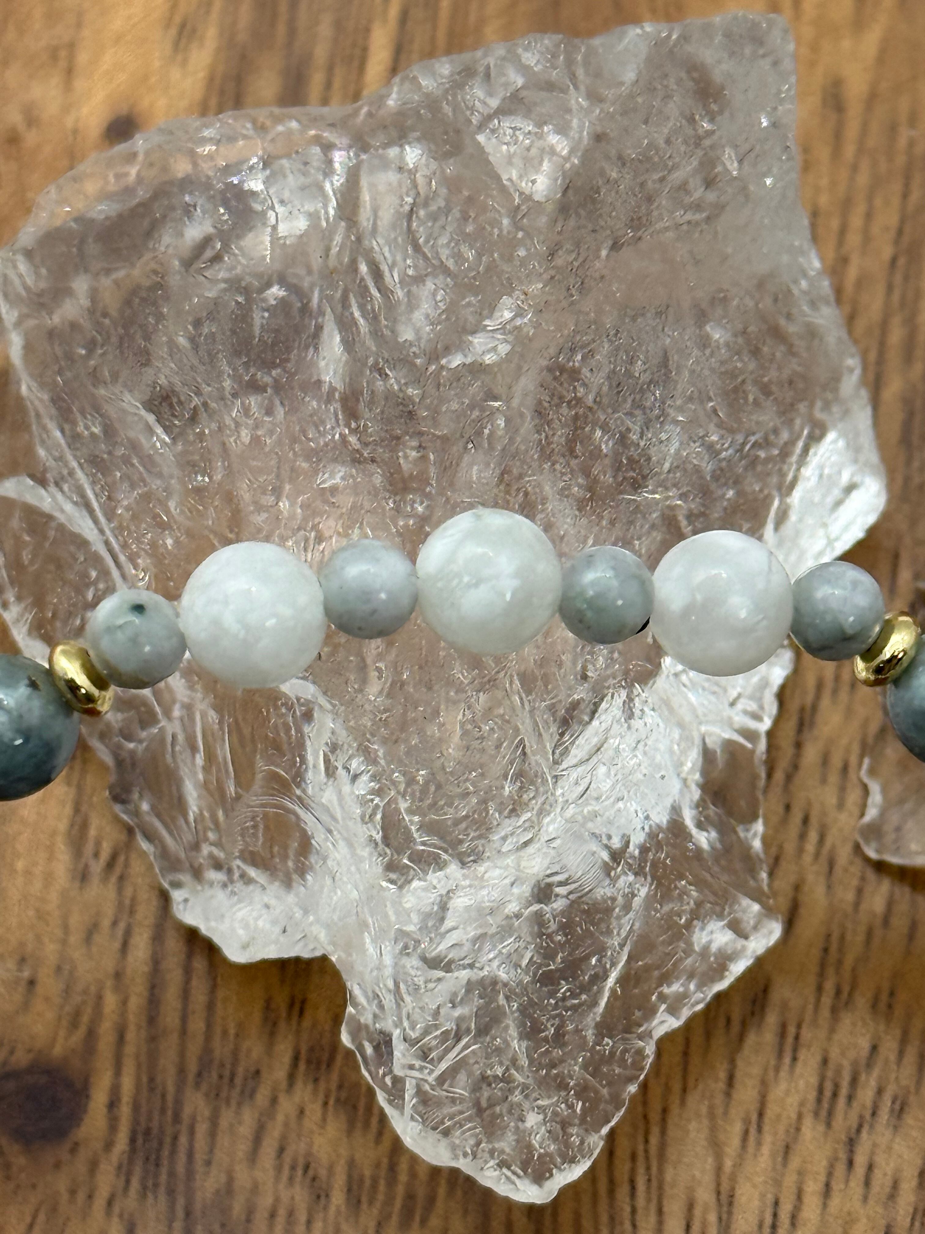 日本・糸魚川産の貴重な白翡翠を使用したブレスレットです。