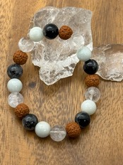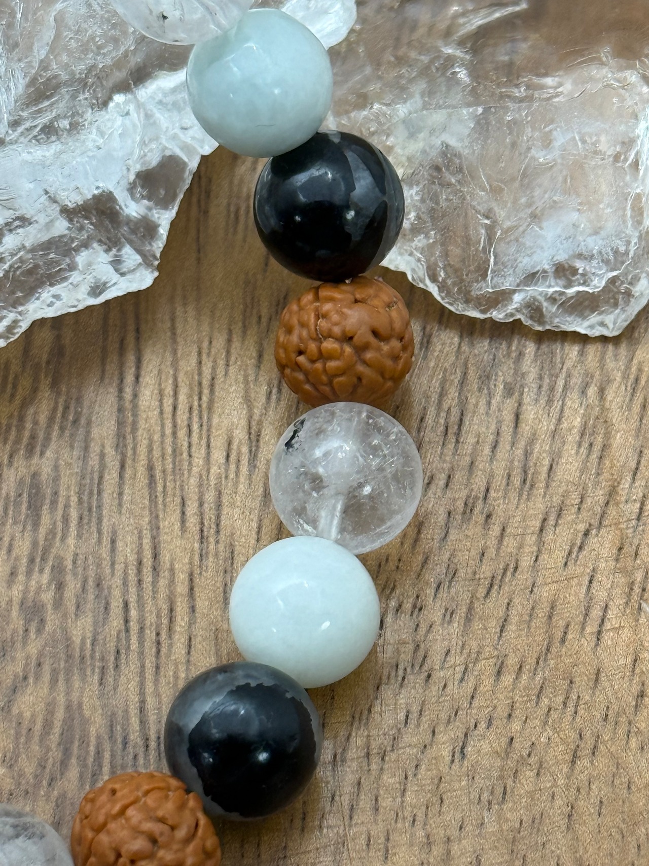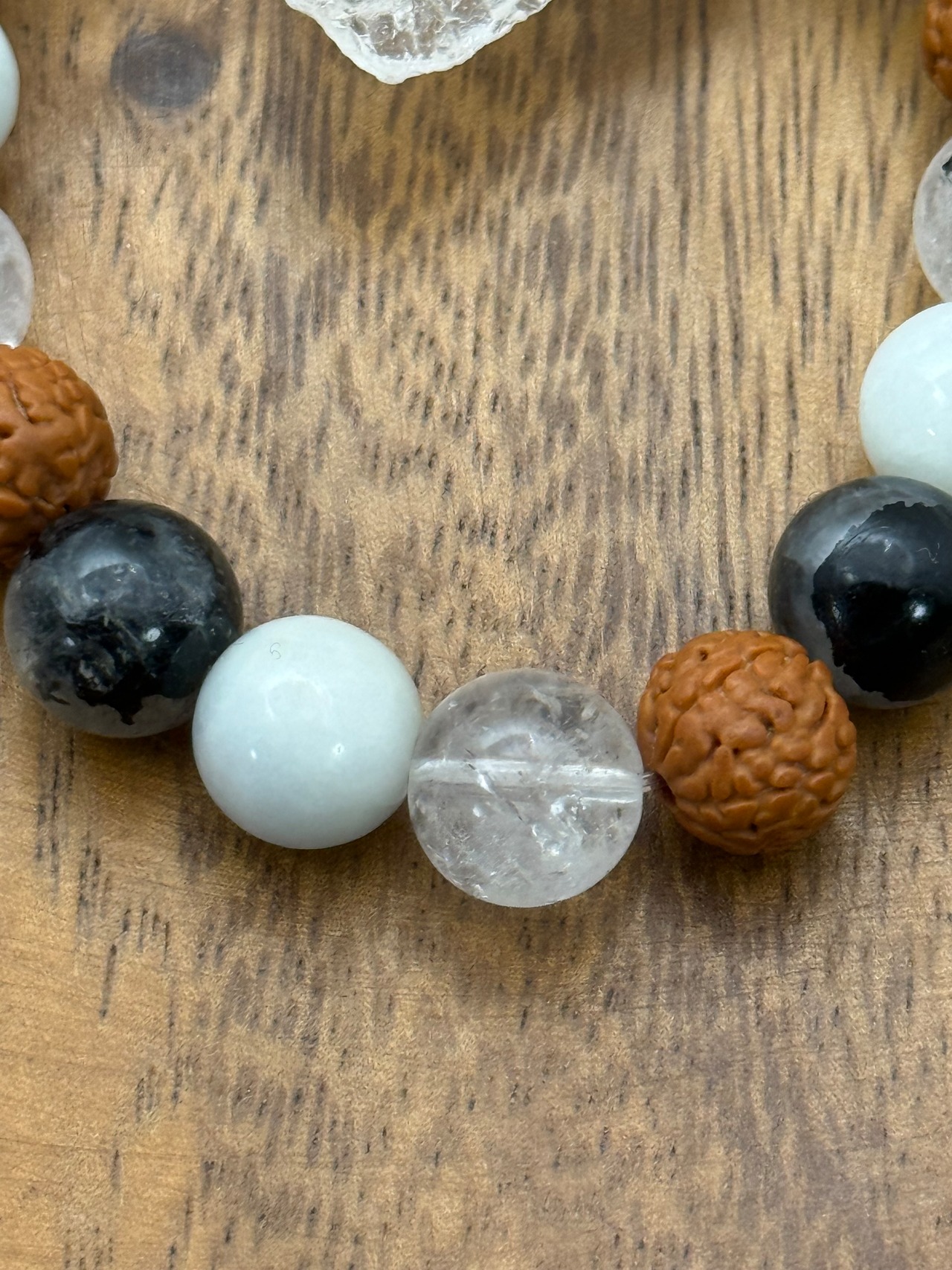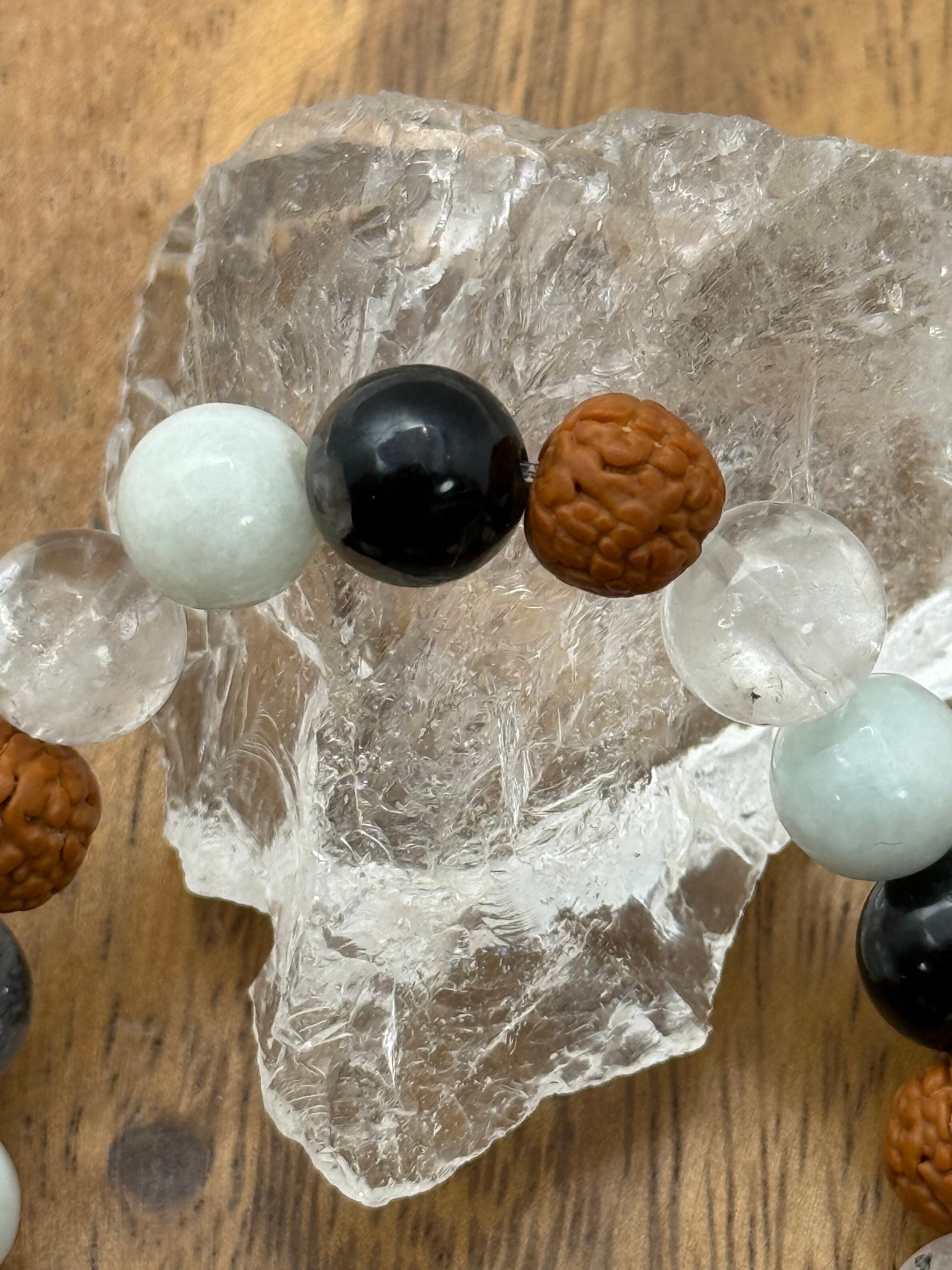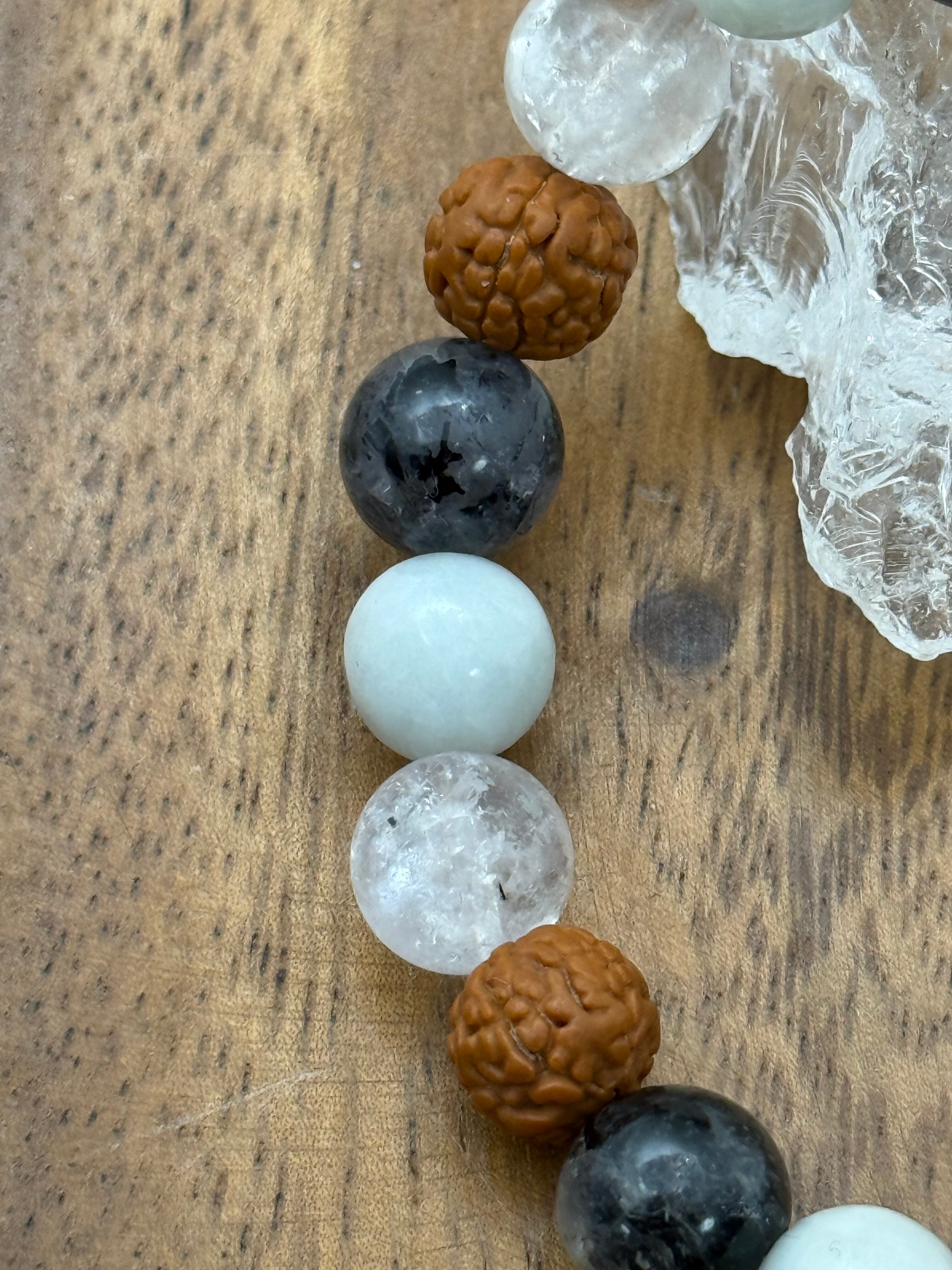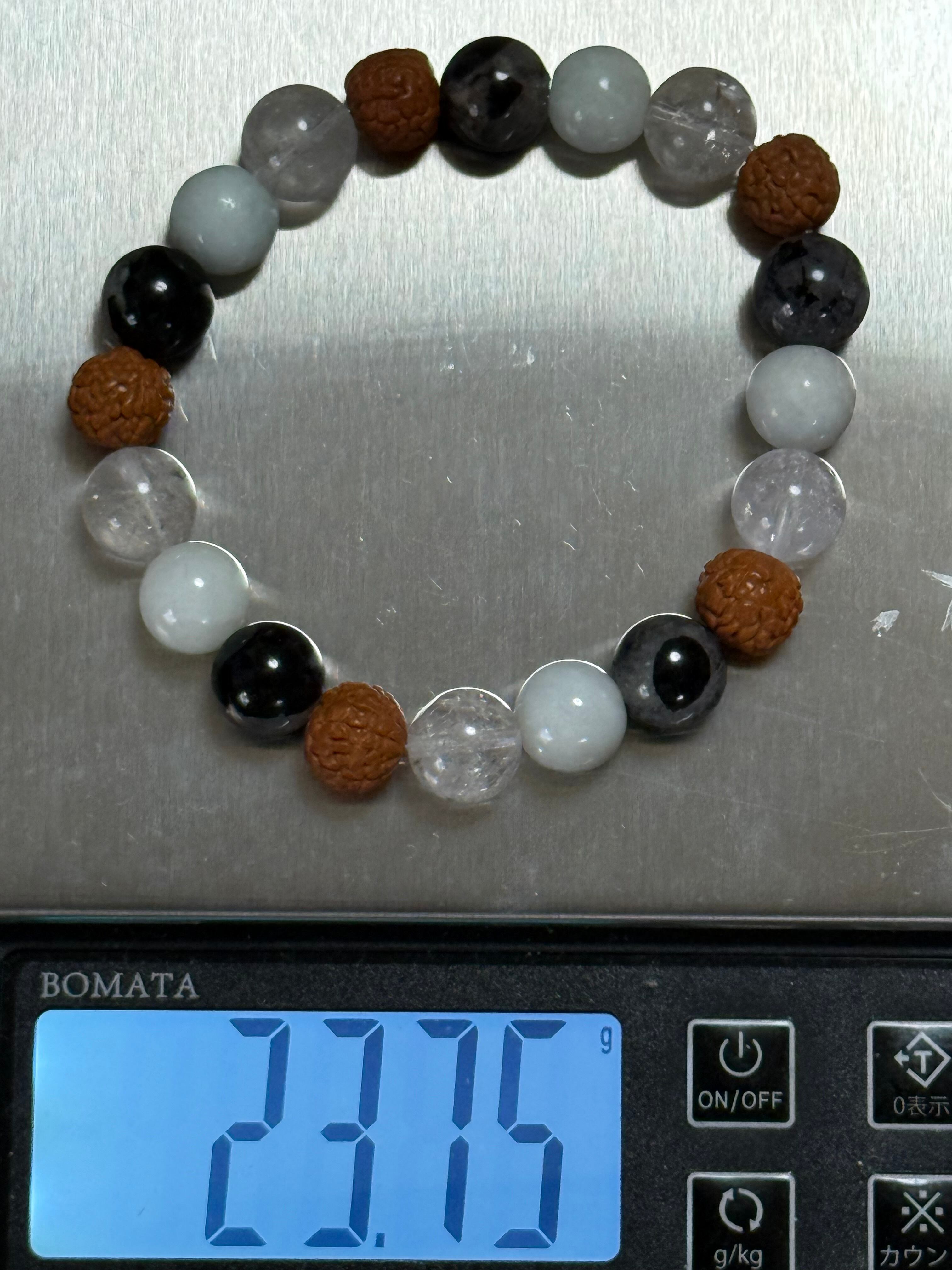 白翡翠・ヒマラヤクラック水晶・ブラックトルマリン・菩提樹の実。
