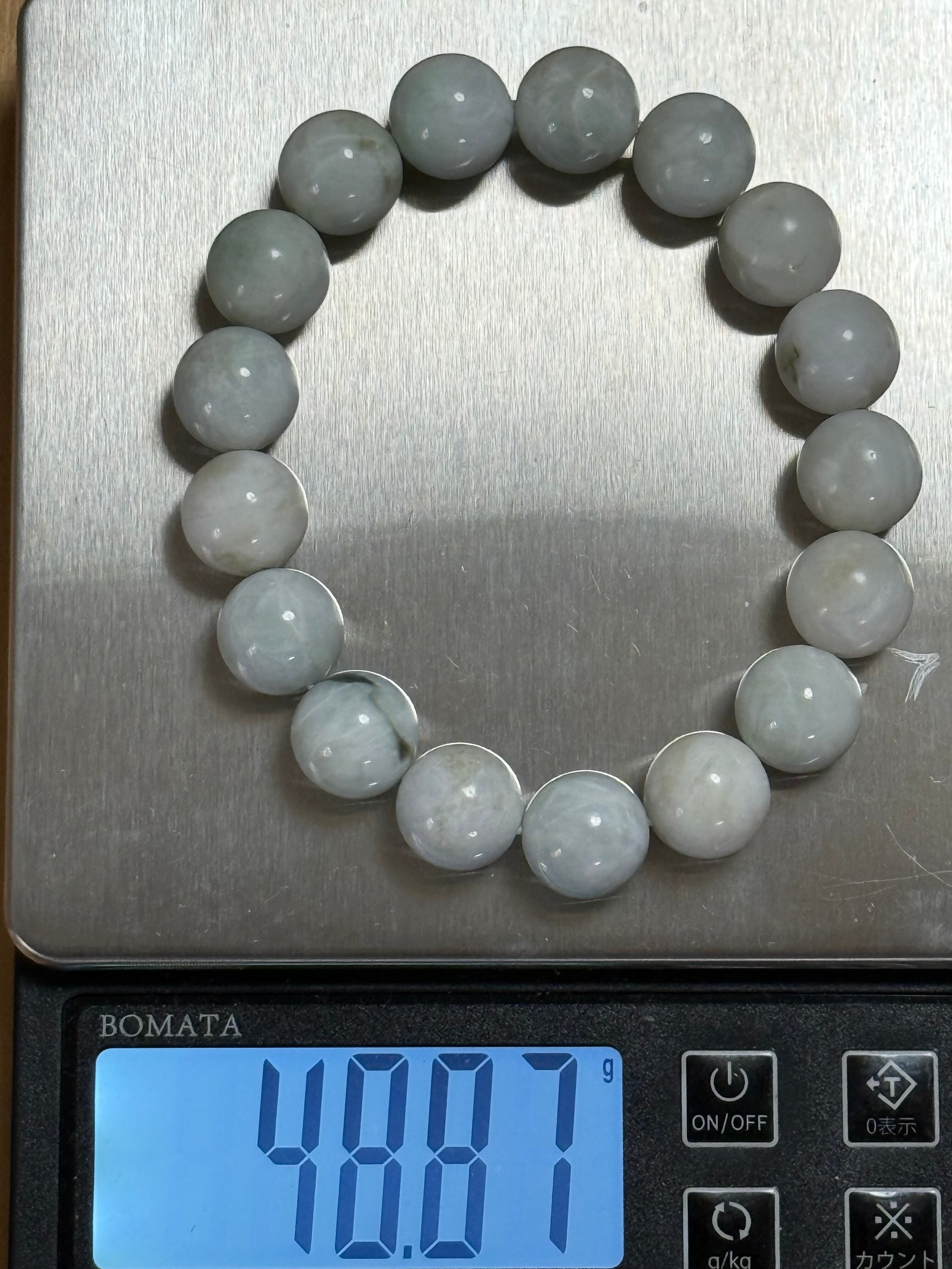 日本・糸魚川産の天然翡翠を使用した、12mm珠のブレスレットです。