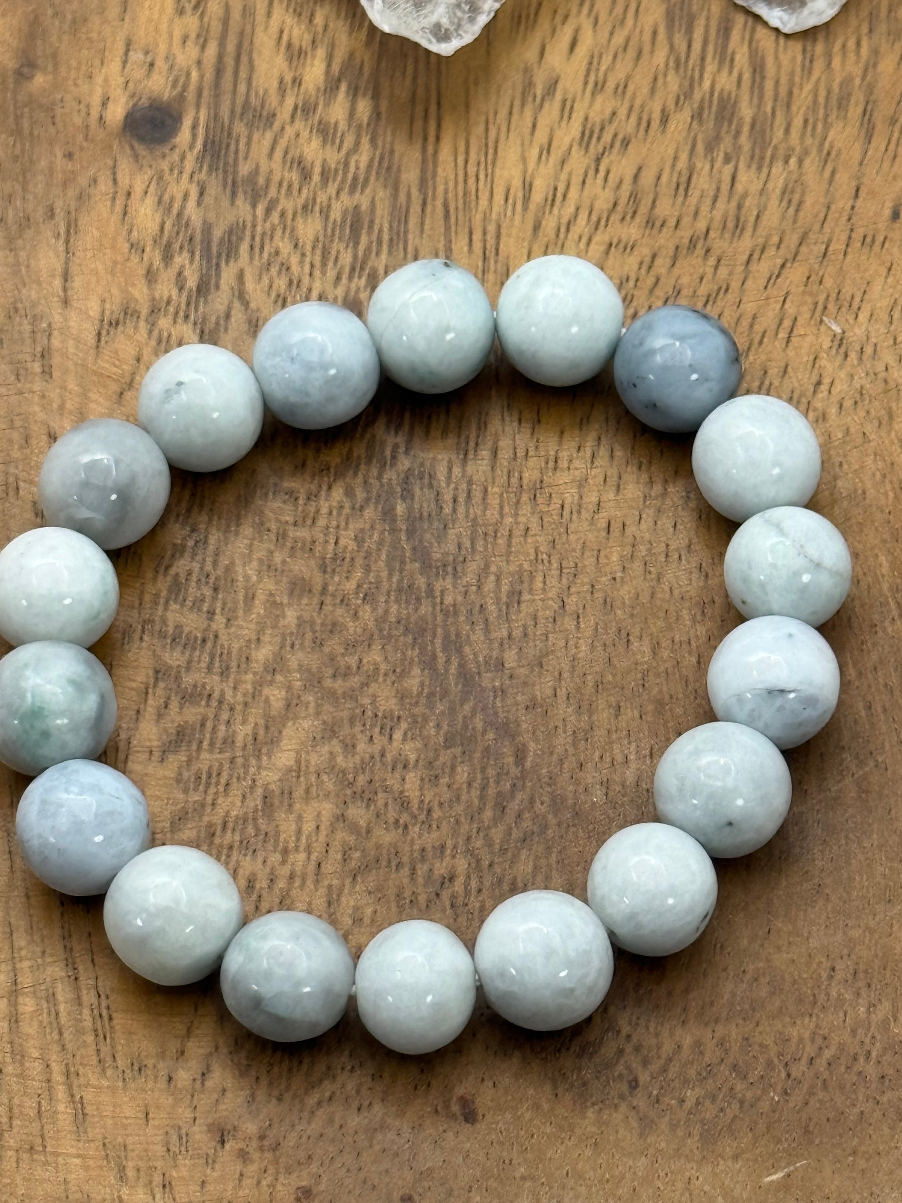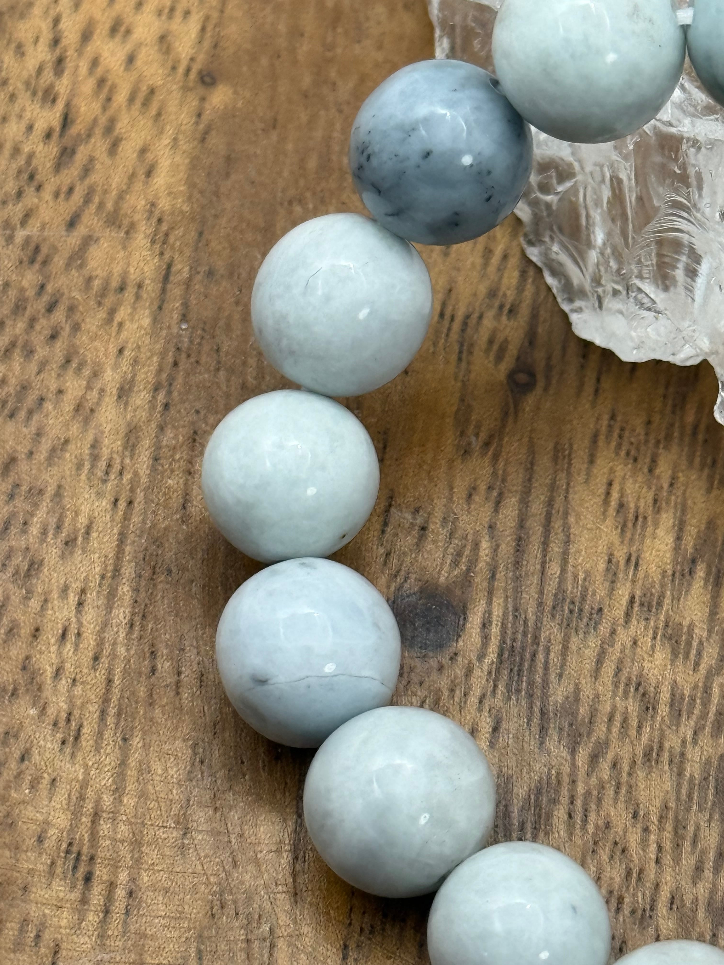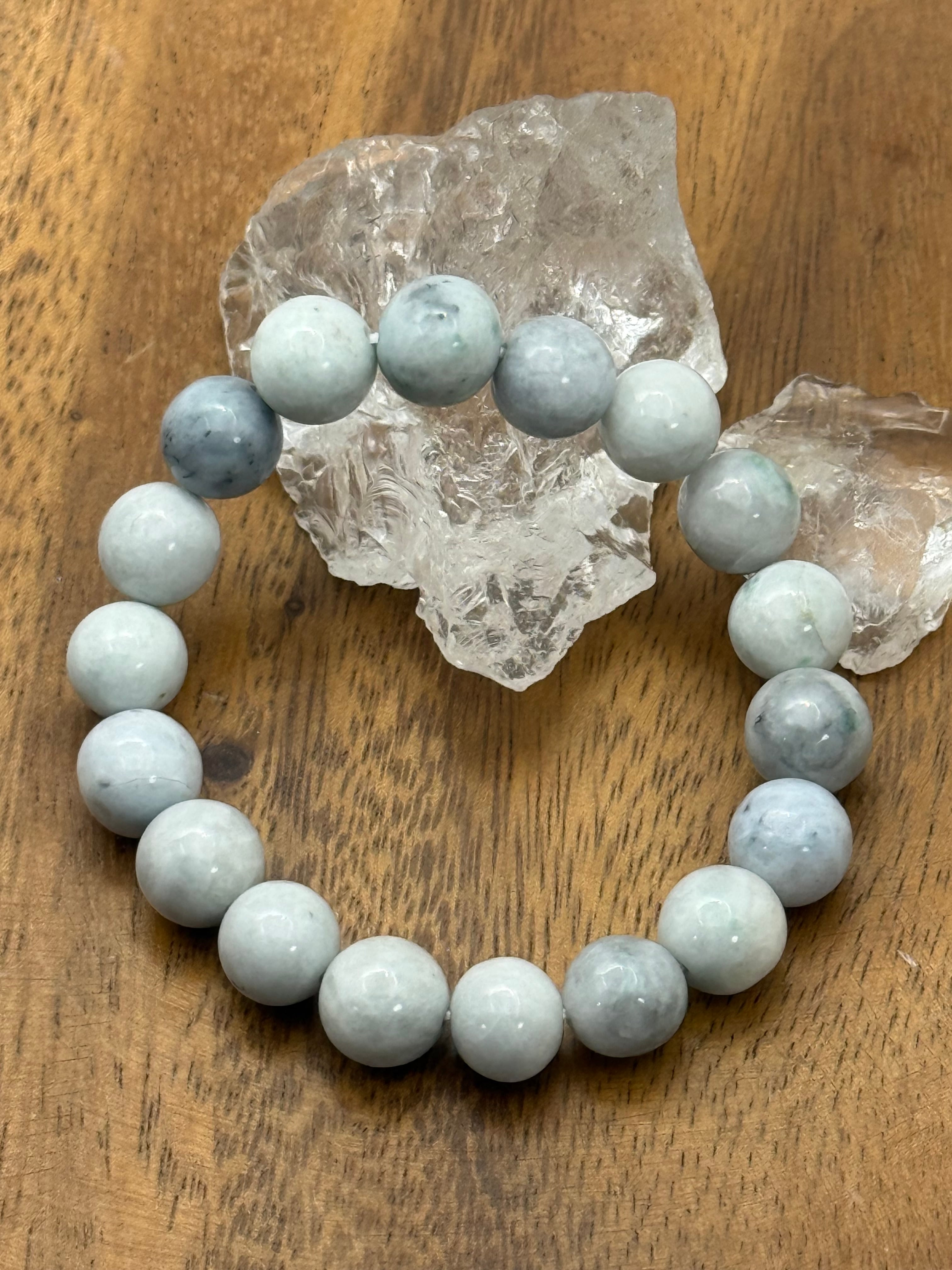 〜自然が生み出した美と静かな調和、糸魚川翡翠10mm 白灰青ブレスレット〜