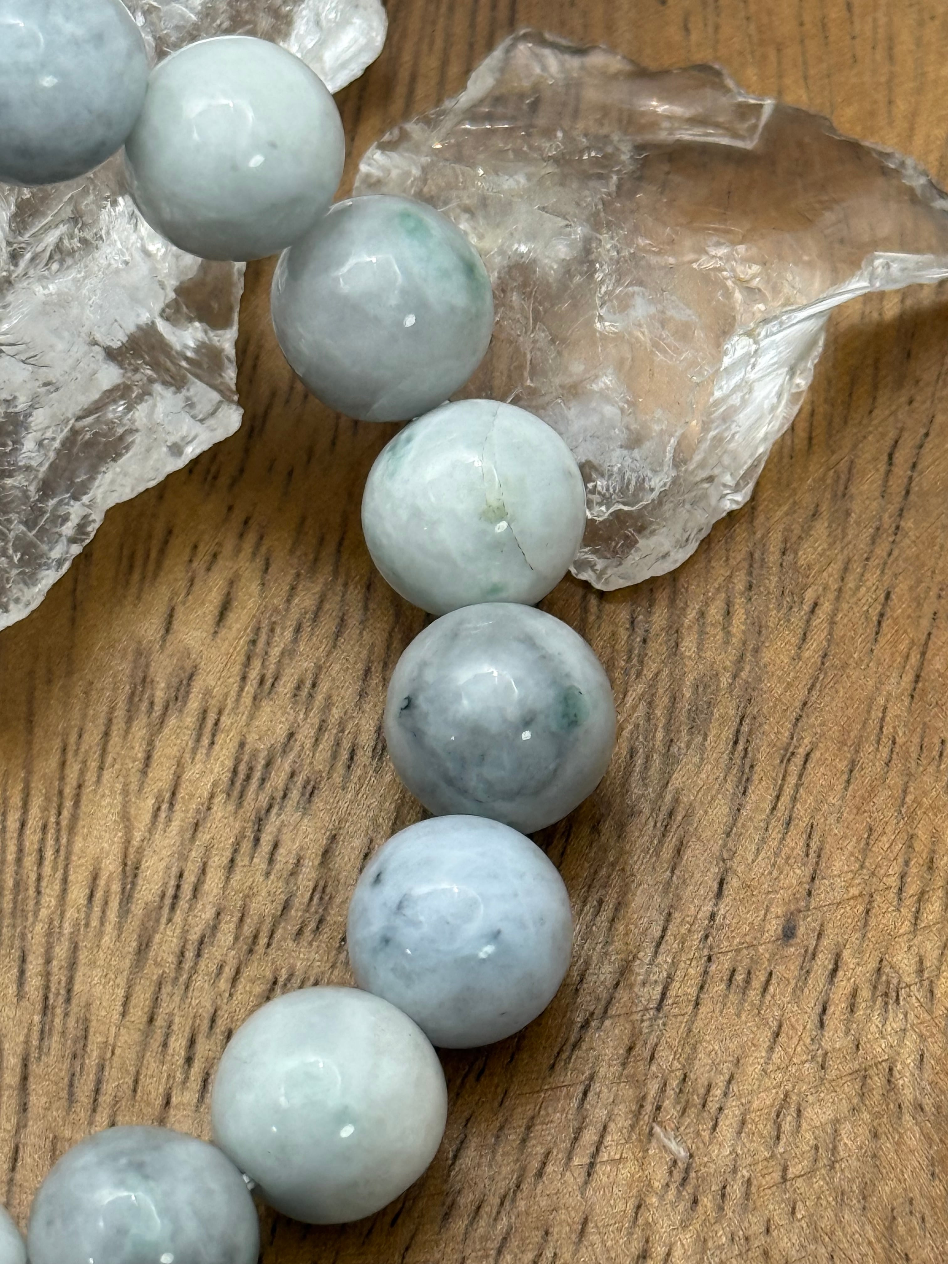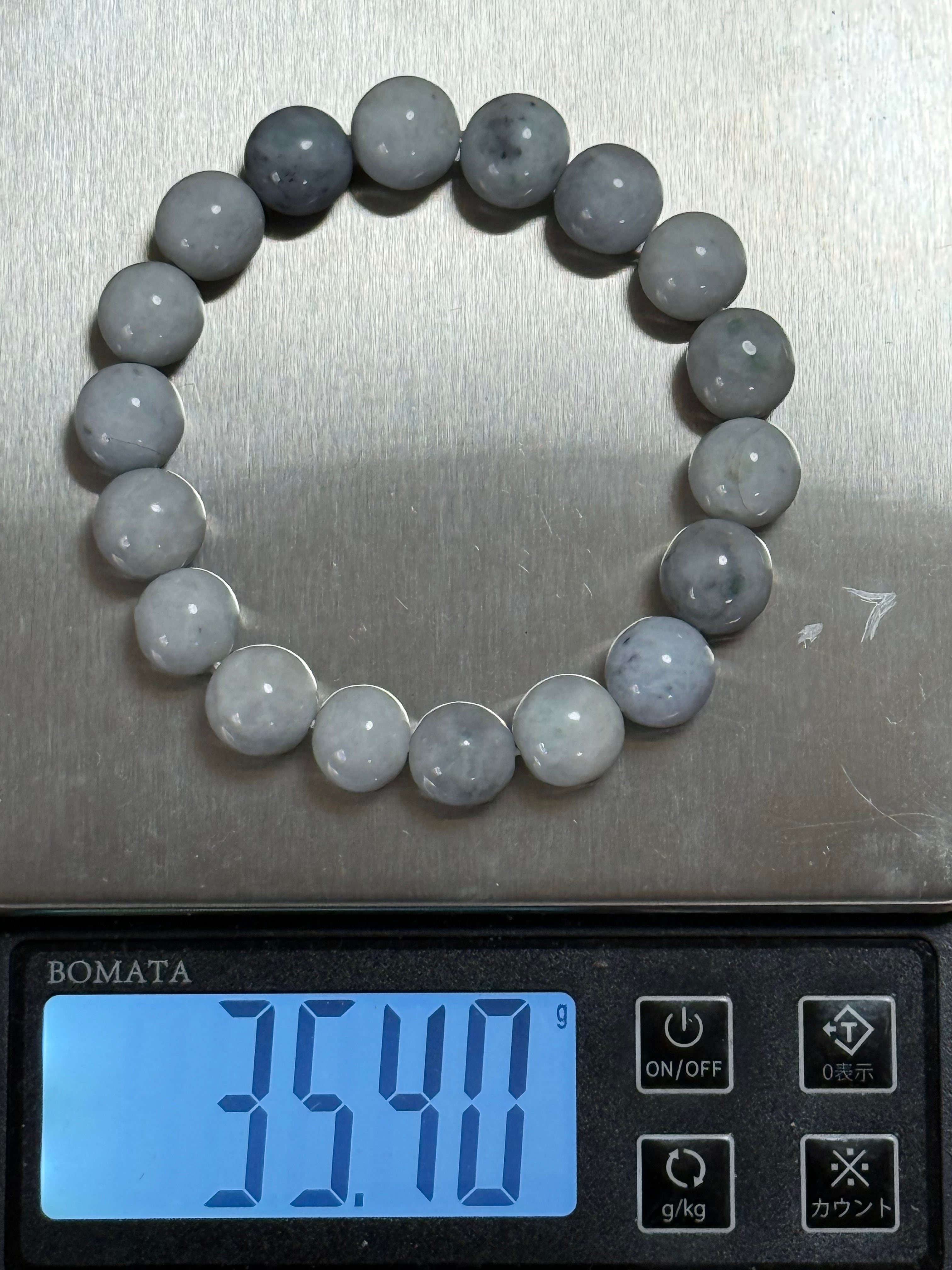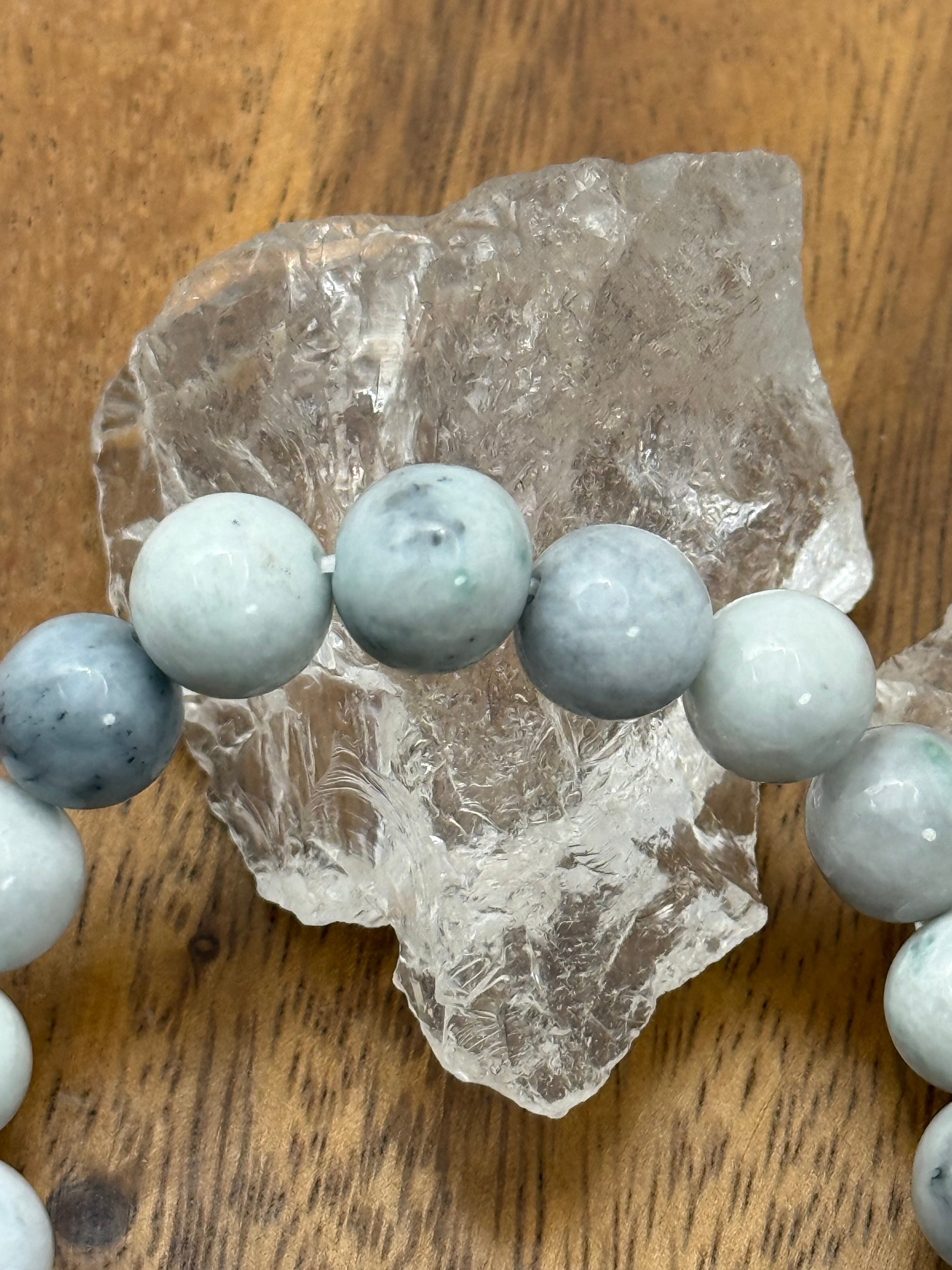 〜自然が生み出した美と静かな調和、糸魚川翡翠10mm 白灰青ブレスレット〜
