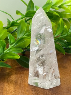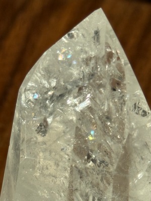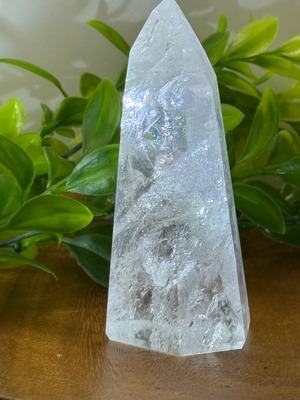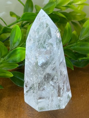 この水晶ポイントは、独自の模様とやさしい煌めきを持ち、