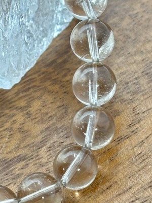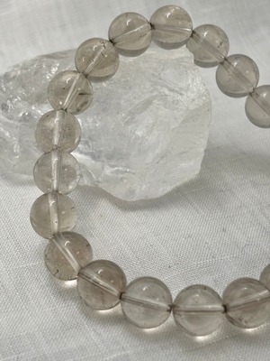 スモーキーカラーを帯びたレムリアンタイプの水晶を使用したブレスレットです。