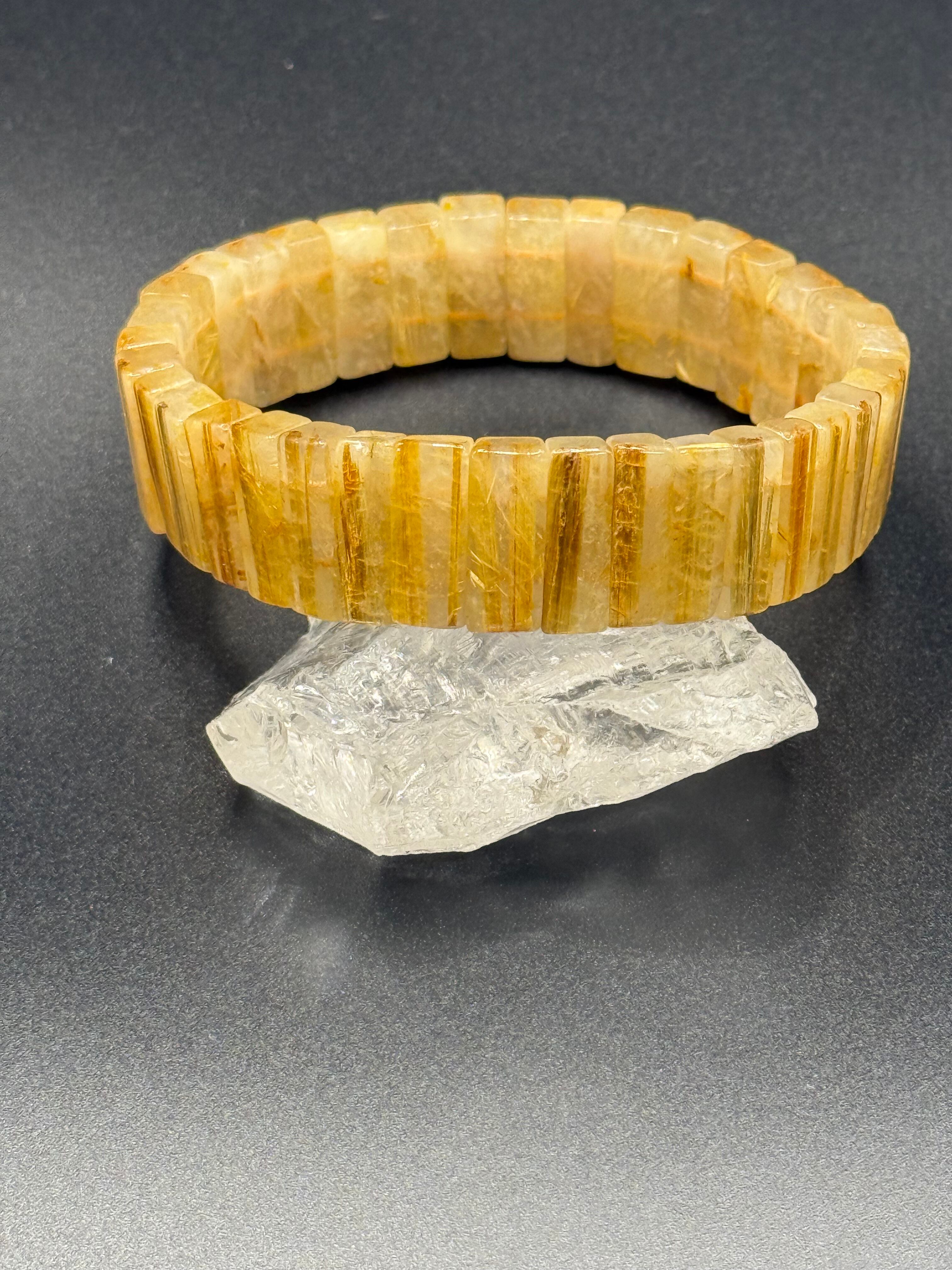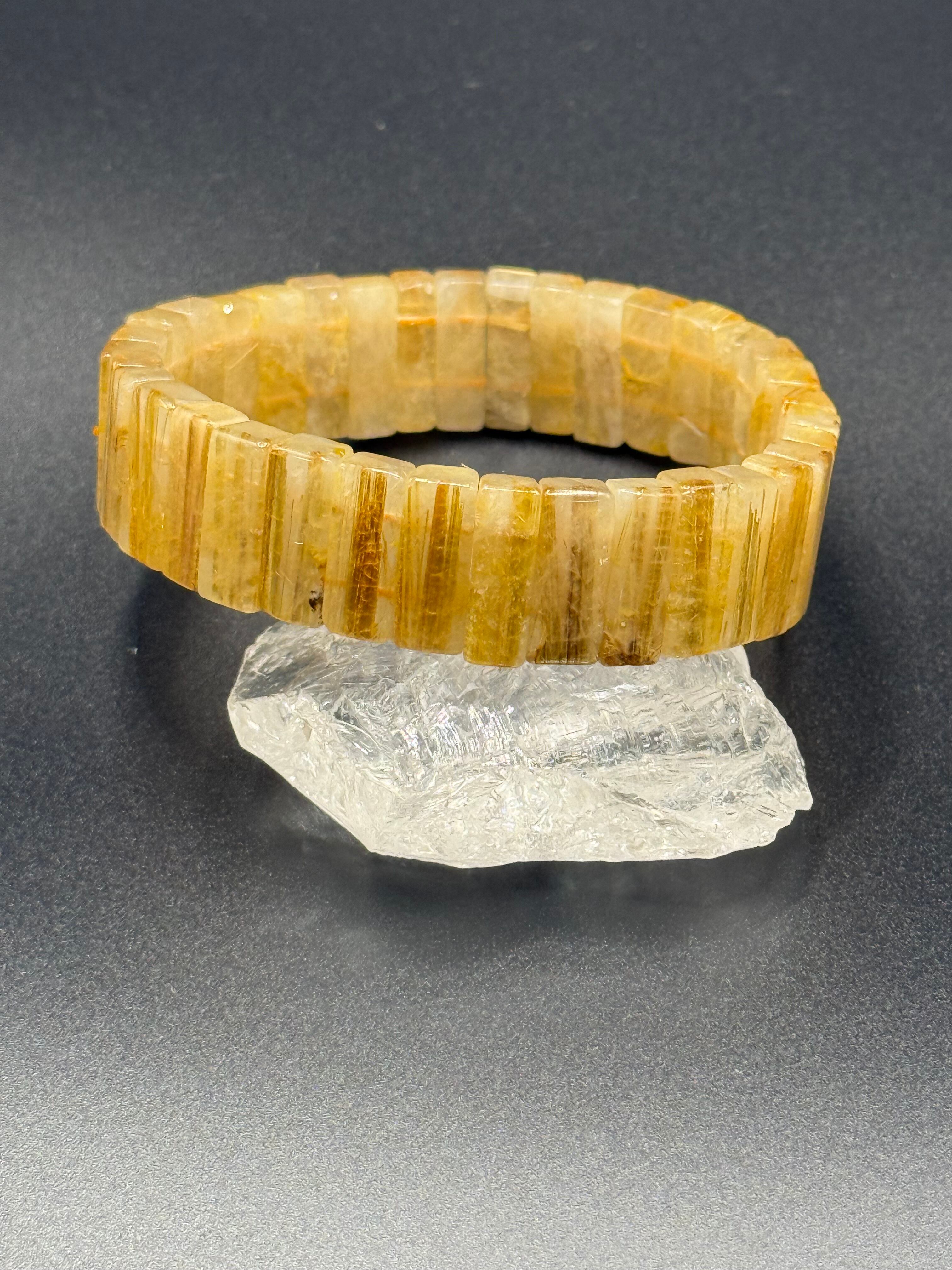 この美しい高品質ルチルバングルは、独特のゴールドの針が散りばめられ、持つ方に穏やかなエネルギーと輝きをもたらします。ルチルは大自然が創り出した貴重な石で、その煌めきは、日常に特別な彩りを添えてくれることでしょう。このバングルは、心のバランスを整えてくれ、毎日のスタイルを引き立てる存在となります。