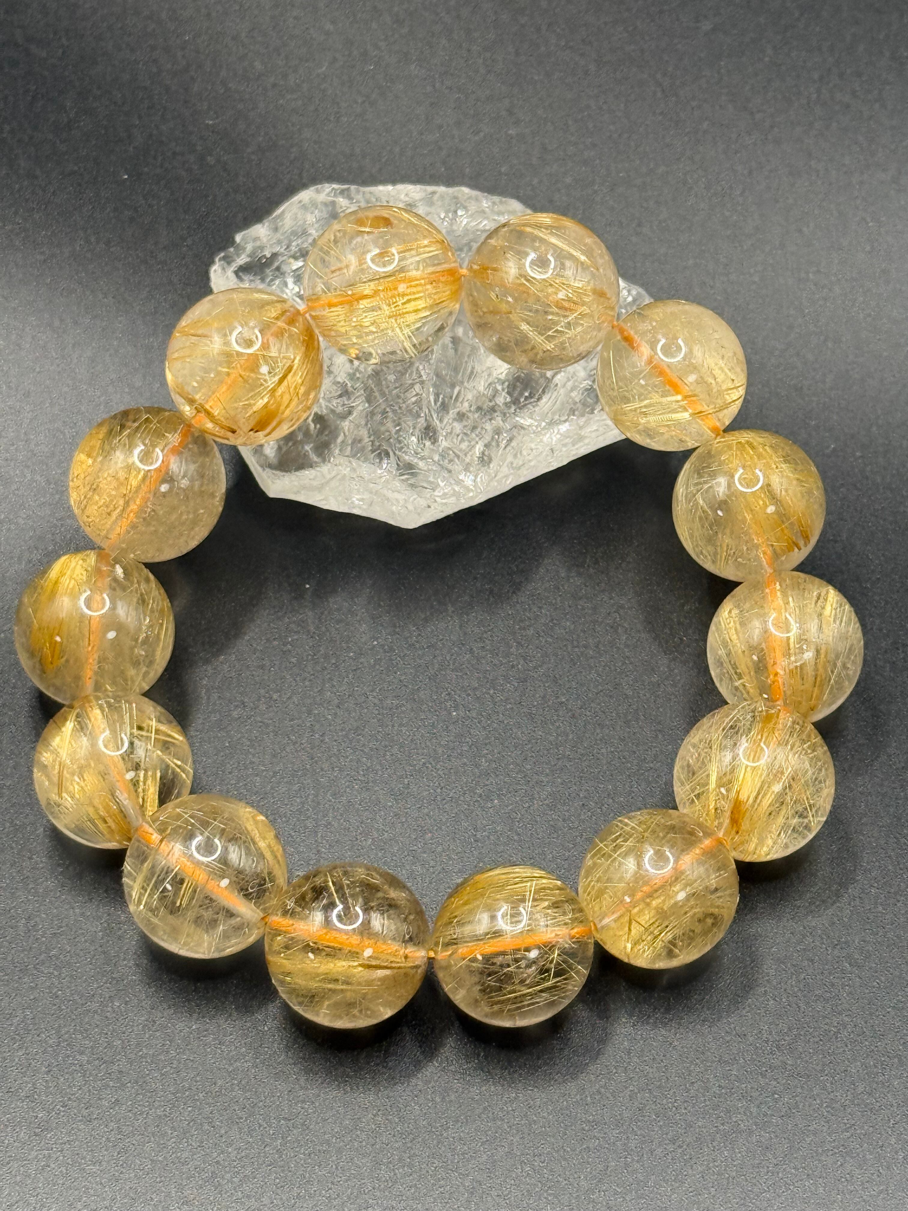 この美しい高品質ルチルクォーツは、金色の針が美しく入り込み、持つ方に特別なエネルギーと高貴さをもたらします。ルチルクォーツは、自然が生み出した秀逸な宝石で、そのユニークな輝きは日常のワンシーンに特別な彩りを添え、ラグジュアリーな瞬間を演出します。このアクセサリーは、心の調和を促す力があり、持つ方のスタイルをさらに引き立てる役割を果たします。