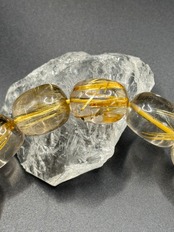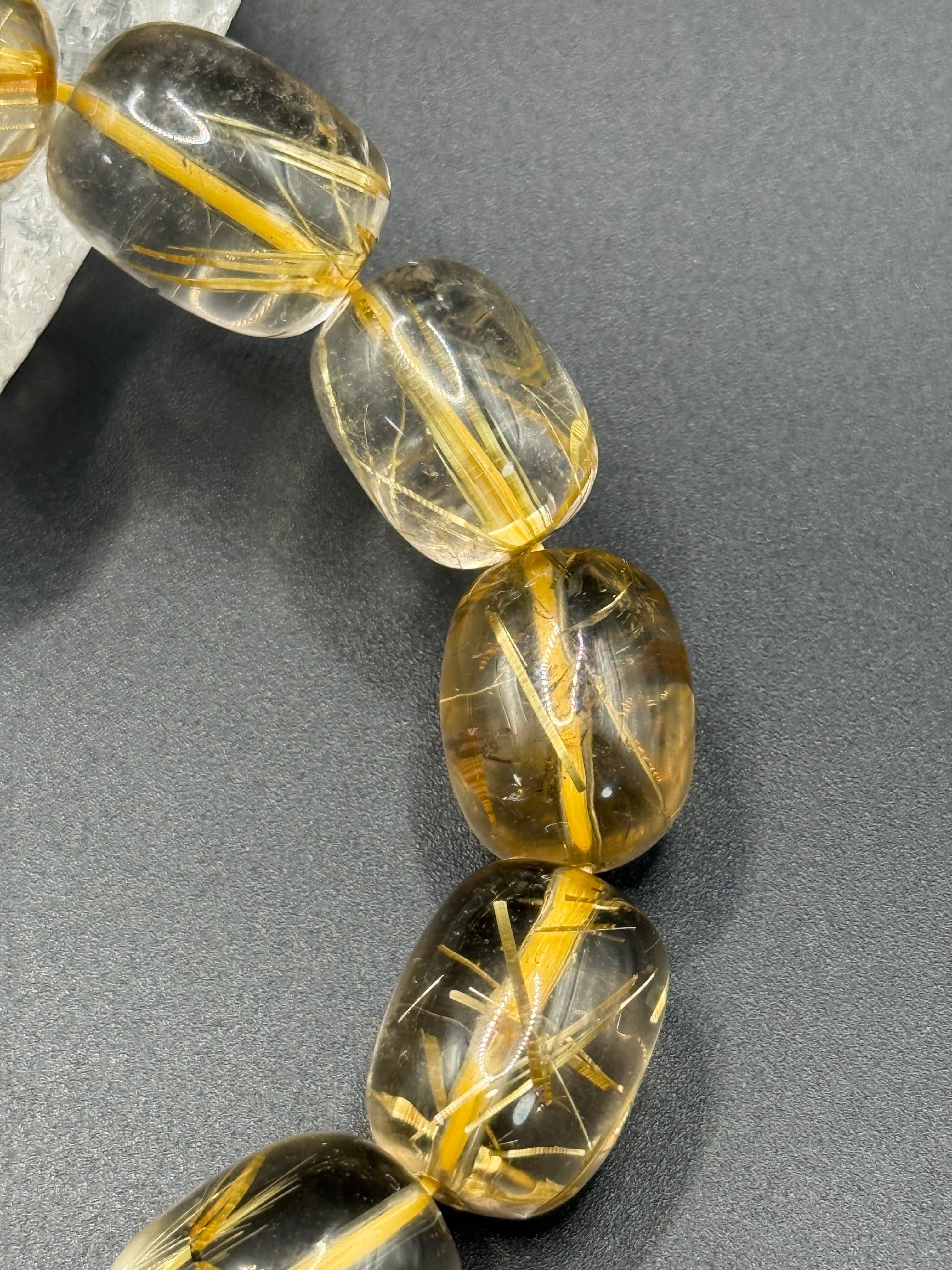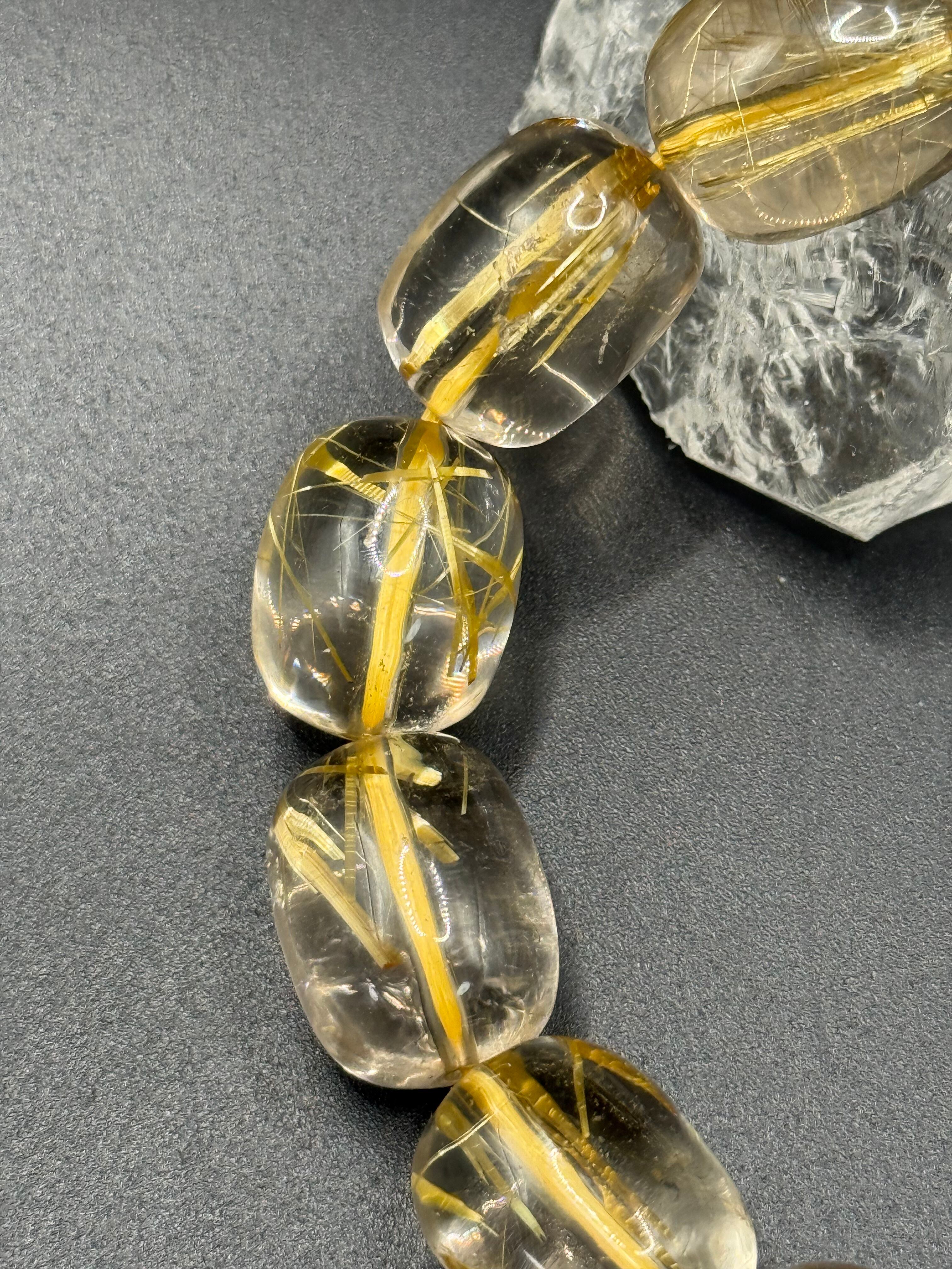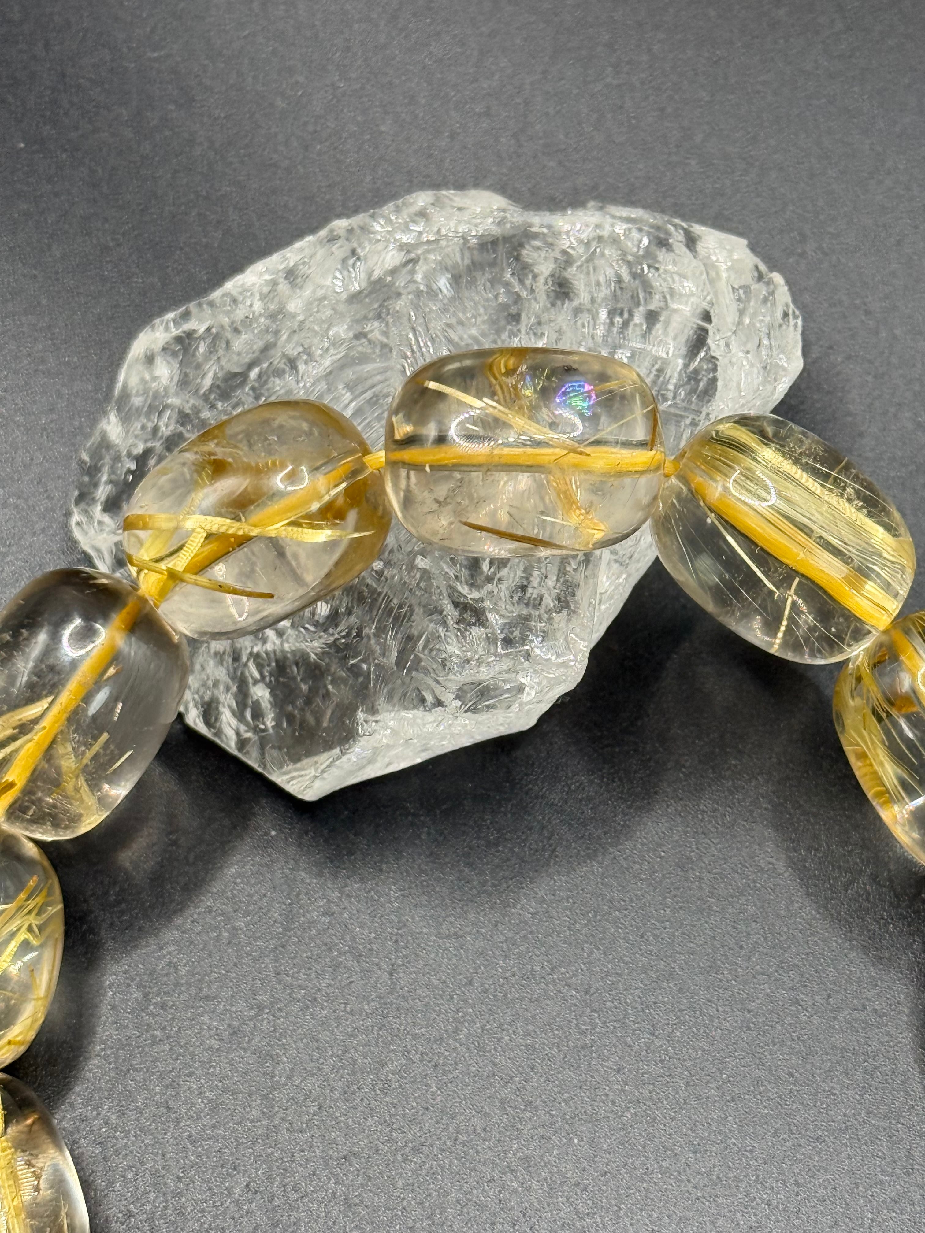 この美しい俵形ルチルクォーツを身にまとい、輝かしい日々を心ゆくまでお楽しみいただけますように。