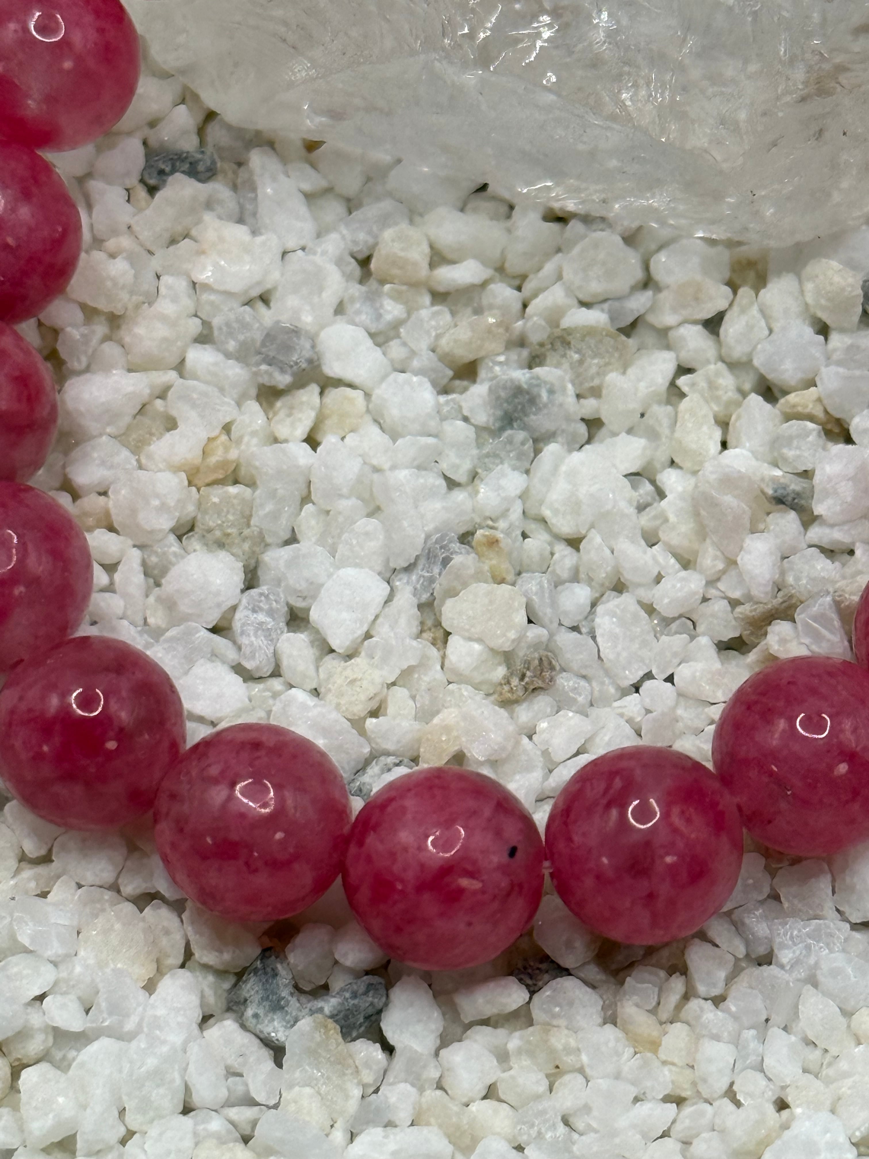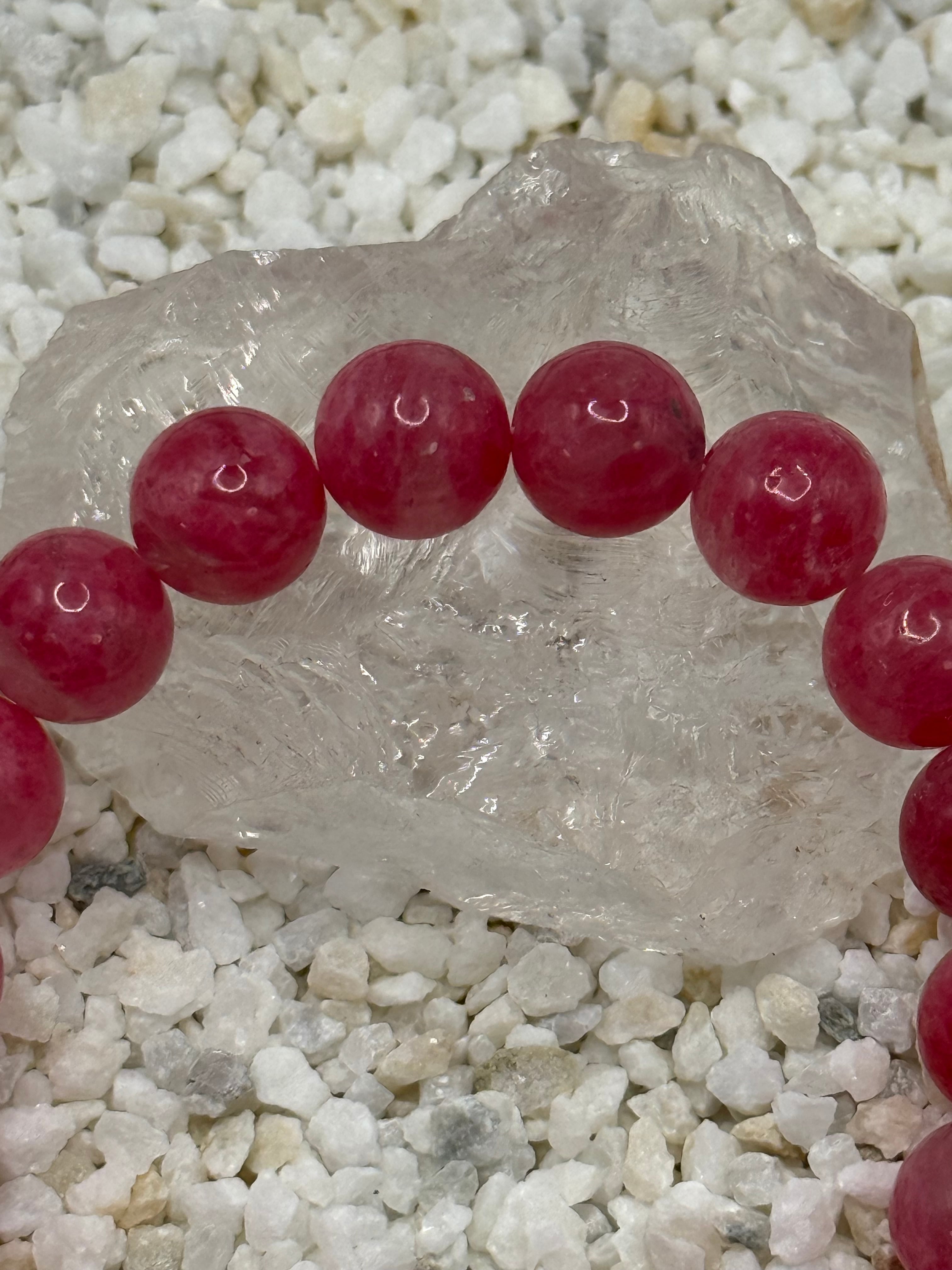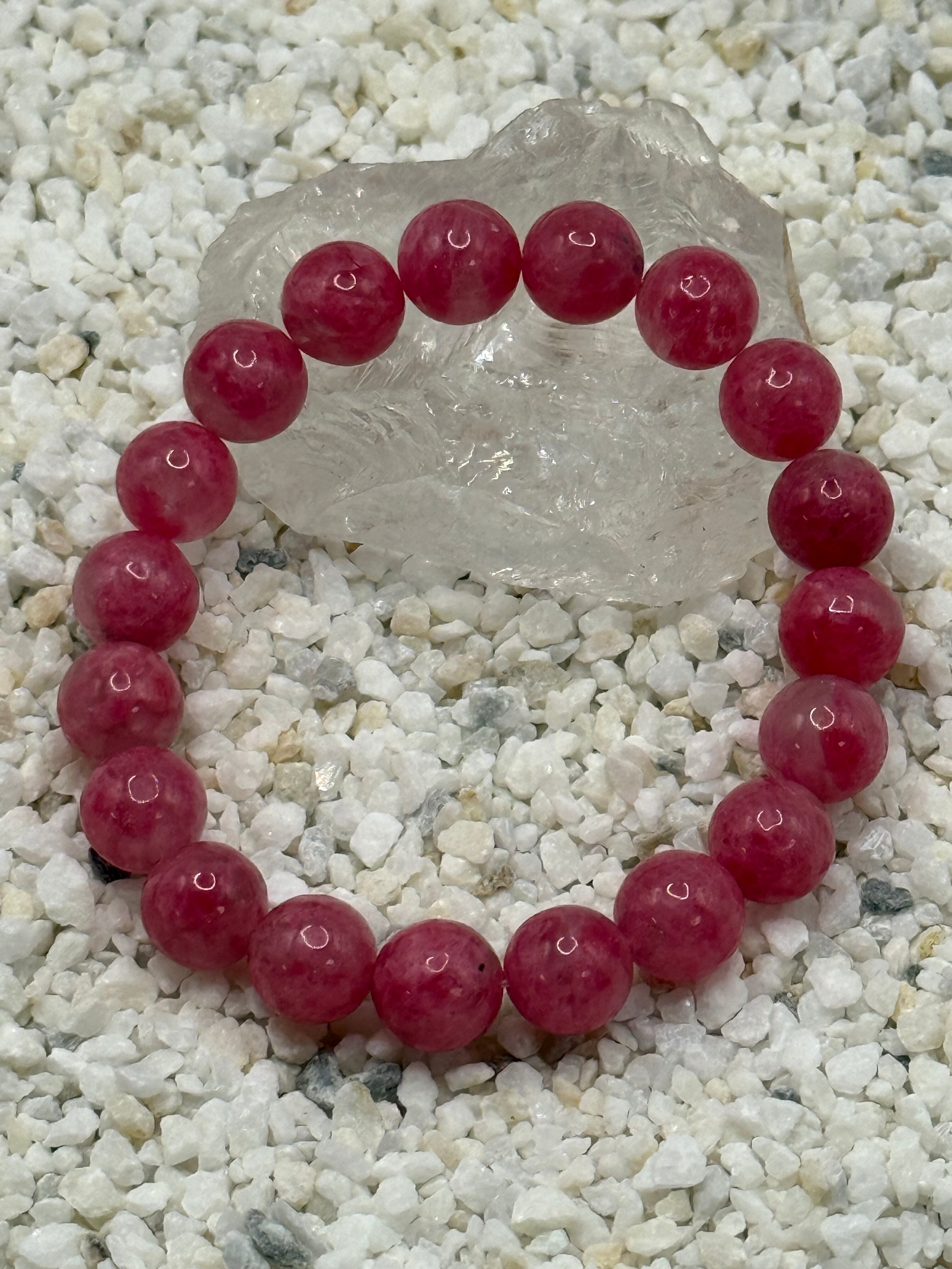 このロードナイトインクォーツ 10mmブレスレットは、透明感のある水晶の中にロードナイトのピンクが内包された、美しさと力強さを併せ持つ天然石です。