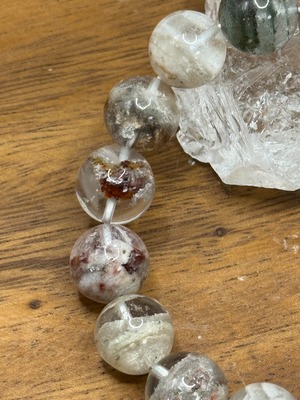 こちらの虹入りガーデンクォーツ13.5mmブレスレットは、水晶の中に広がる庭園のような内包物が印象的な、存在感あふれる一本です。