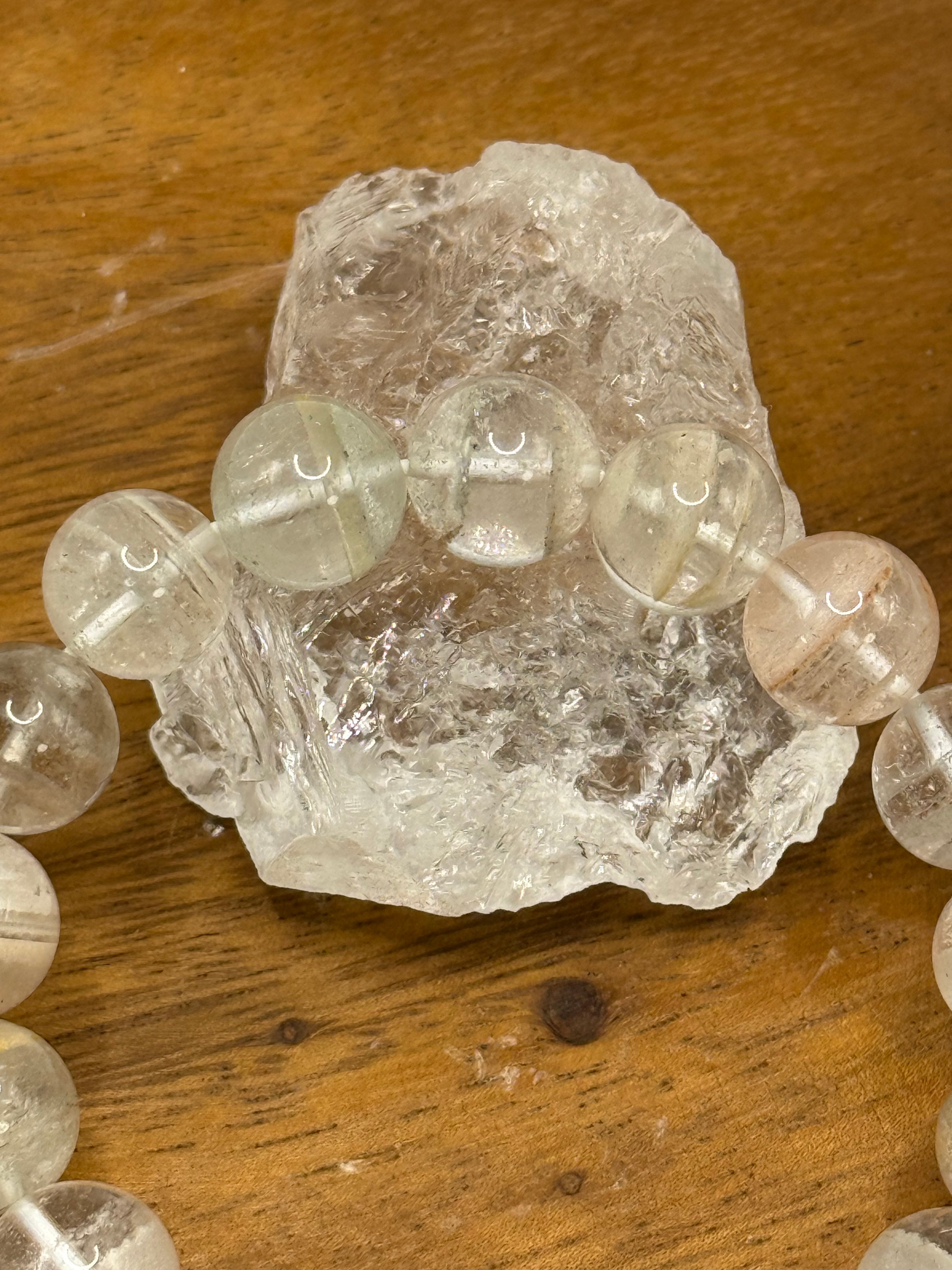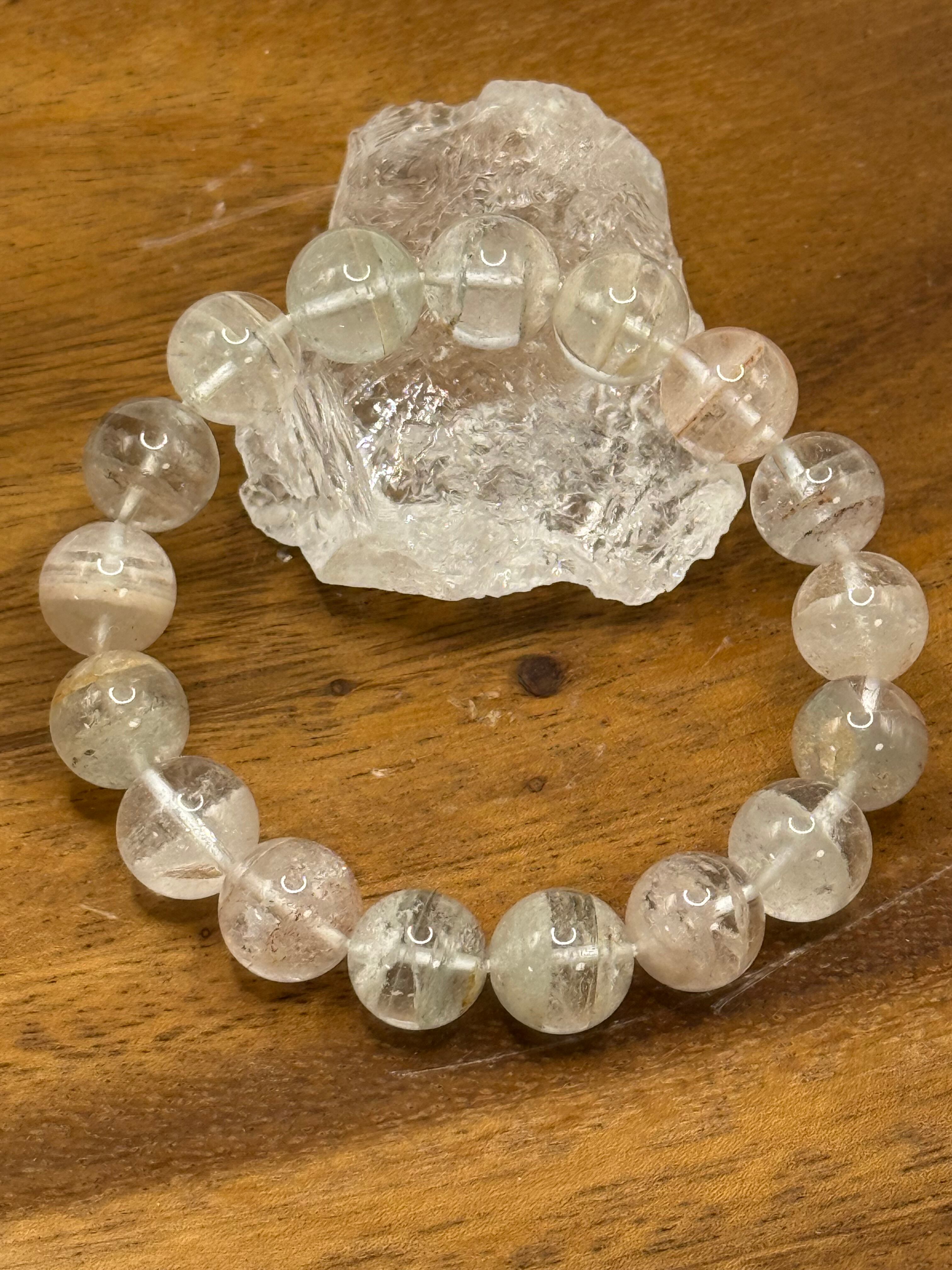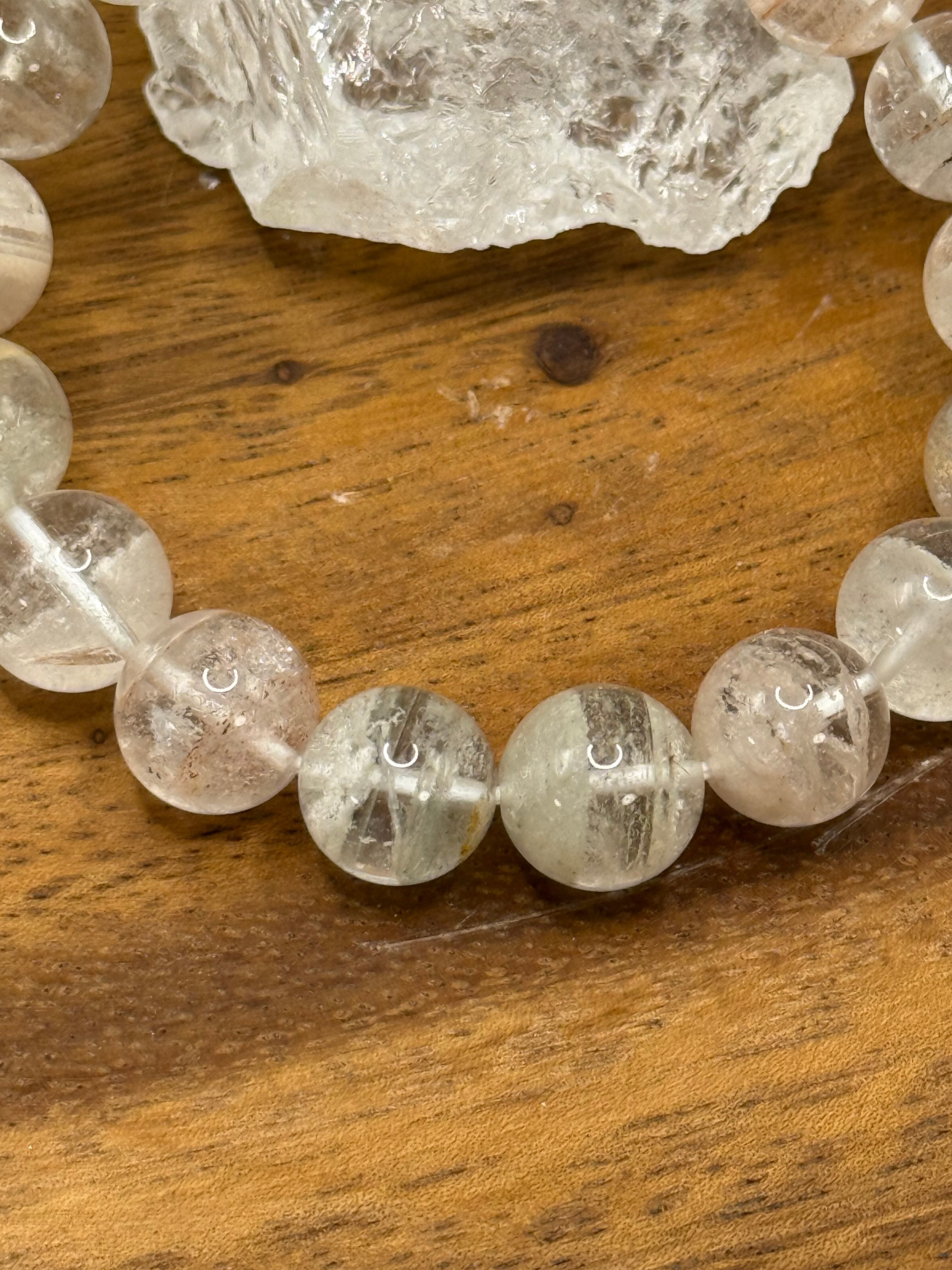 このガーデンクォーツ11.5mmブレスレットは、水晶の内部に広がる庭園のような内包物が魅力の一本です。
