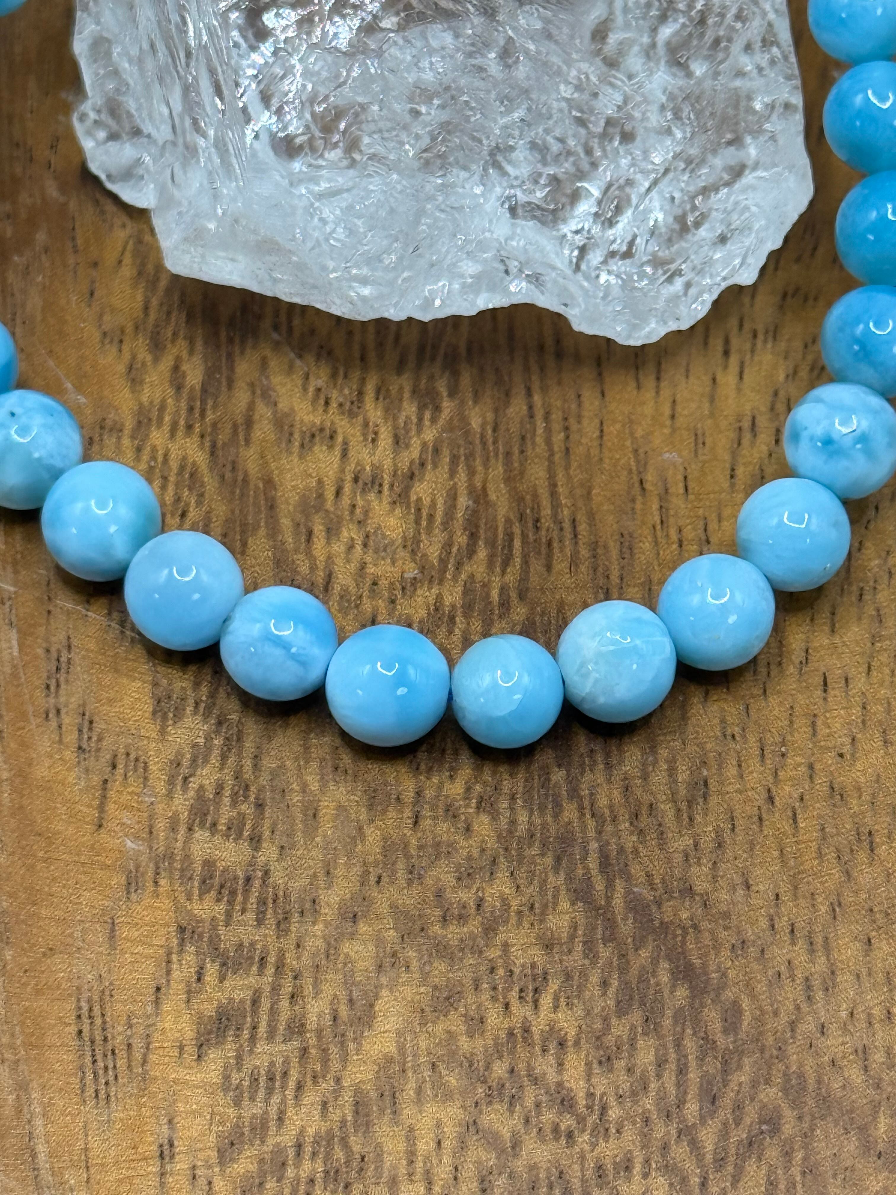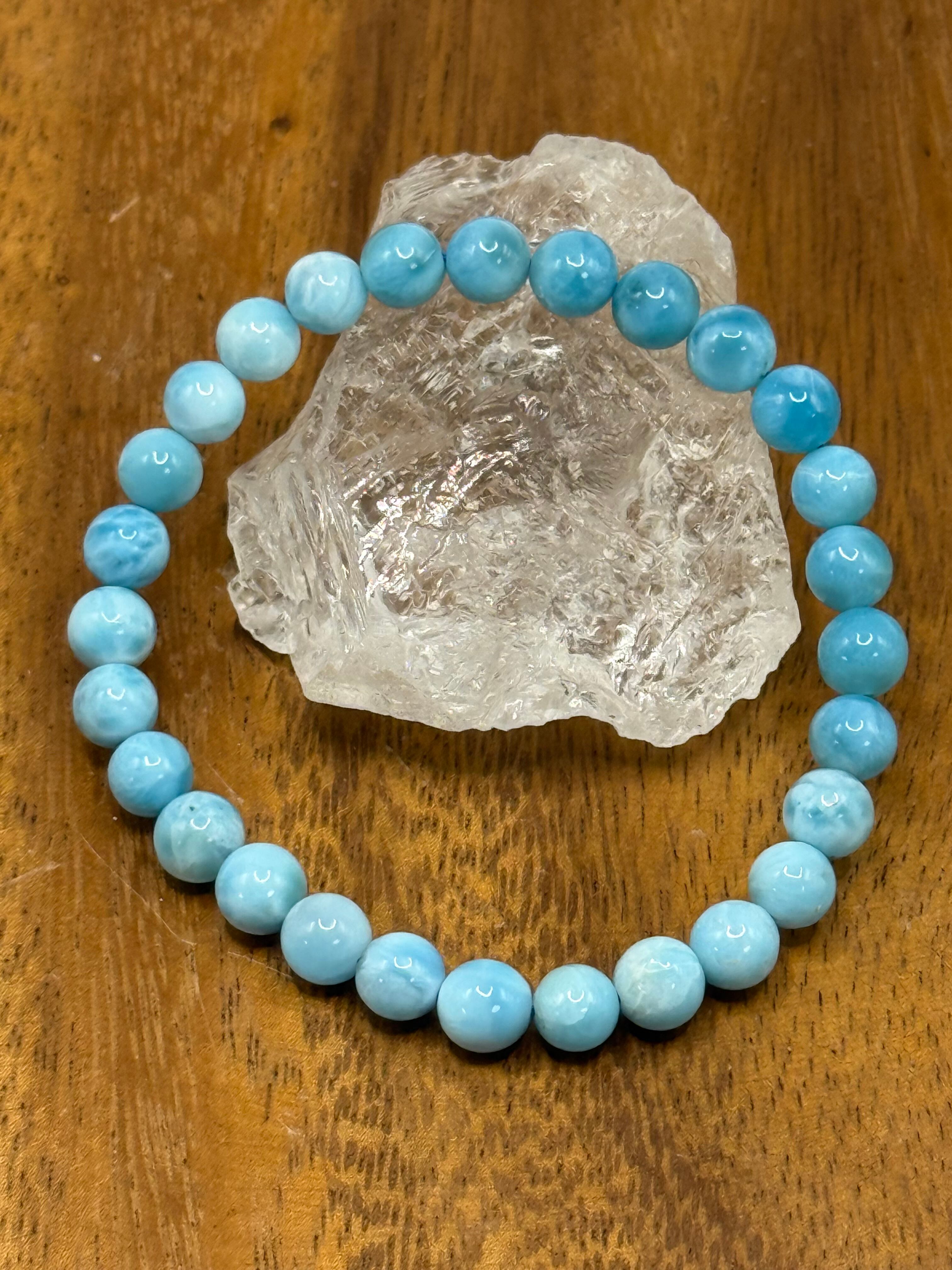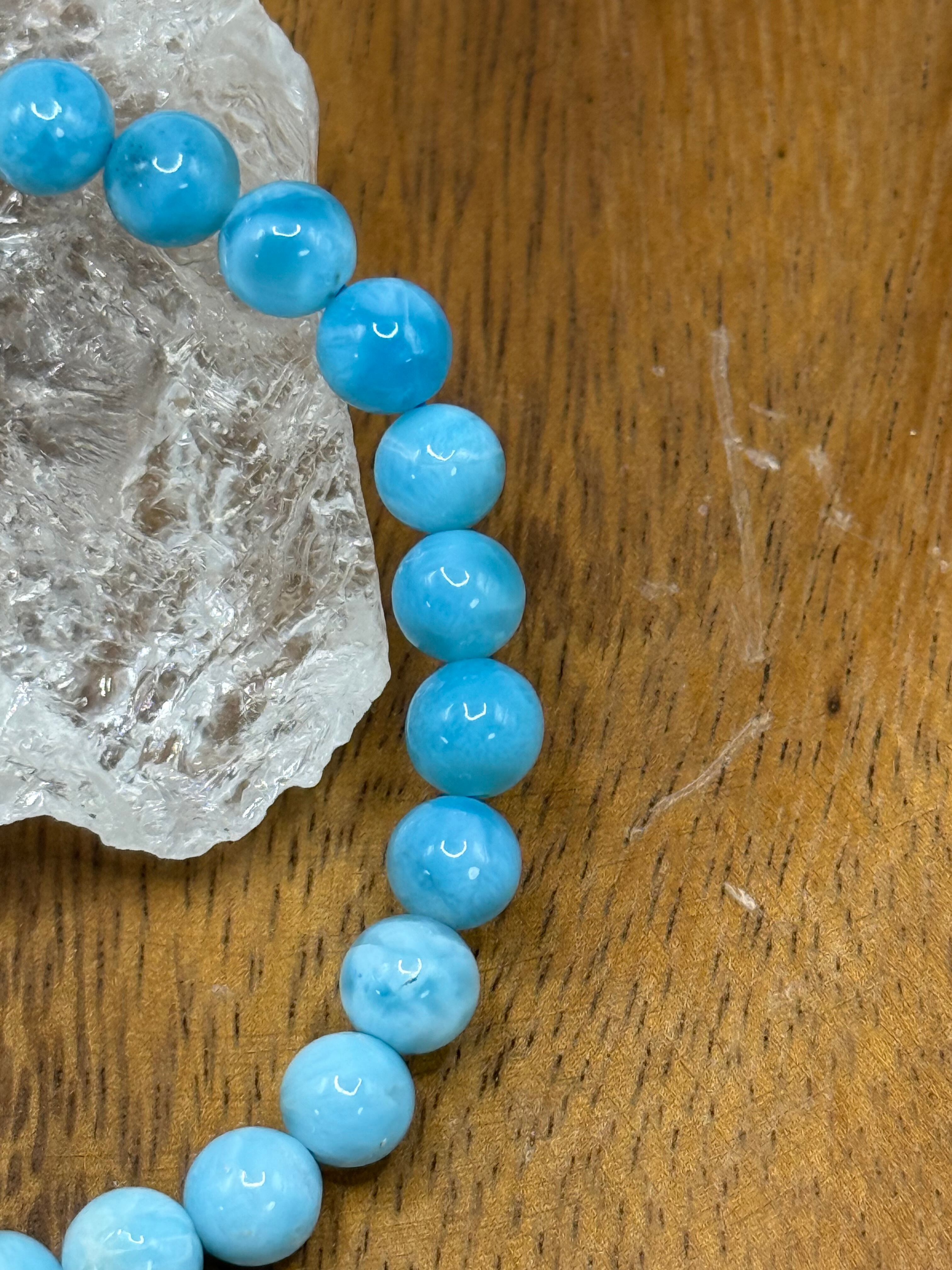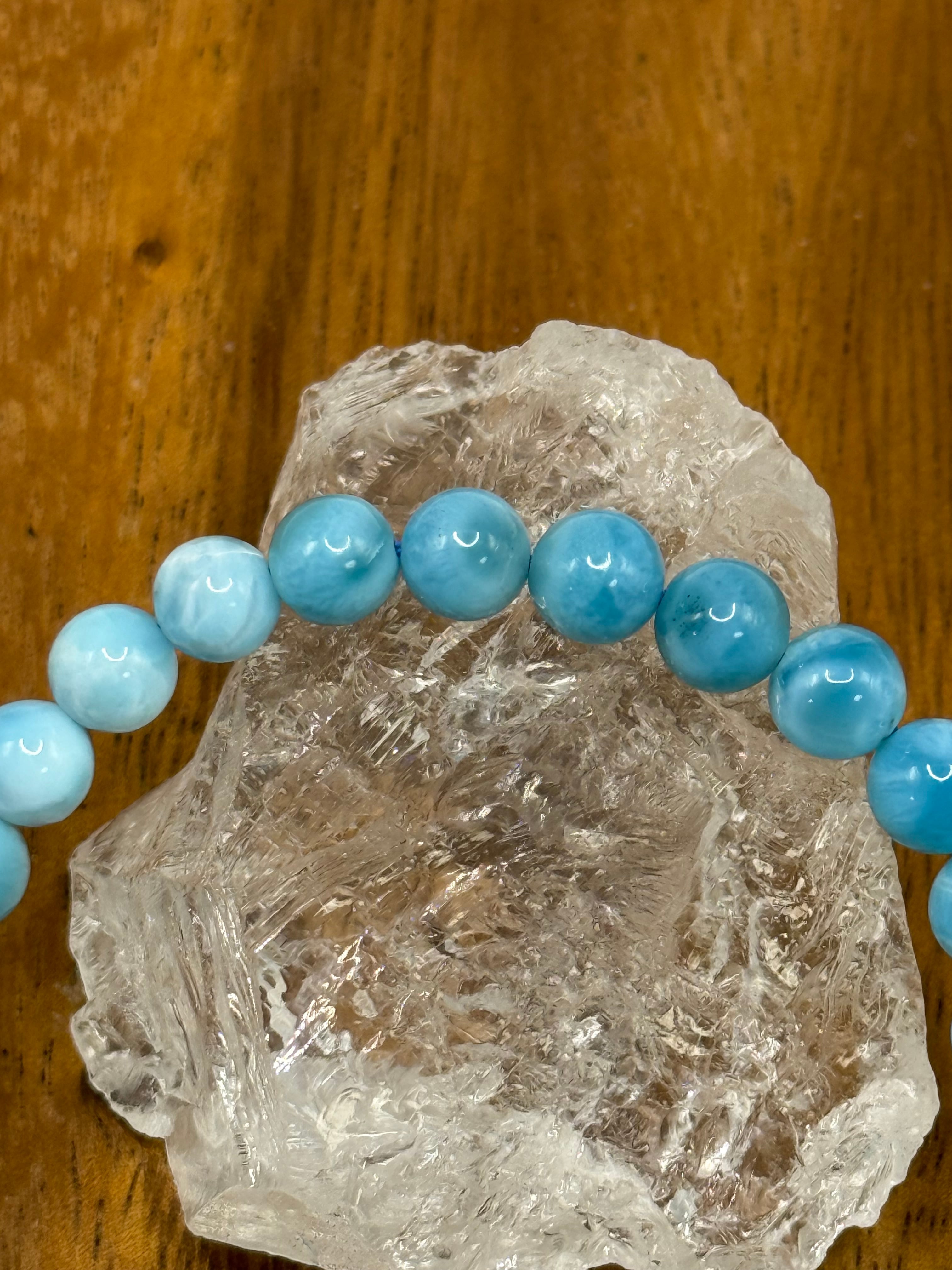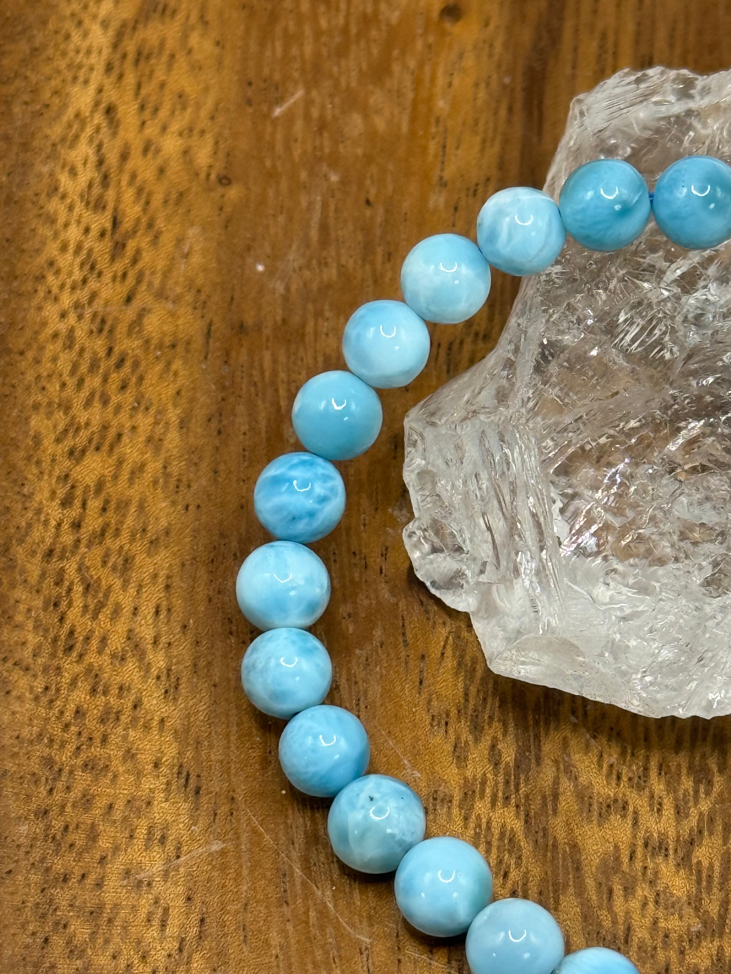 このラリマー6.5mmブレスレットは、カリブ海を思わせる淡くやさしいブルーと白の模様が魅力の、繊細で上品な一本です。