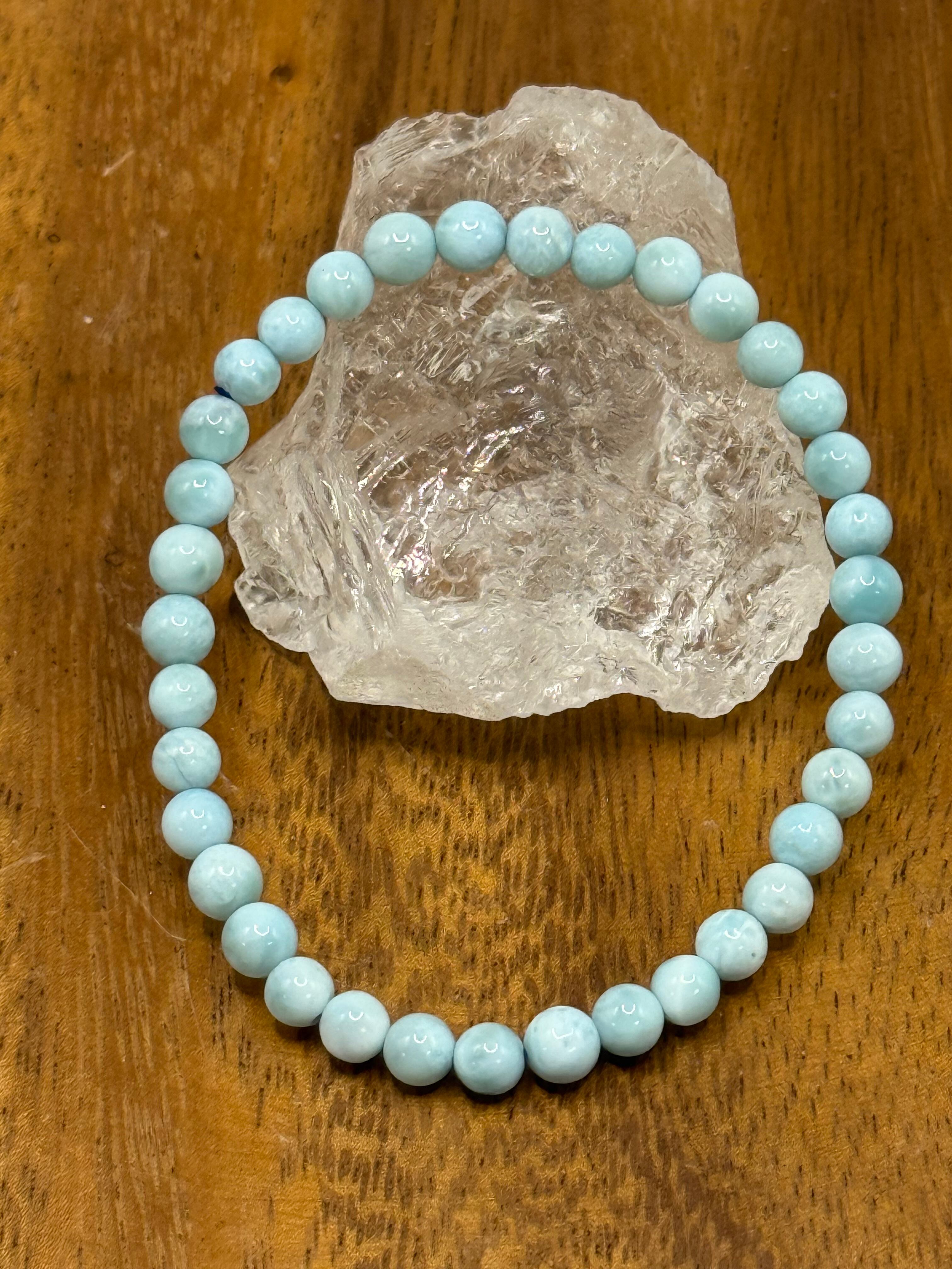 このラリマー5mmブレスレットは、カリブ海を思わせる淡くやさしいブルーが魅力の、繊細で軽やかな一本です。