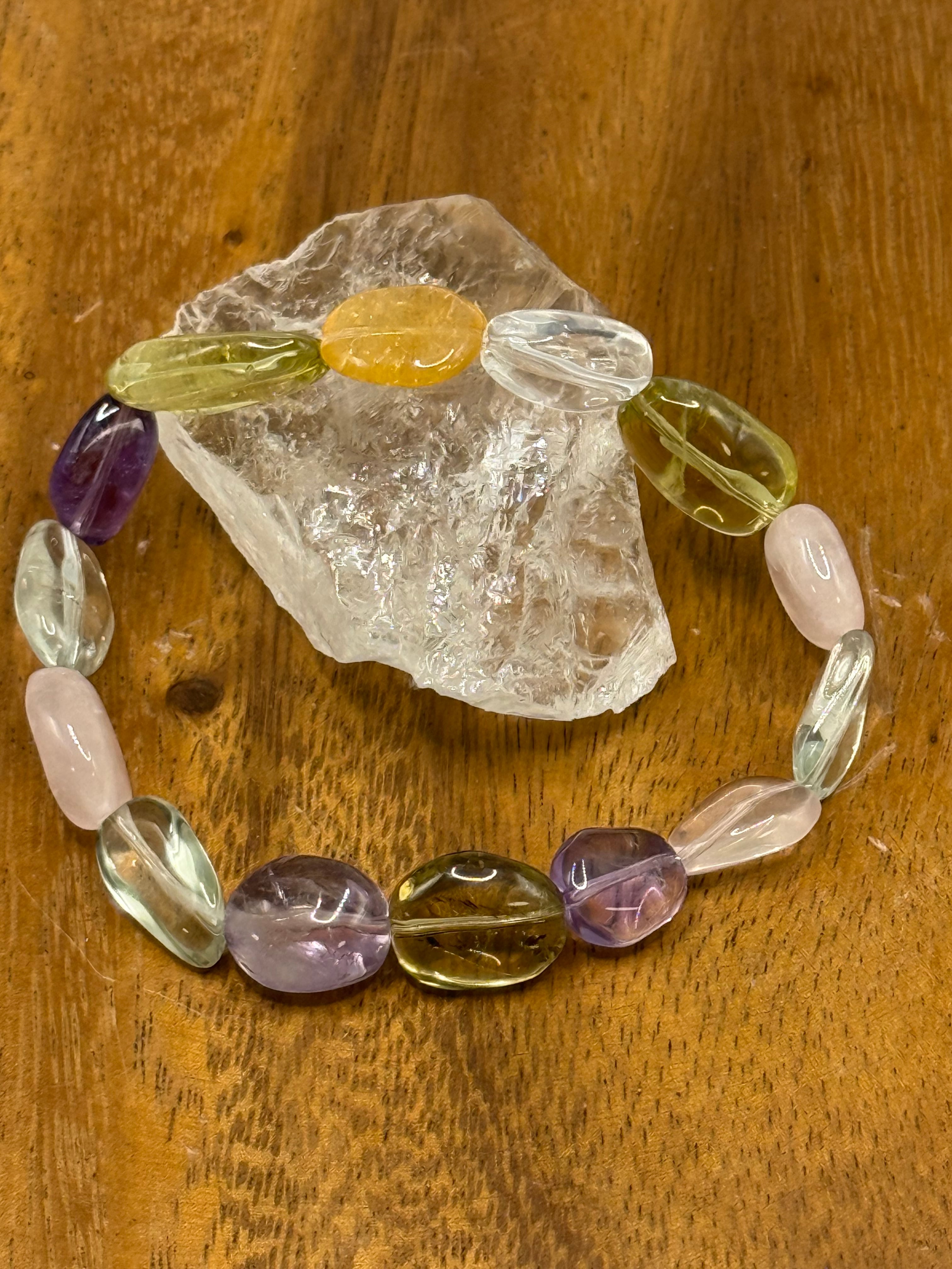天然石ミックス(アクアマリン、ローズクォーツ、アメジスト、シトリン、ペリドット)ブレスレット 内径17cm 0114−17