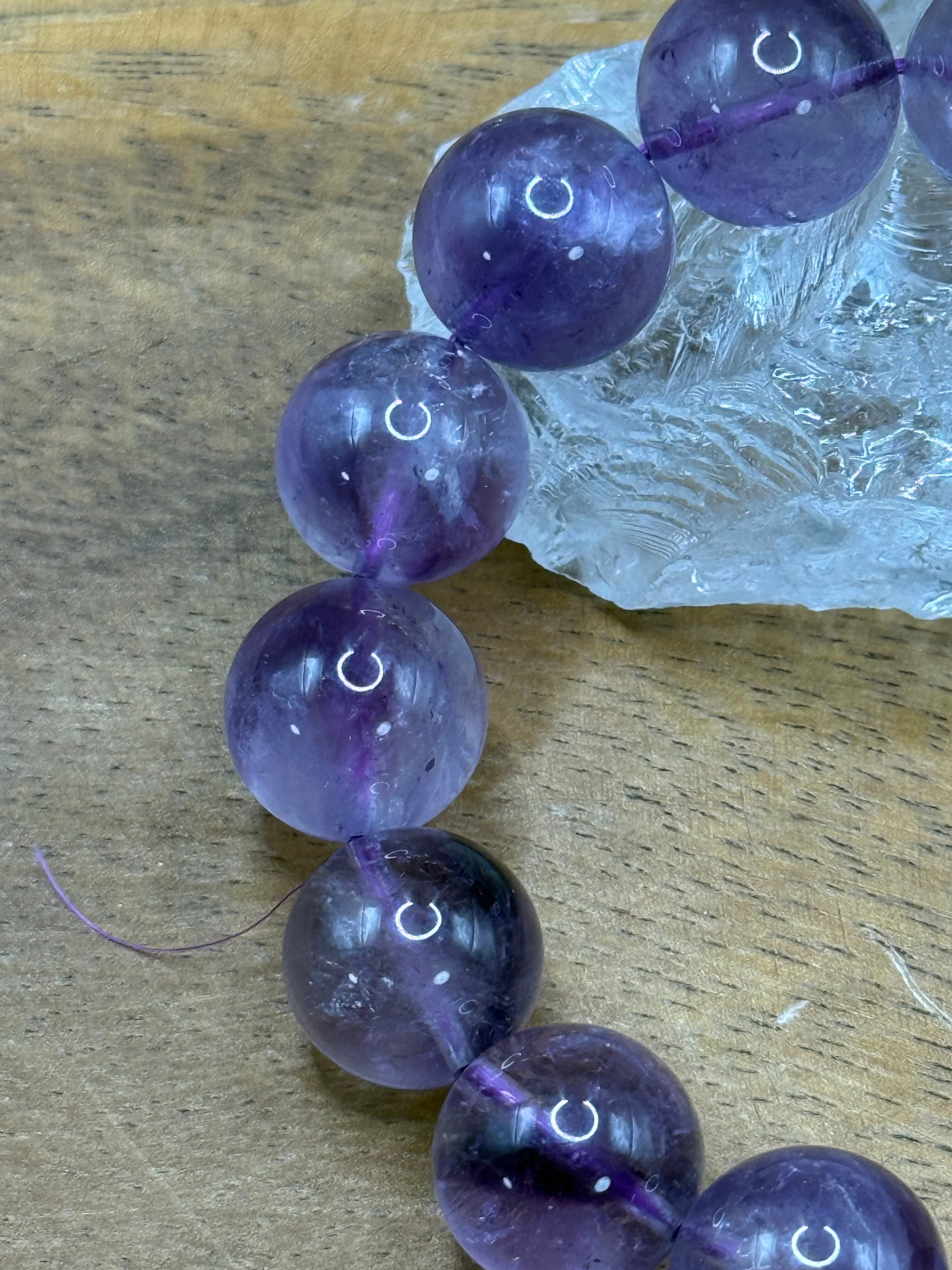 こちらは、**ラベンダーアメジスト(柔らかな色合いとアイリスのような神秘的な美しさを持つ14mmビーズ)**です。