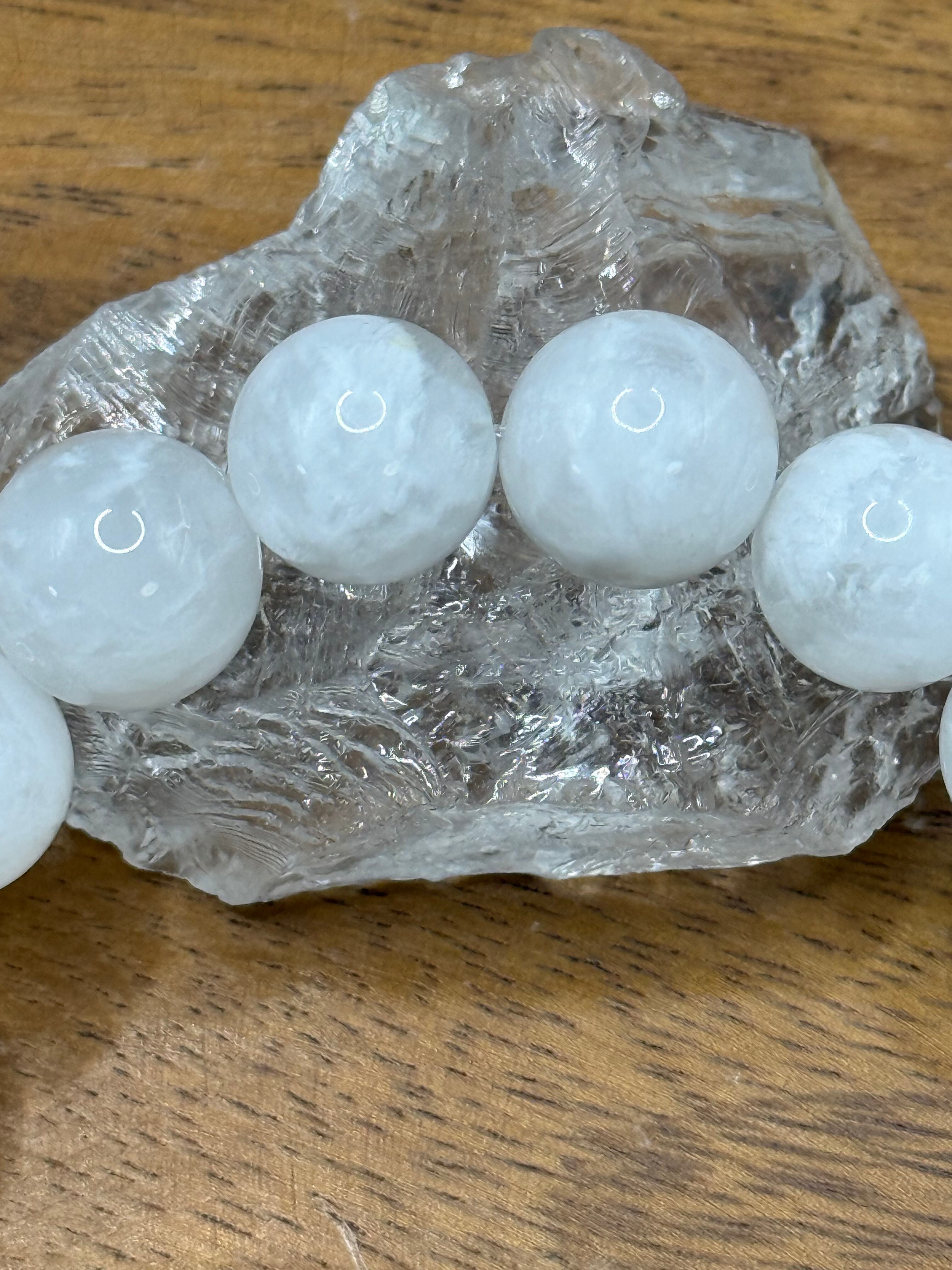 その純粋な白色が、見る者に静けさをもたらし、心の浄化をサポートします。この石は、内なる平和を促進し、心のクリアリングに役立つ力があります。