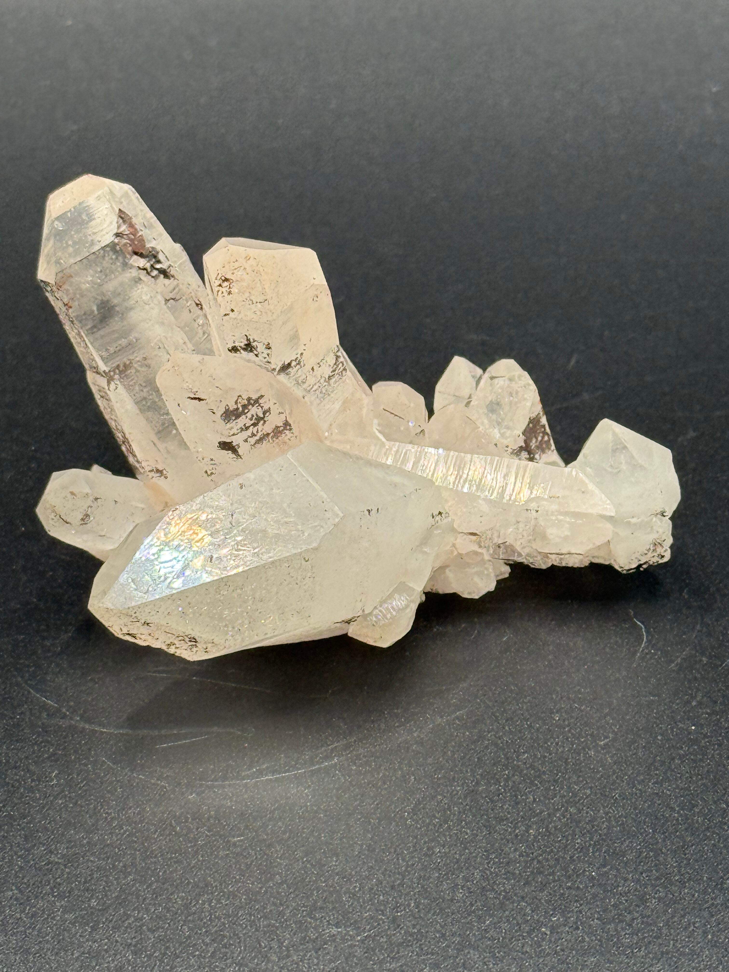 この水晶は、その特異な形状と輝きが、見る者を魅了し、心の平穏をもたらします。エネルギーの浄化と精神の安定を促す力を秘めており、内面的な成長をサポートします。