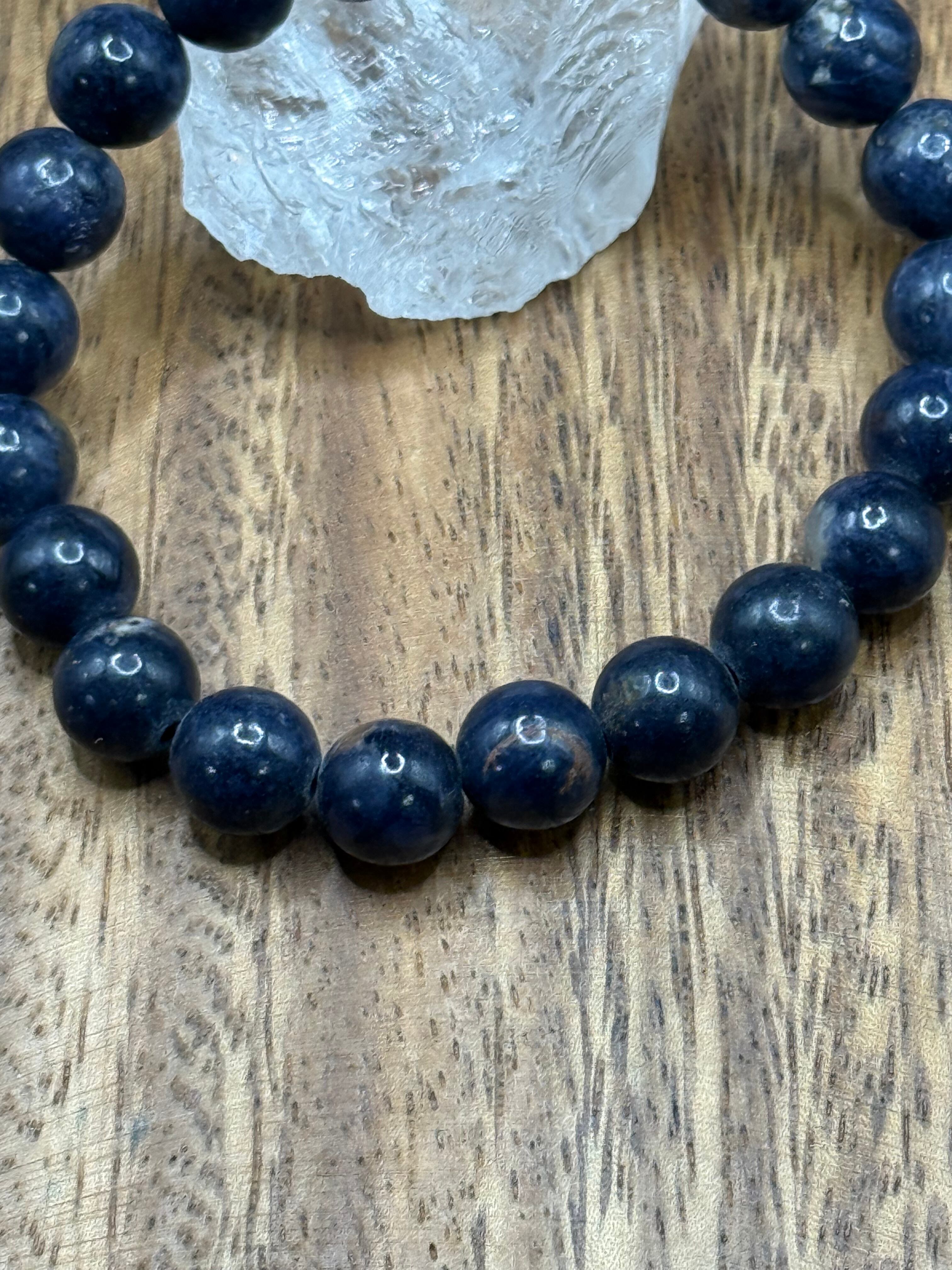 このストーンは、深い青色と独特な煌めきが特徴で、見る者に冷静さと落ち着きを与え、心の安定をもたらします。