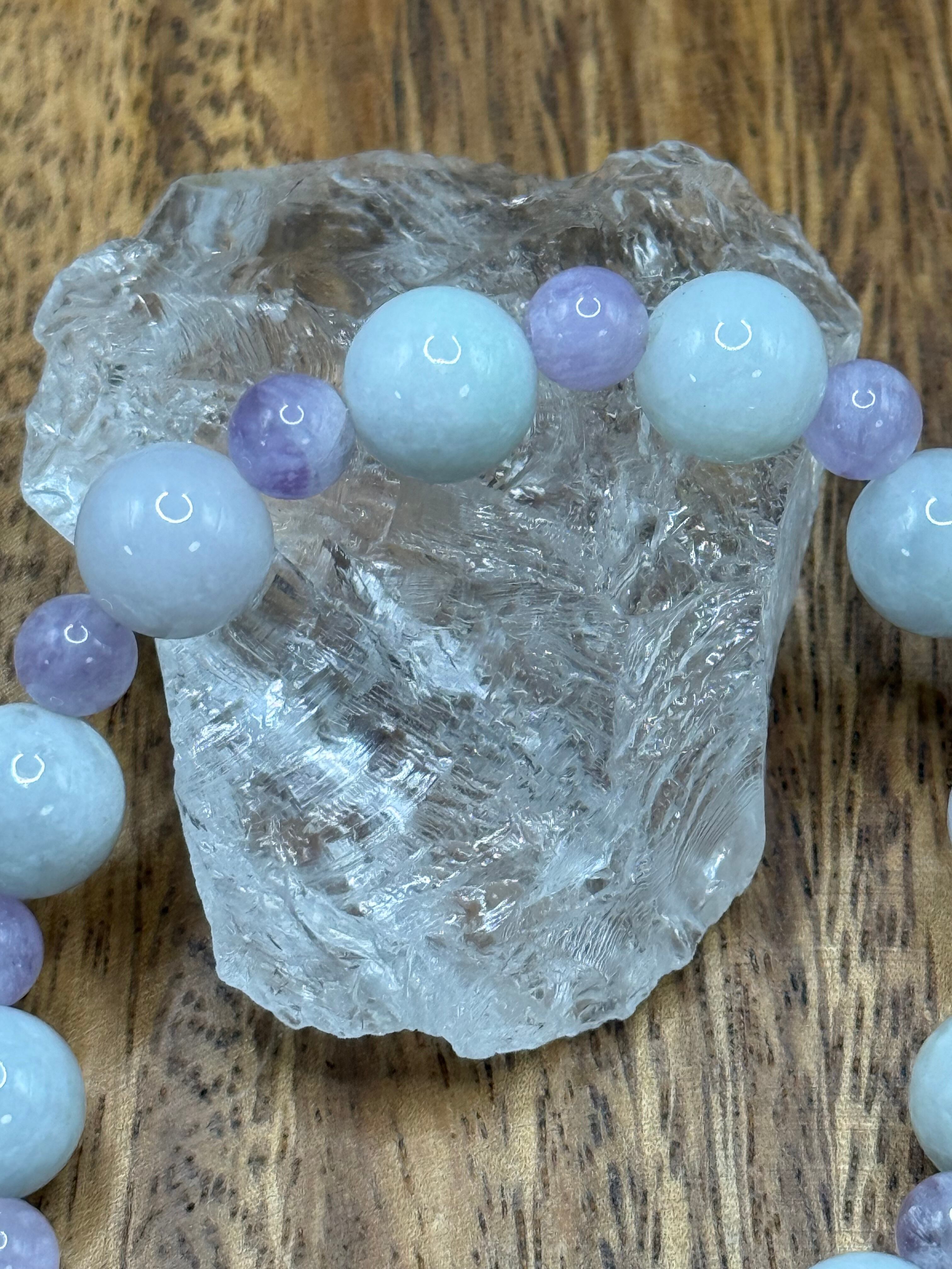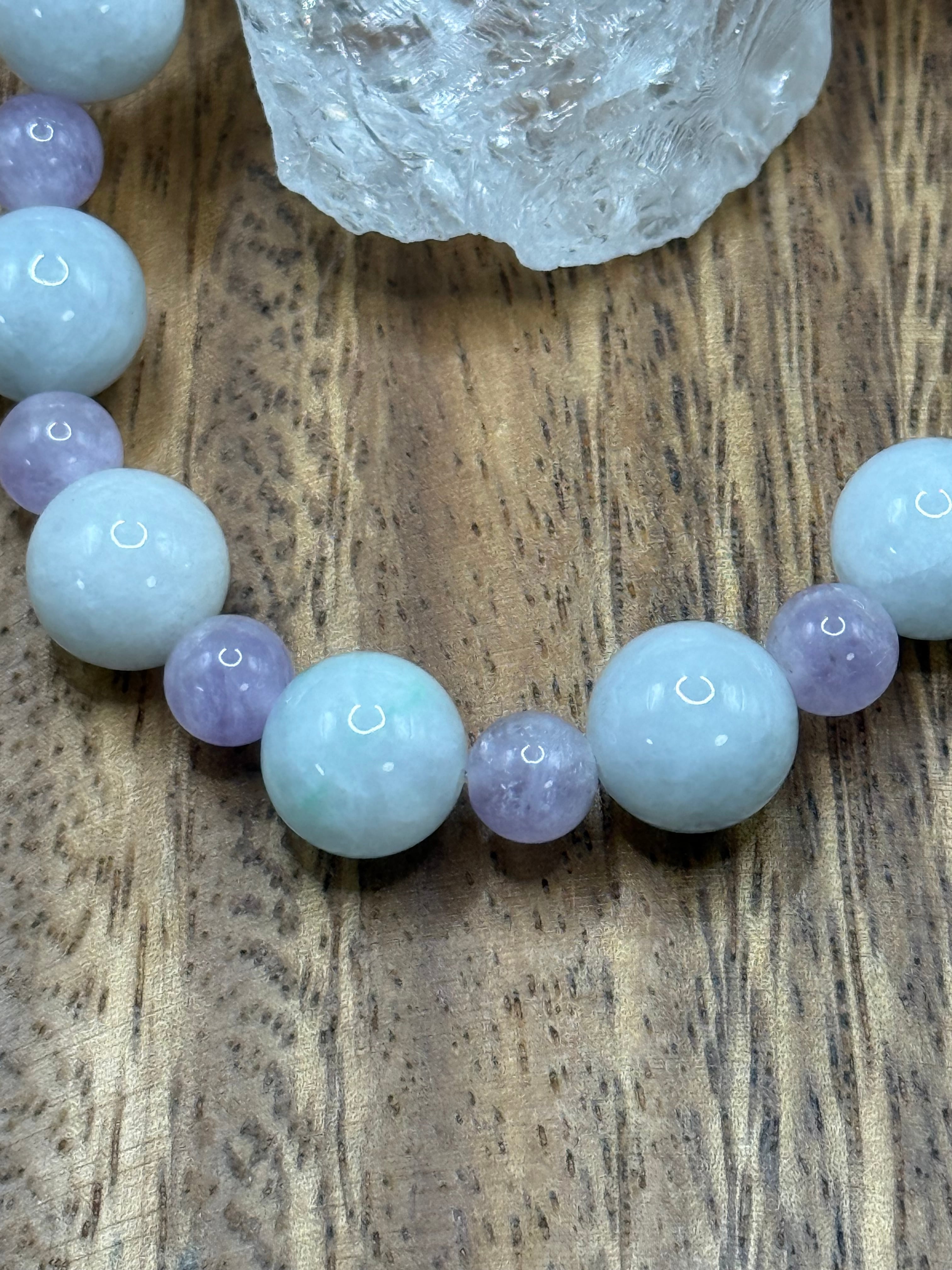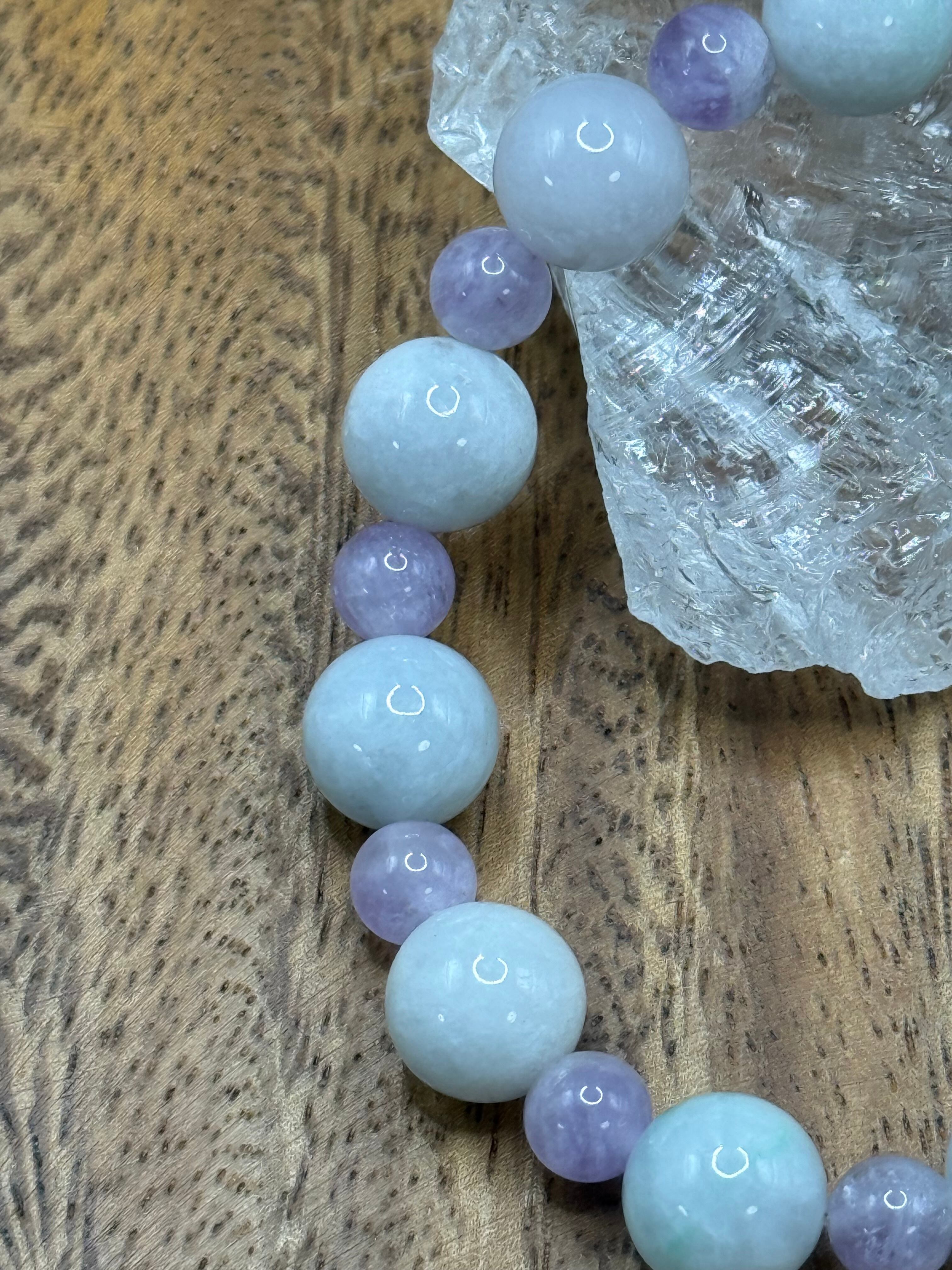 〜心を惹きつける神秘的な輝き、白翡翠/アメジスト 10mm/6mm〜