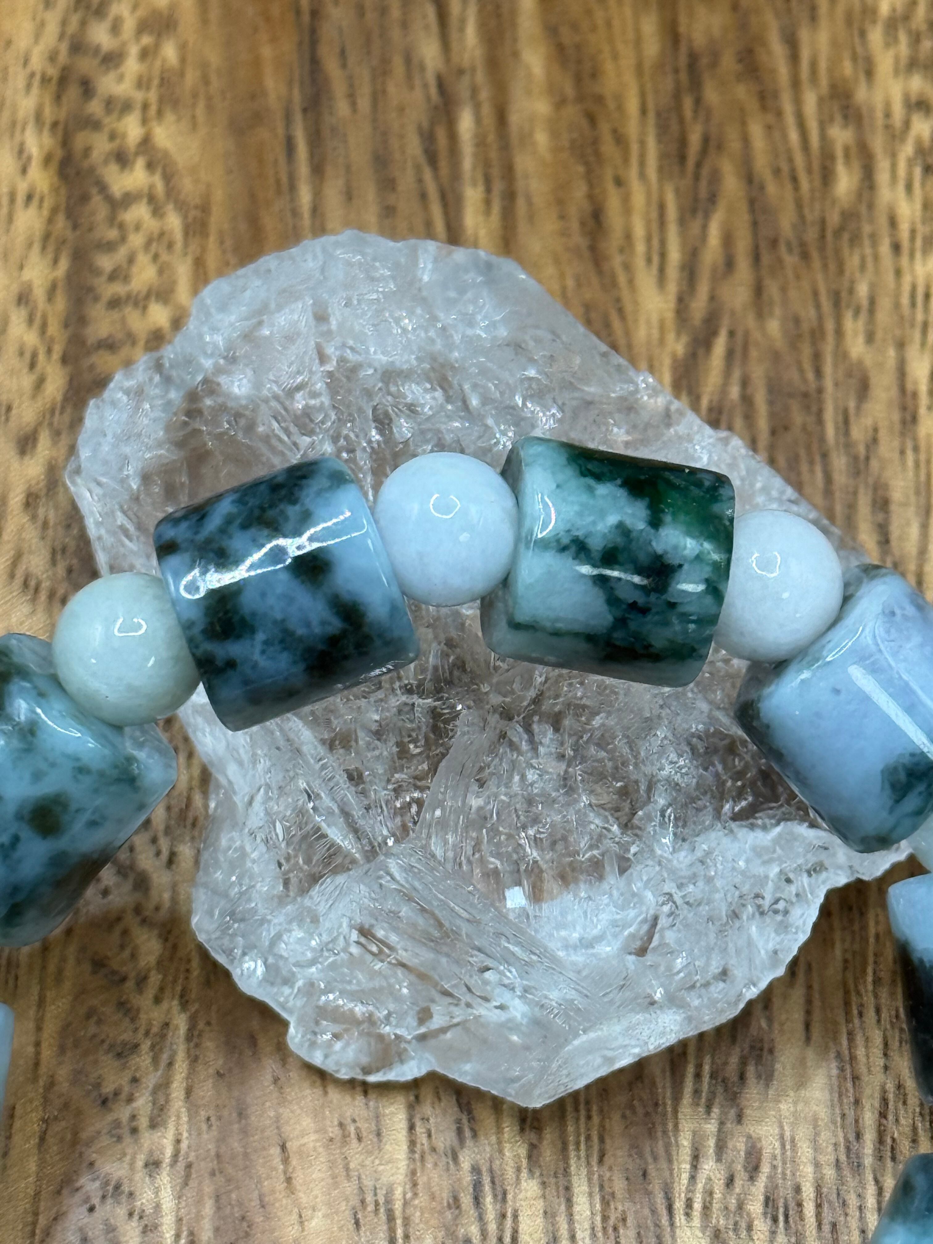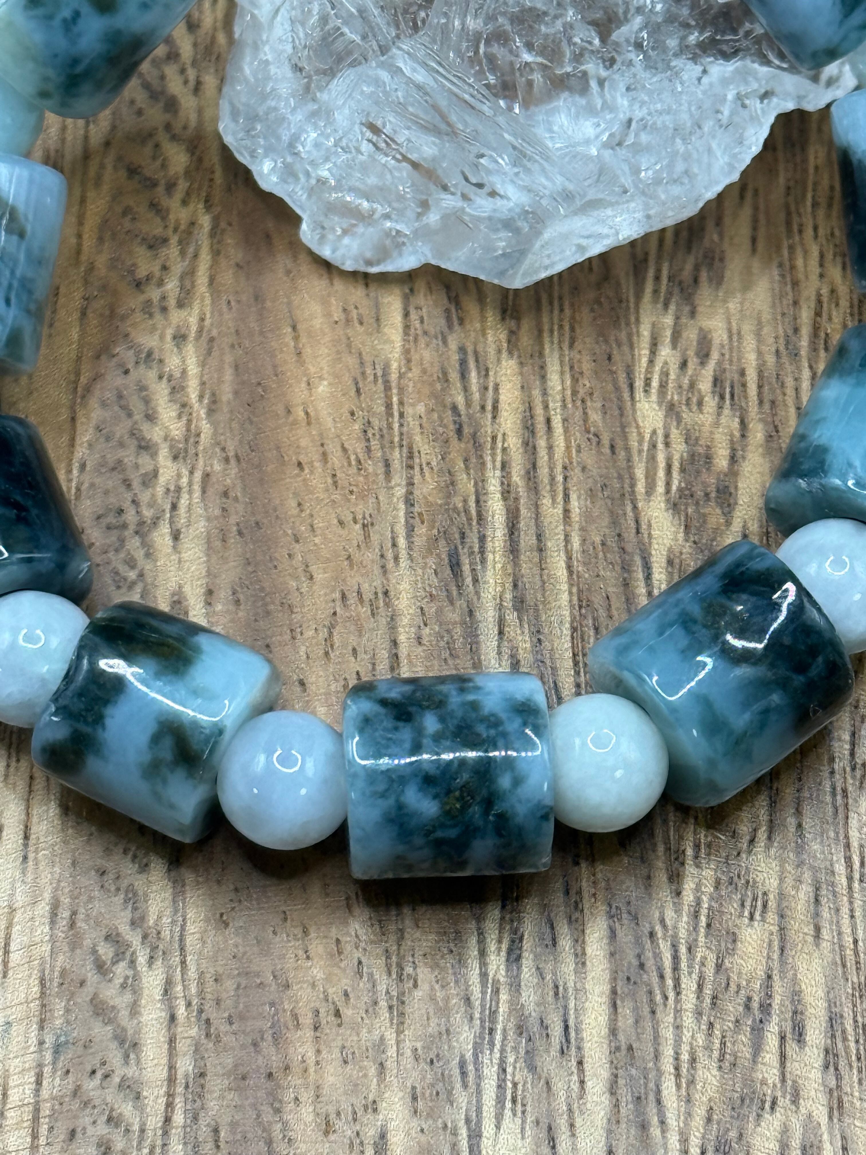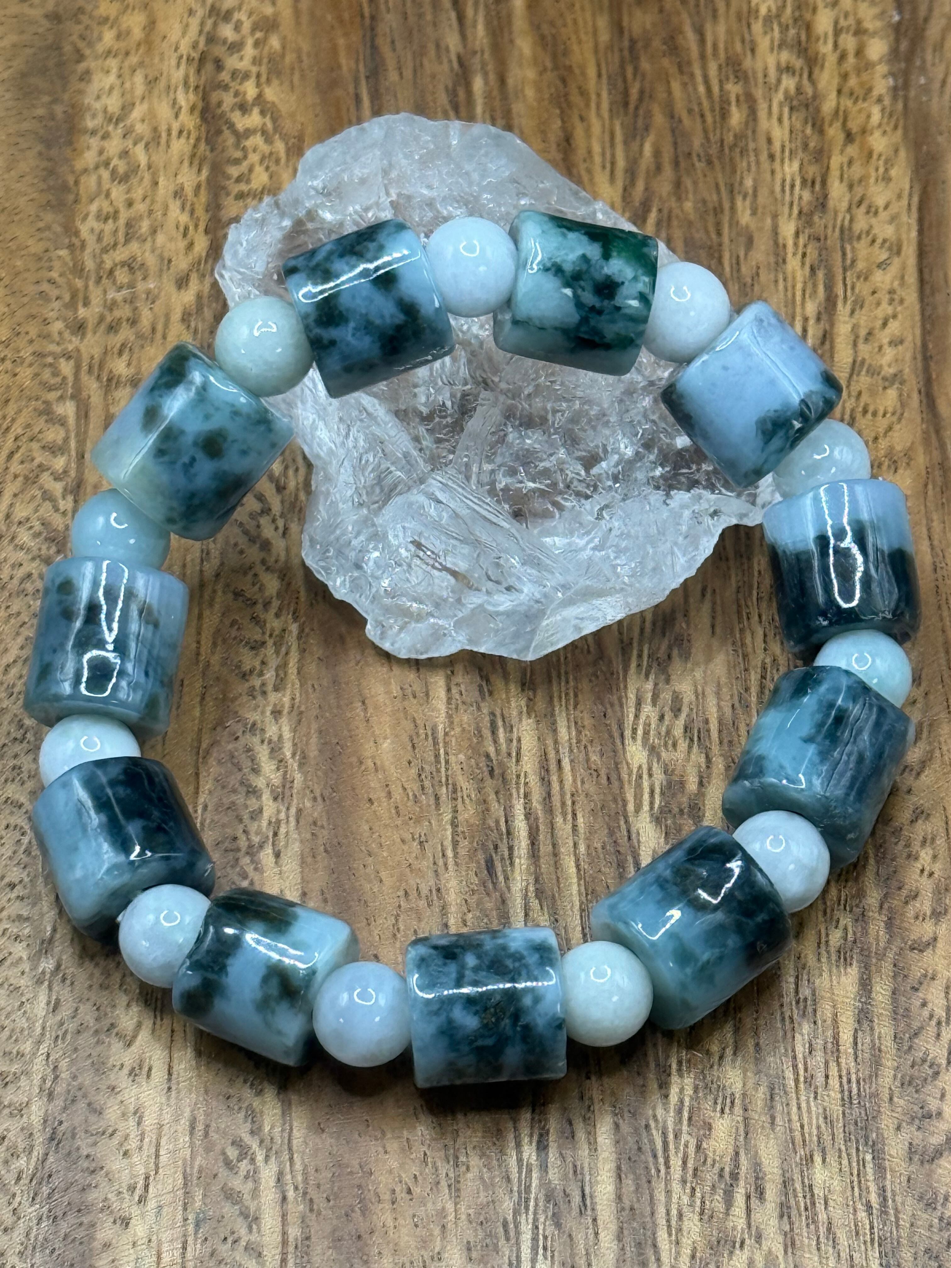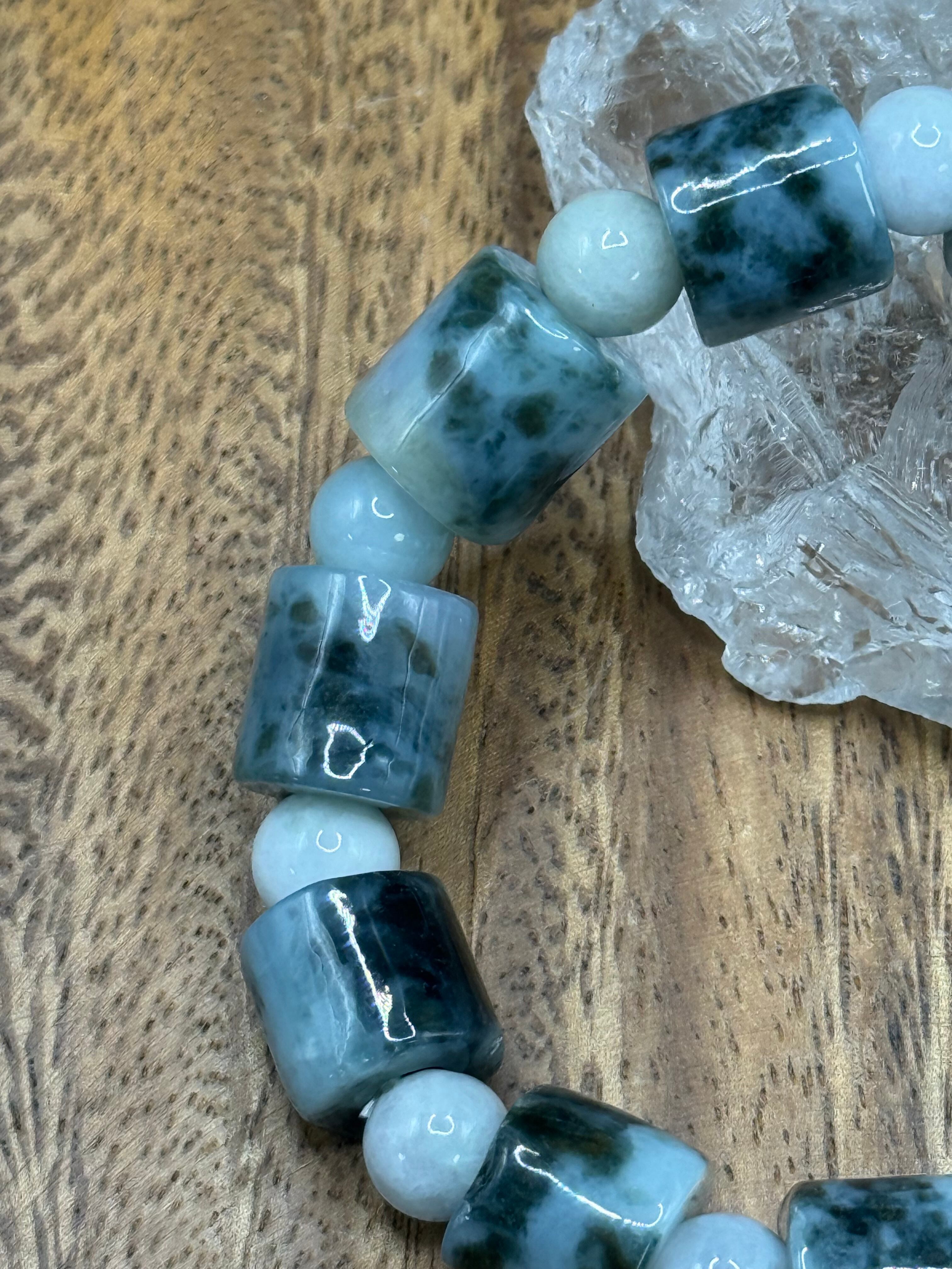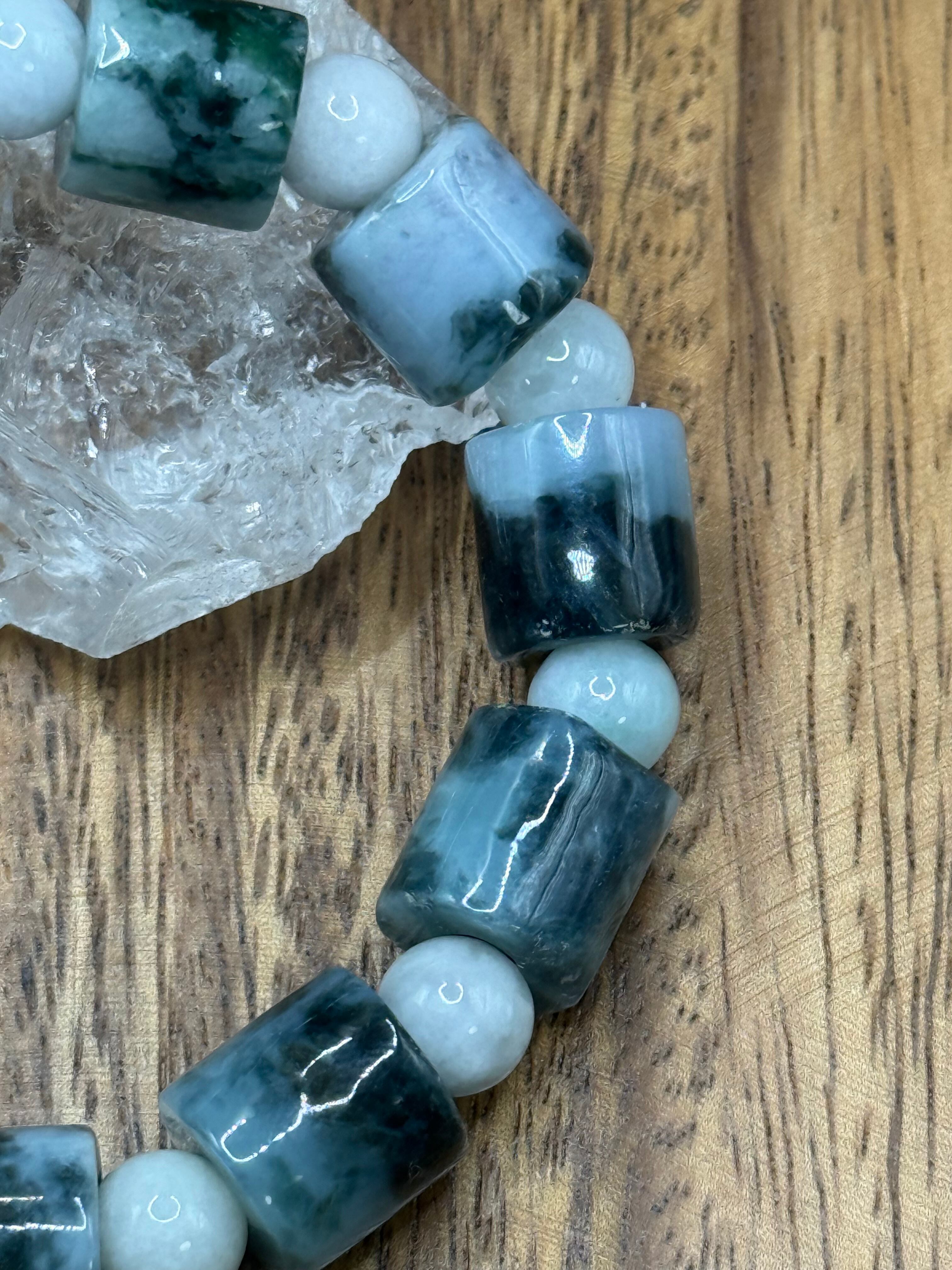 〜心を惹きつける魅力的な模様、ミャンマー産翡翠 マーブル管玉 12mm 玉 8mm〜