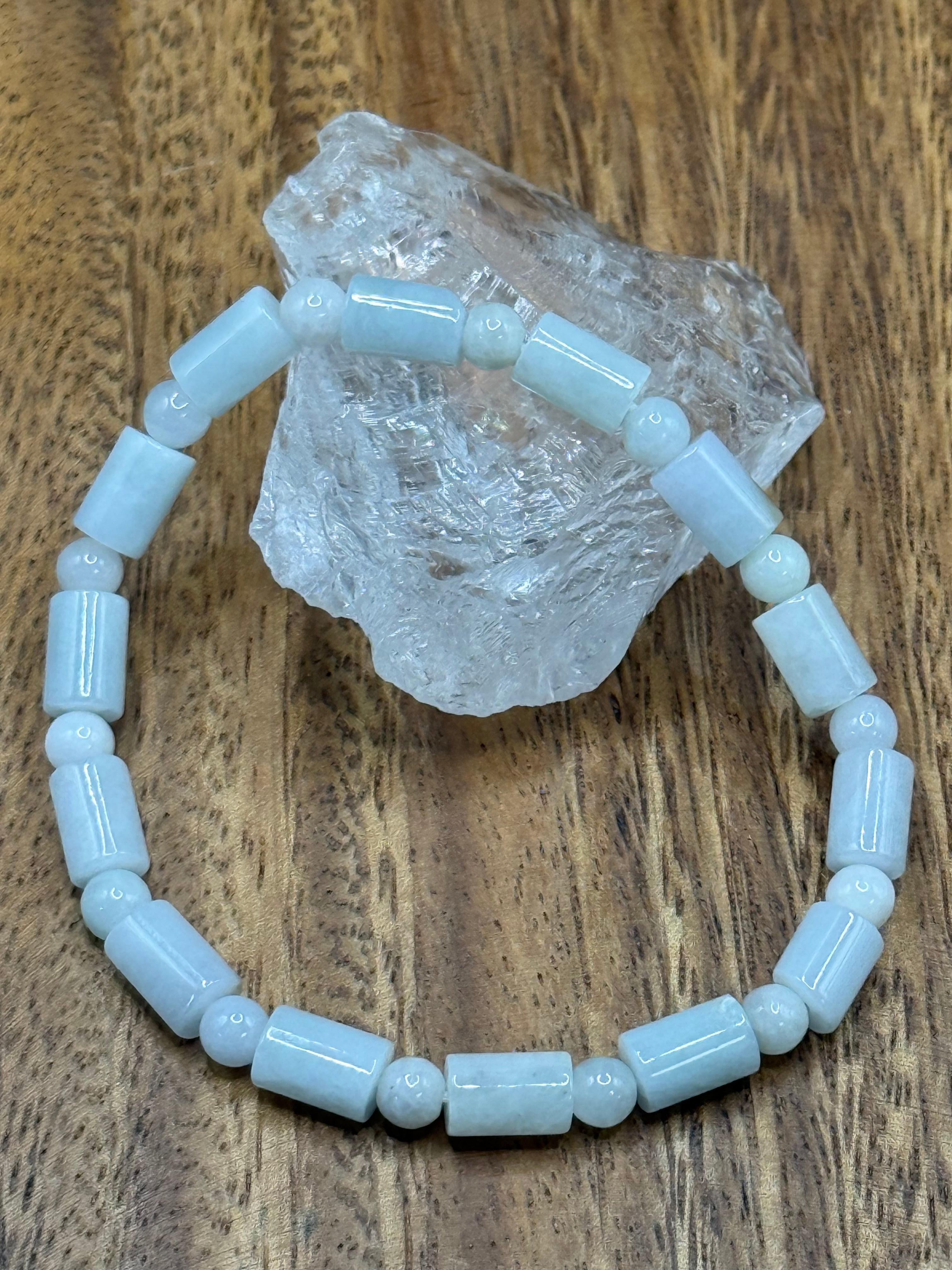 このストーンは、滑らかな管玉の形状が特徴で、光の当たり方によって美しいグリーンが優雅に輝き、見る者にリラックスしたエネルギーを届けます。豊かに広がる緑色は、心の安らぎを促し、日常生活に幸運と豊かさをもたらすサポートをいたします。