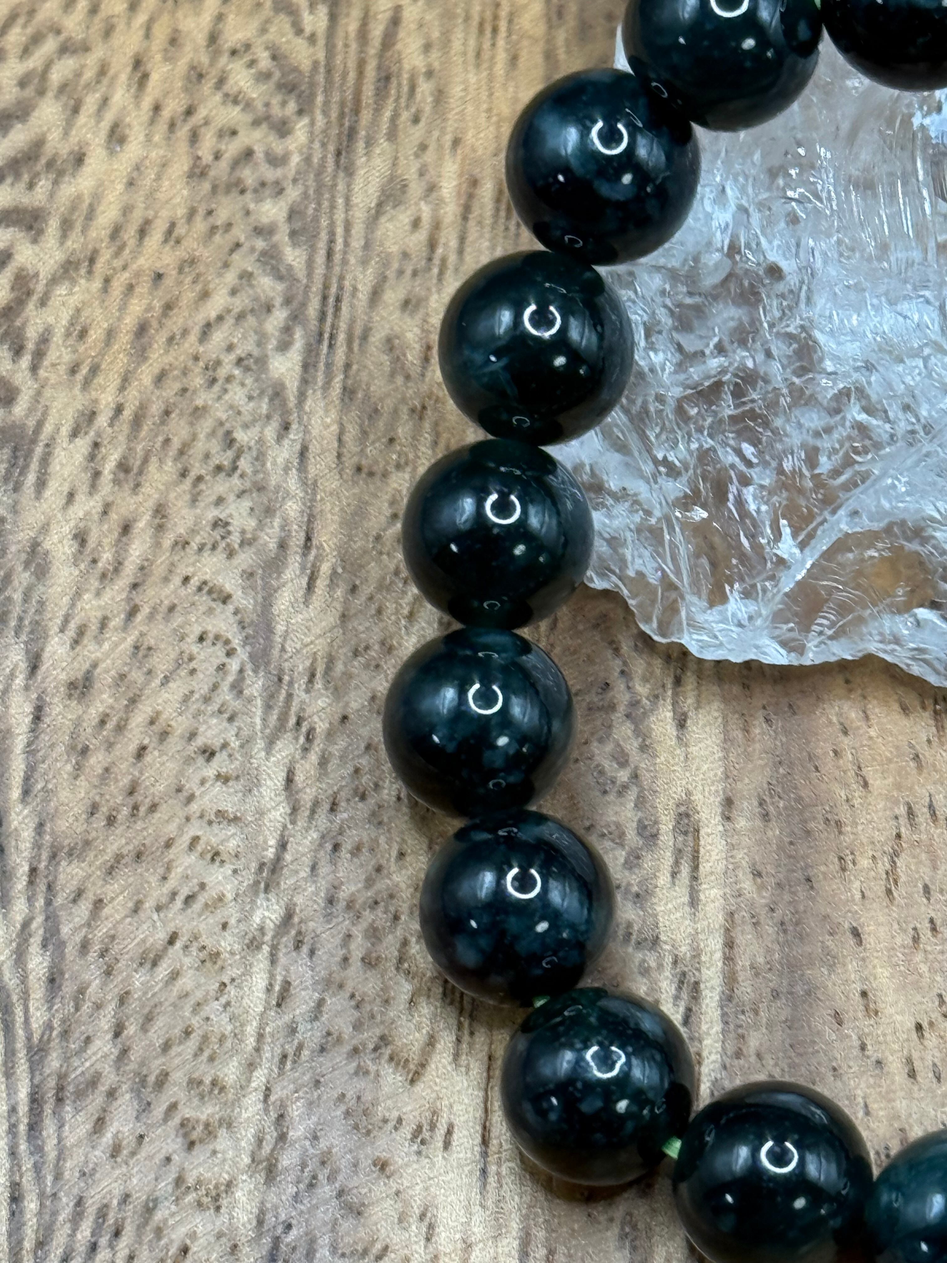 このストーンは、独特の黒緑色が特徴で、光を受けることで神秘的な輝きを放ち、見る者に穏やかなエネルギーを届けます。この豊かな濃淡は、心の安らぎを促し、日常生活において幸運と豊かさをもたらすサポートをいたします。