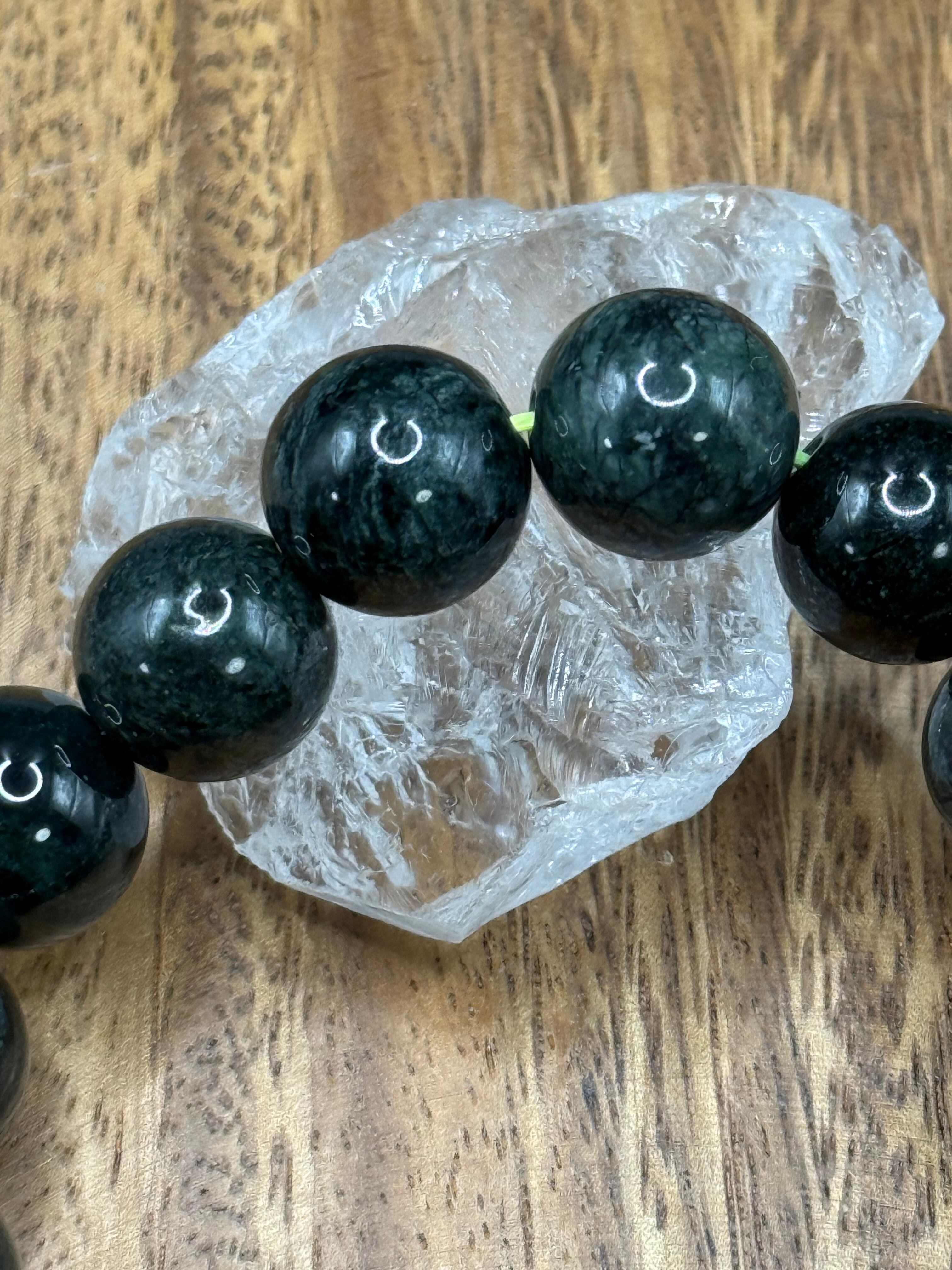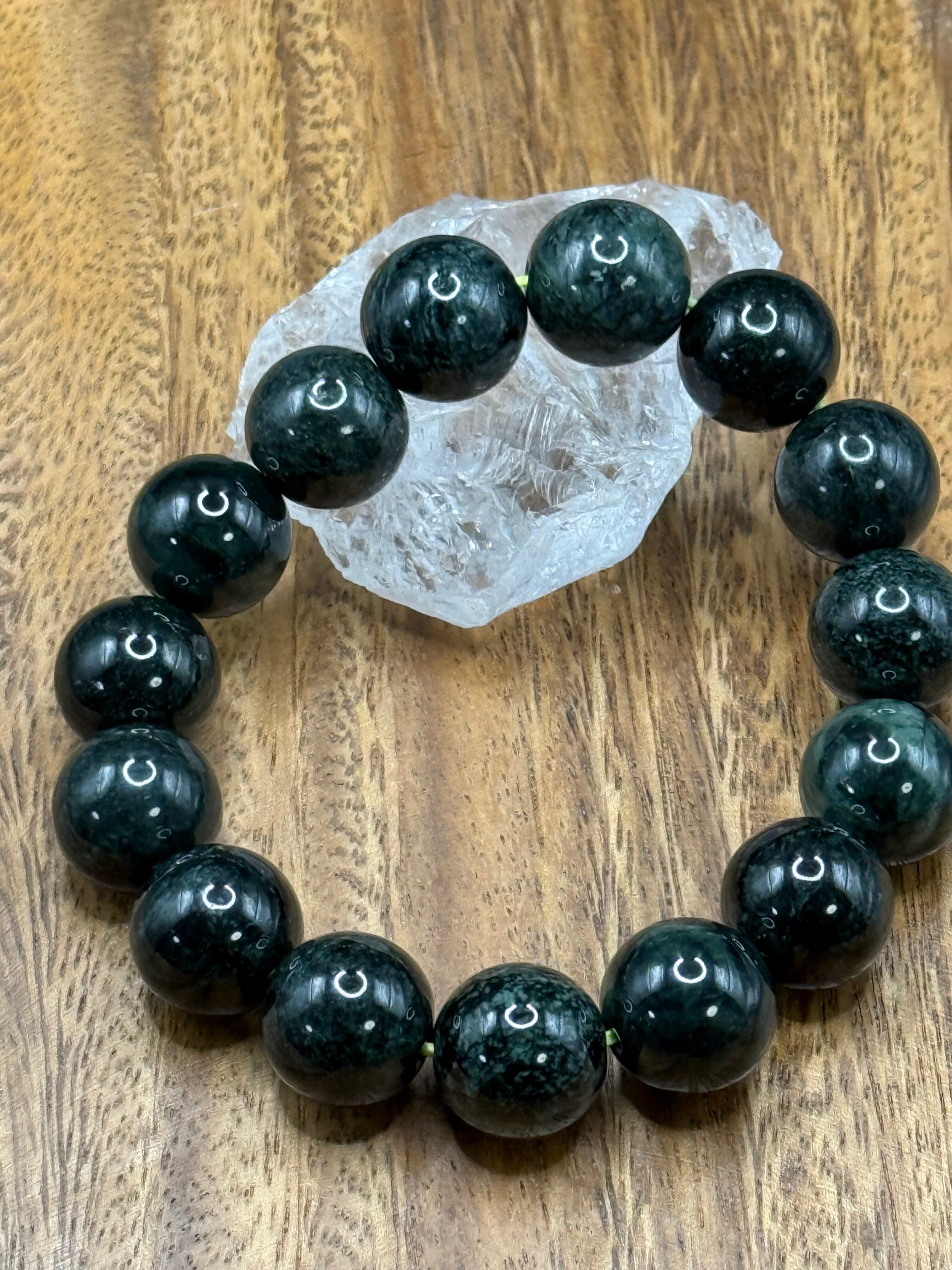 このストーンは、14.5mmの滑らかな玉の形状で、深い黒緑色が特徴的です。光を受けることで発せられる神秘的な輝きは、周囲に穏やかなエネルギーを届け、心の安らぎを促します。この豊かな色合いが、日常生活において幸運と豊かさのサポートを実感させてくれることでしょう。