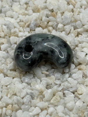 この勾玉は、優雅に流れる滑らかなフォルムと豊かな色合いが特徴で、まるで自然が生み出した芸術作品のような独自の一品です。光を受けることで柔らかな輝きが広がり、周囲に穏やかなエネルギーを届けてくれます。これにより、心に安らぎを感じ、日常生活に素敵な彩りを添えることが期待できるでしょう。この特異な形状は、あなた自身の個性を反映し、思考を豊かにする手助けをいたします。