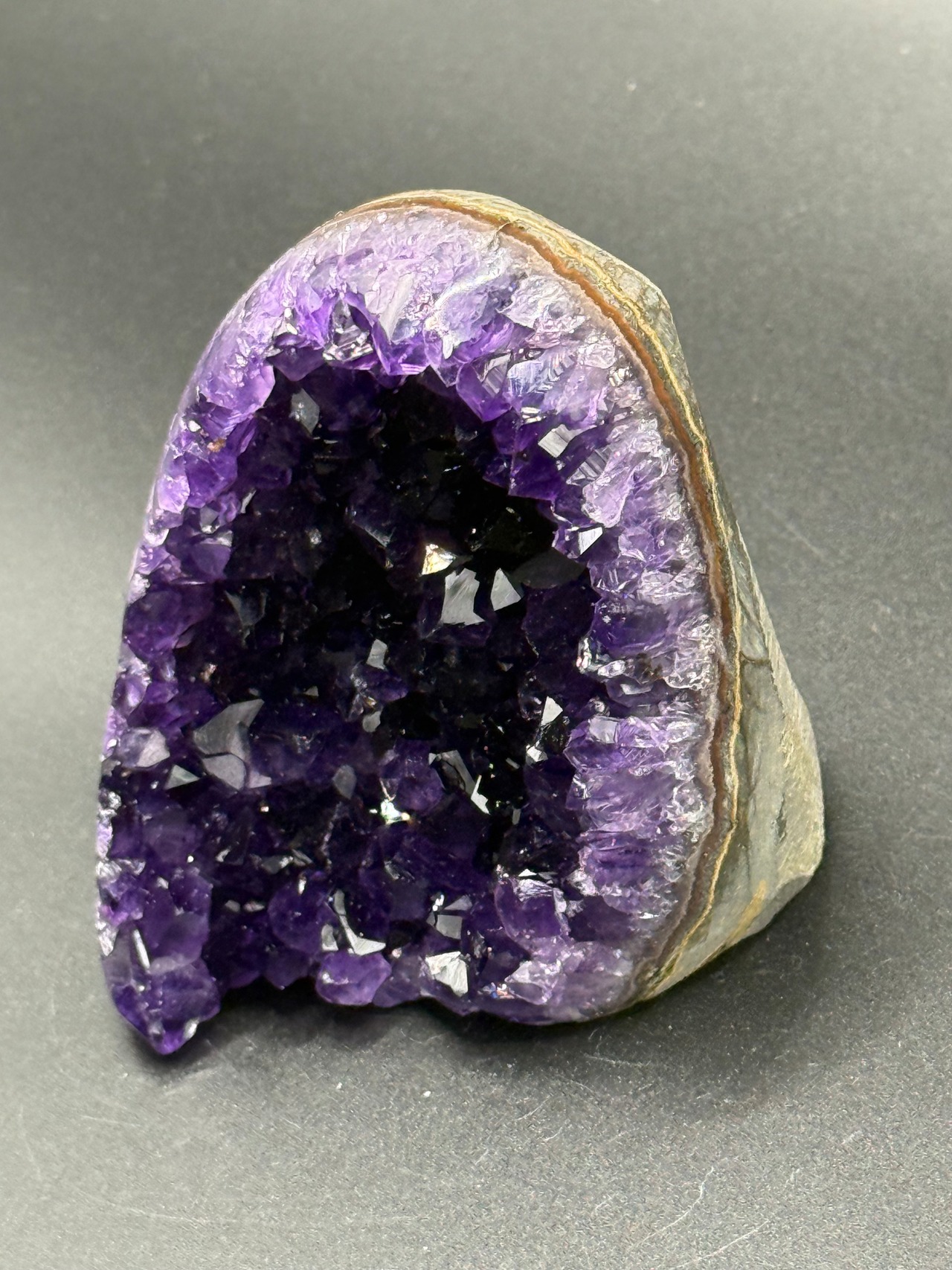 こちらは、**ウルグアイ産のアメジスト(濃い紫色と驚異の透明度を持つ高品質な天然石)**です。