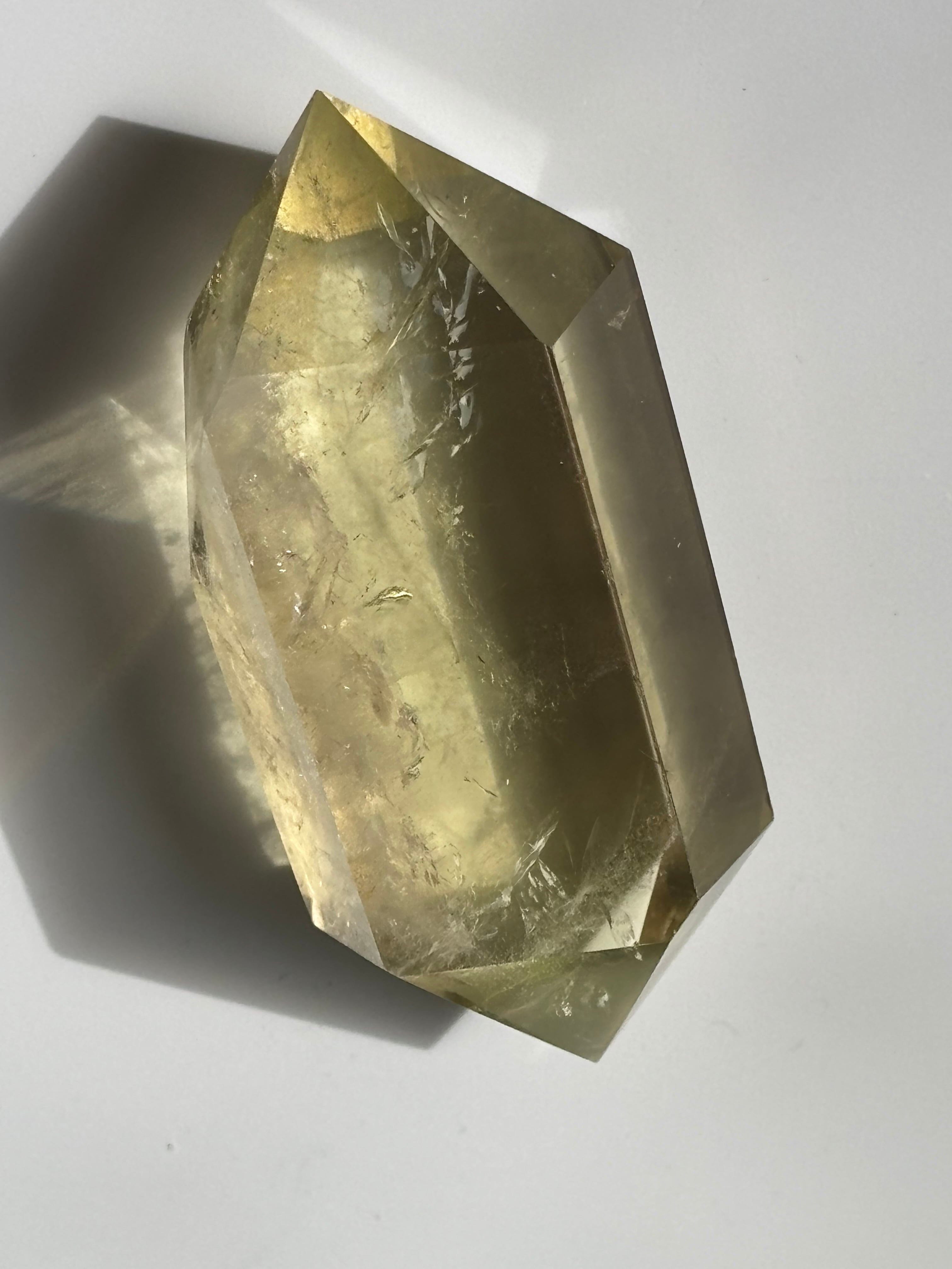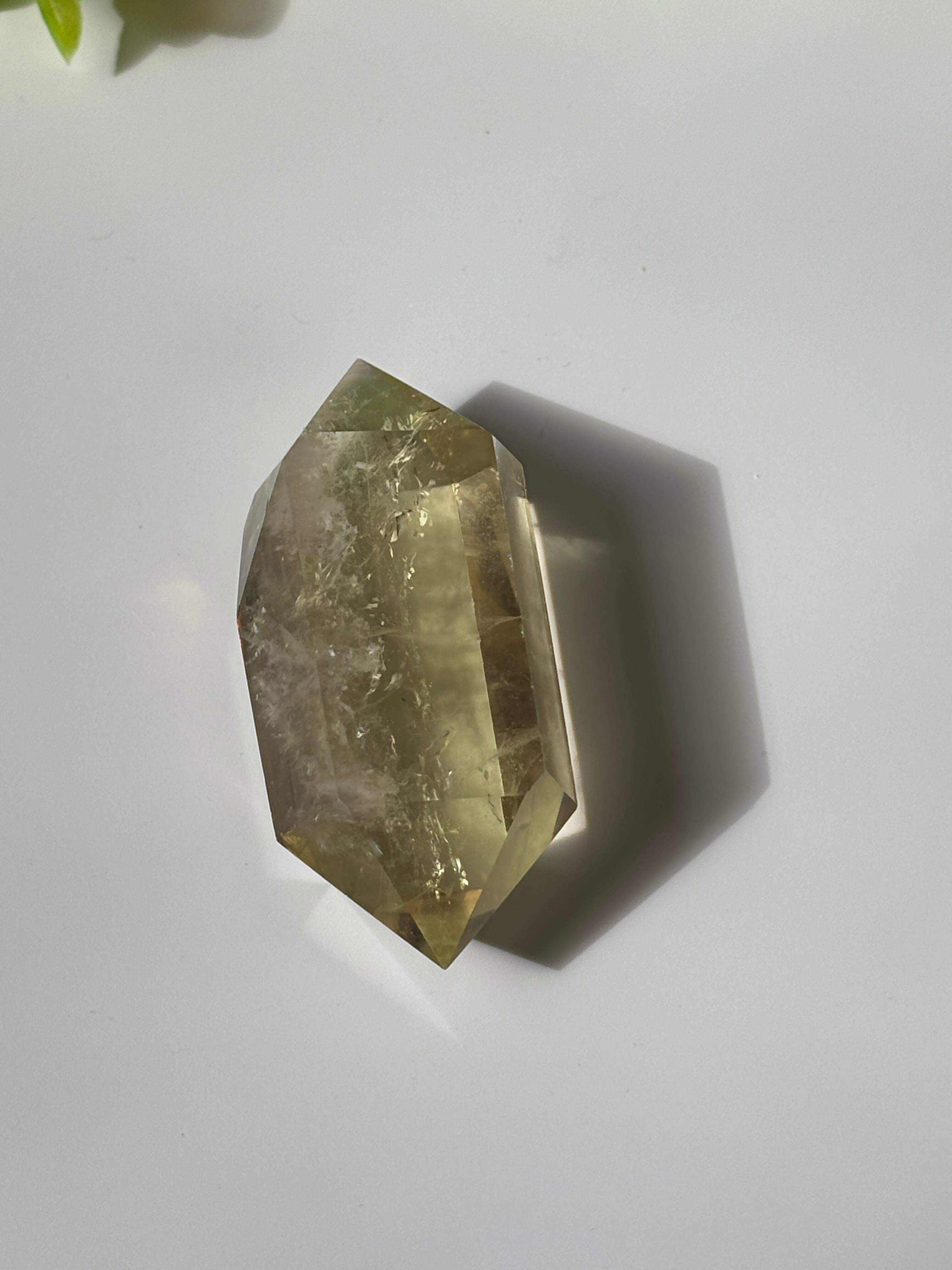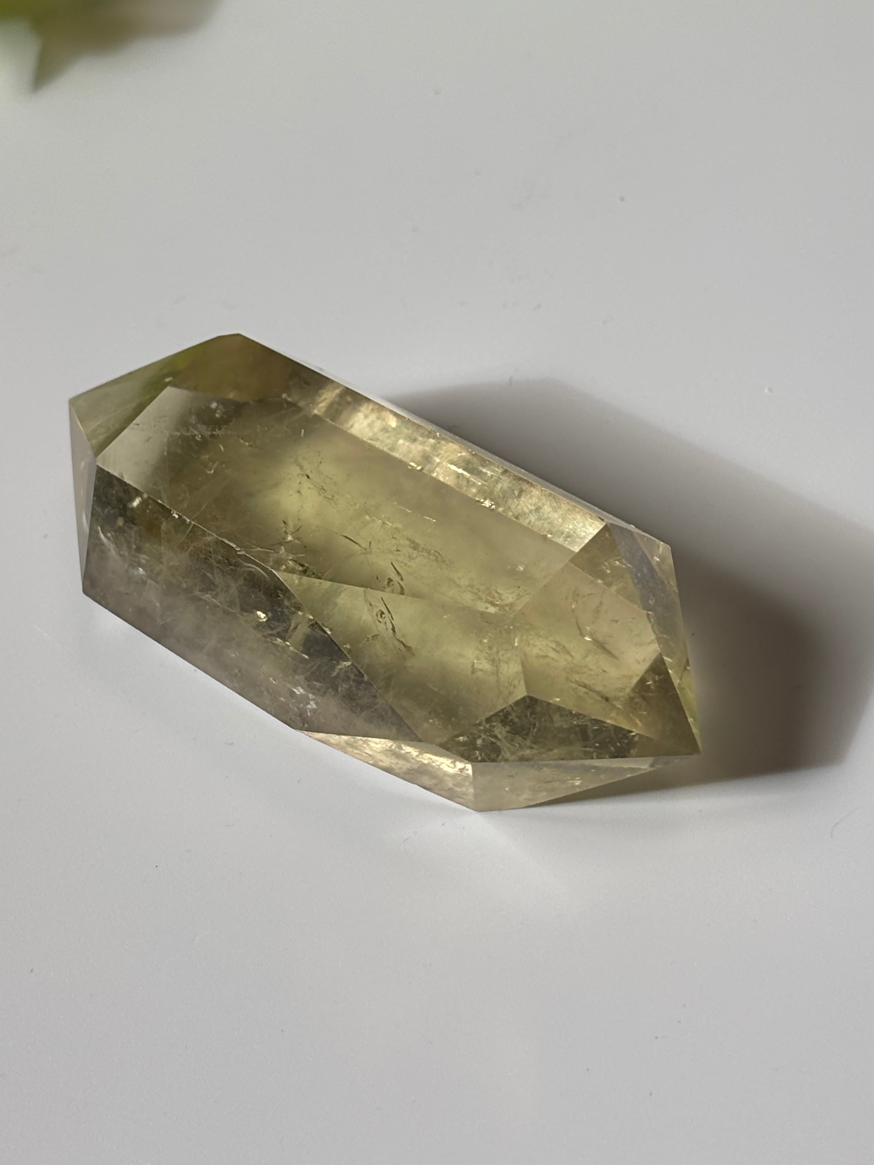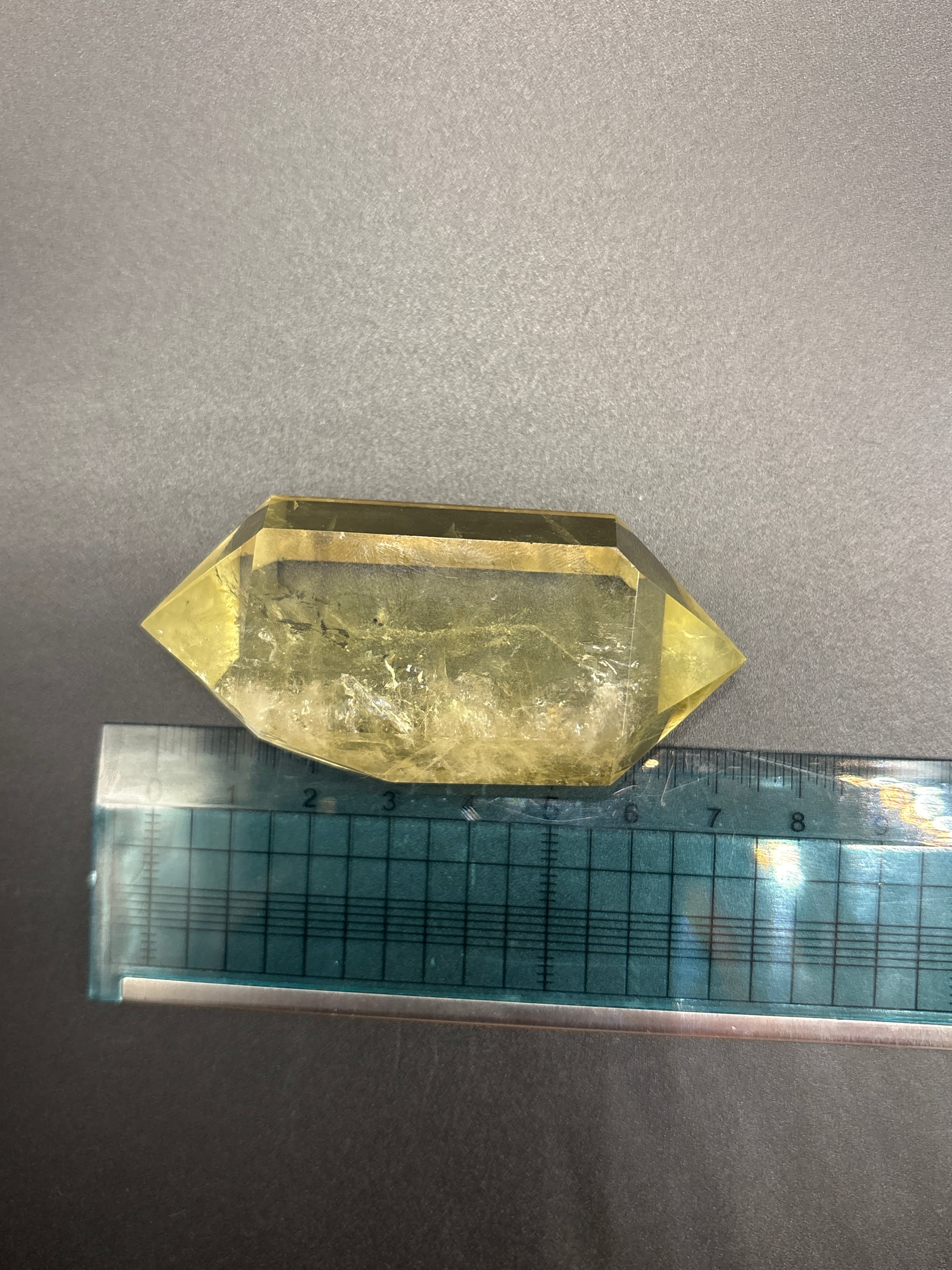 こちらのシトリンは 美しい六角形ポイントに、アイリスが入り、独自の輝きを放っています。シトリンは「富を呼ぶ石」として知られ、ポジティブなエネルギーをもたらすことで人気があります。自信や意欲を高め、財運をアップさせる力を持つこの石は、日々の生活をより豊かにするお守りとして最適です。