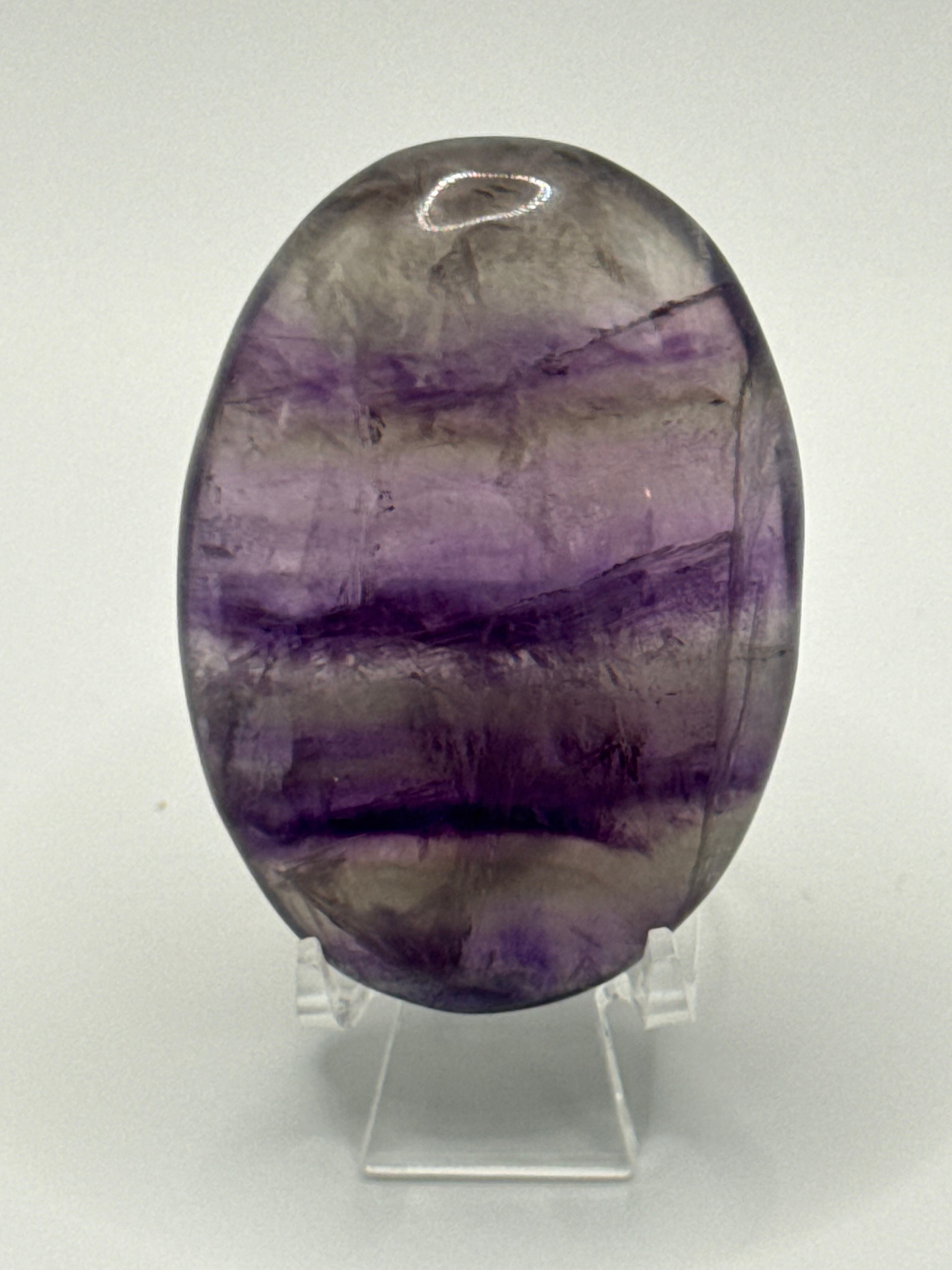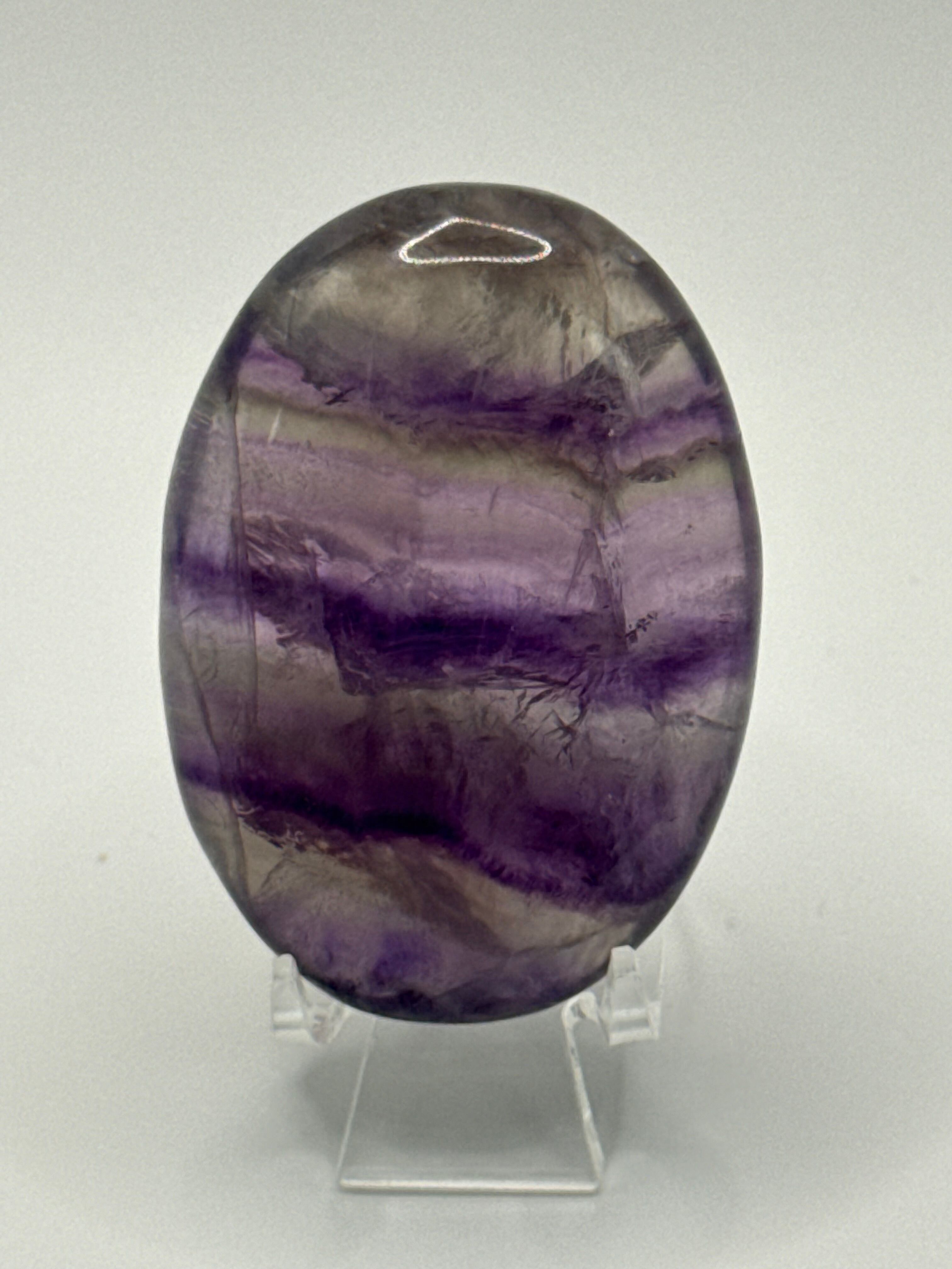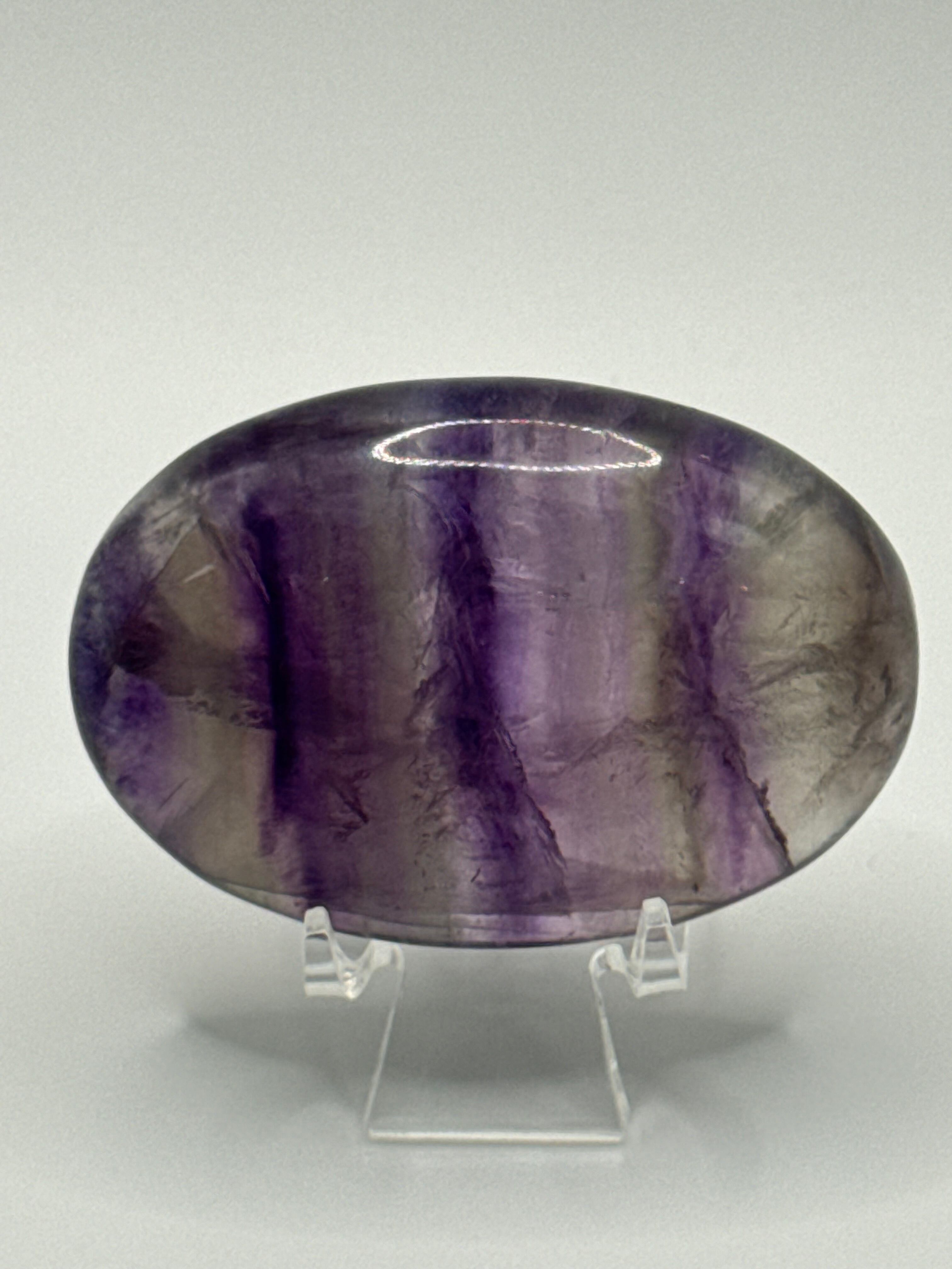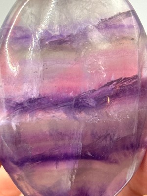 こちらのアイリスフローライトタンブルは、優雅な紫色と美しい磨きが施されており、持つ人に穏やかなエネルギーを提供します。この石は、心の安定をもたらし、ストレスや不安を軽減する効果が期待できる特別な存在です。日常生活においても、自分自身を見つめ直すためのサポートとなり、内面的な成長を促進します。