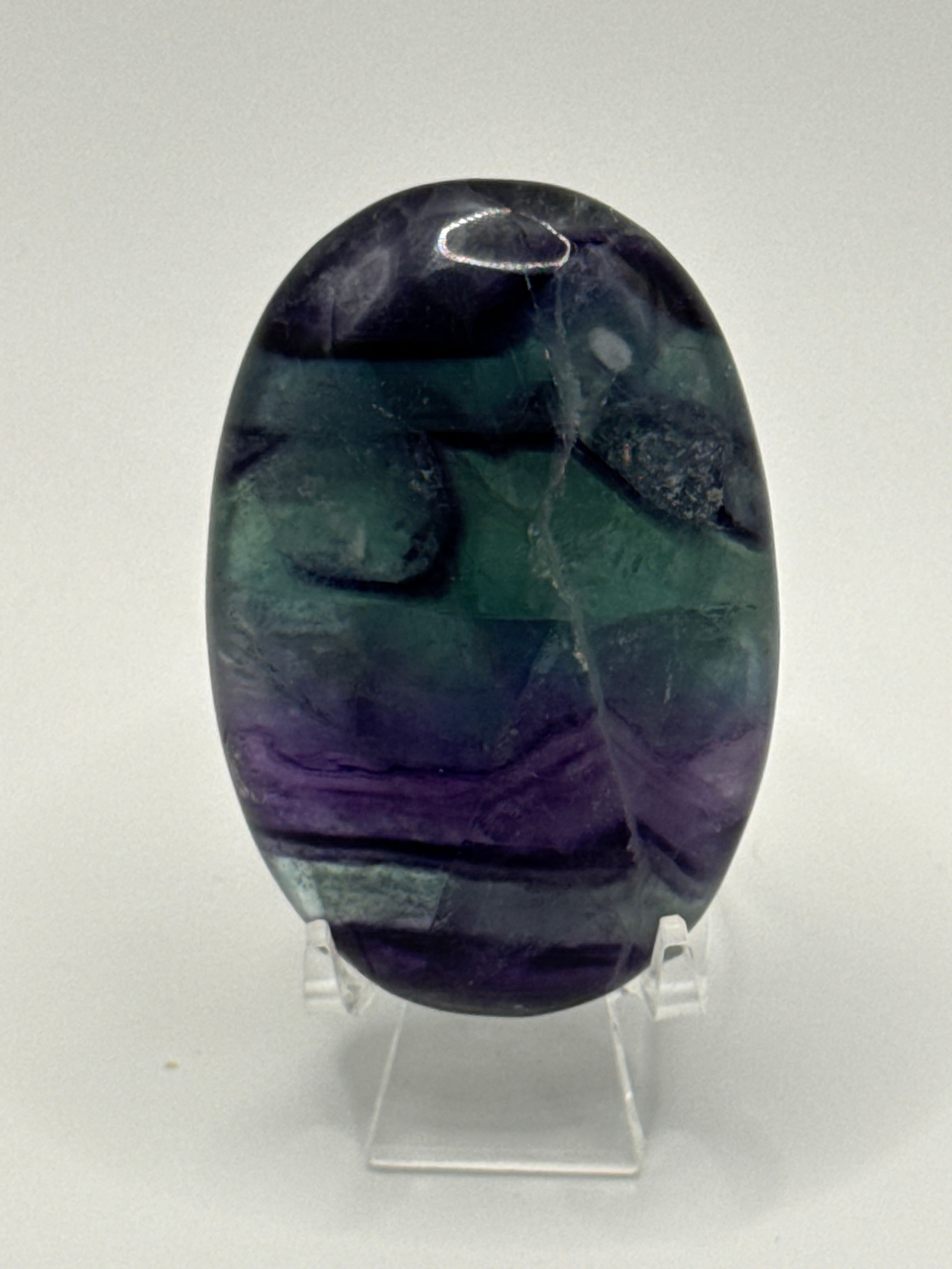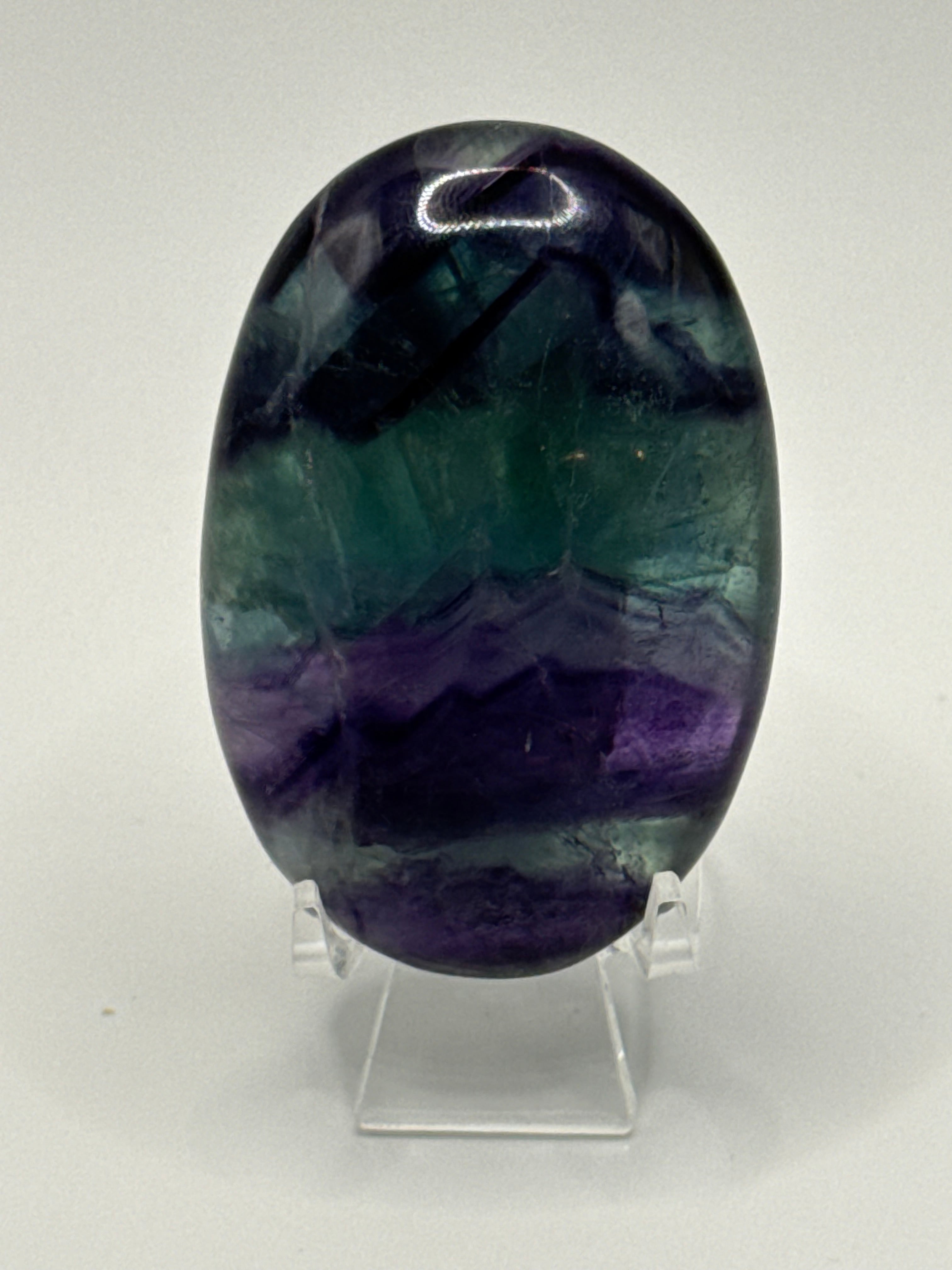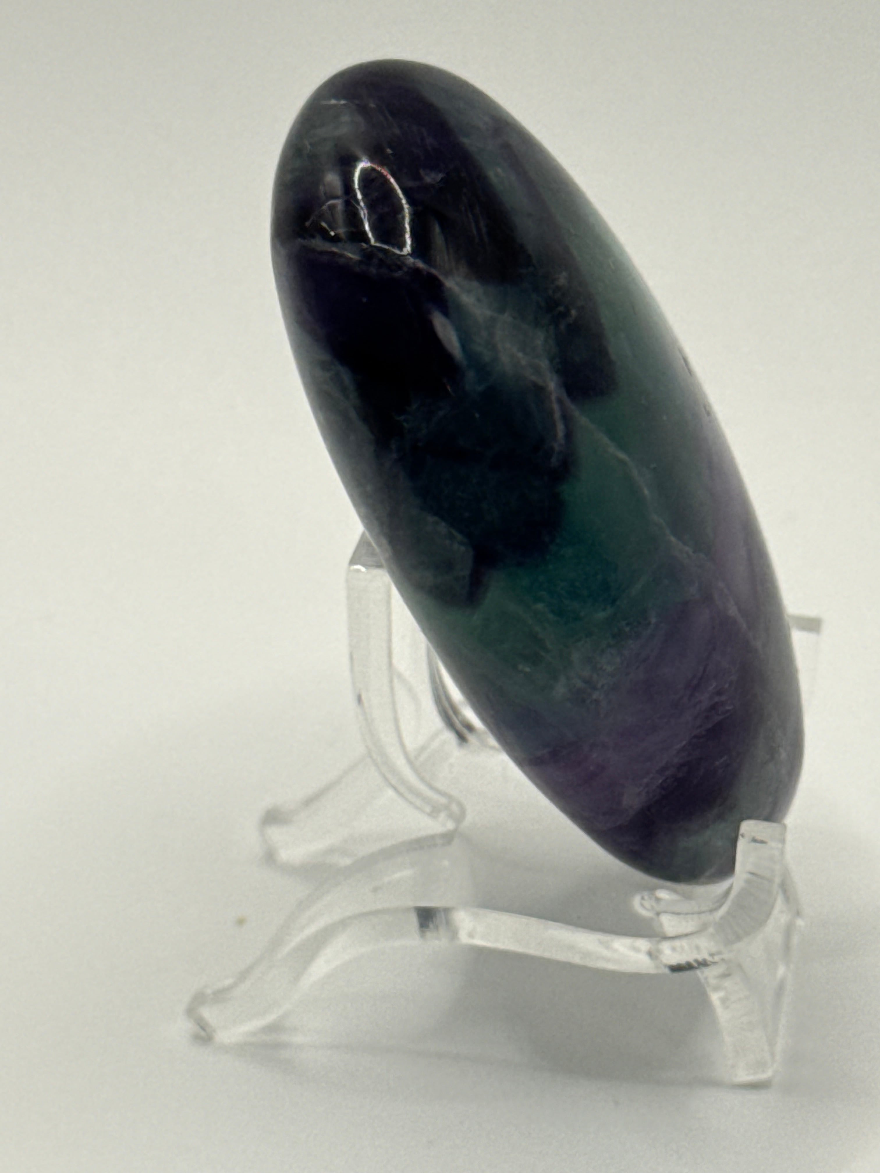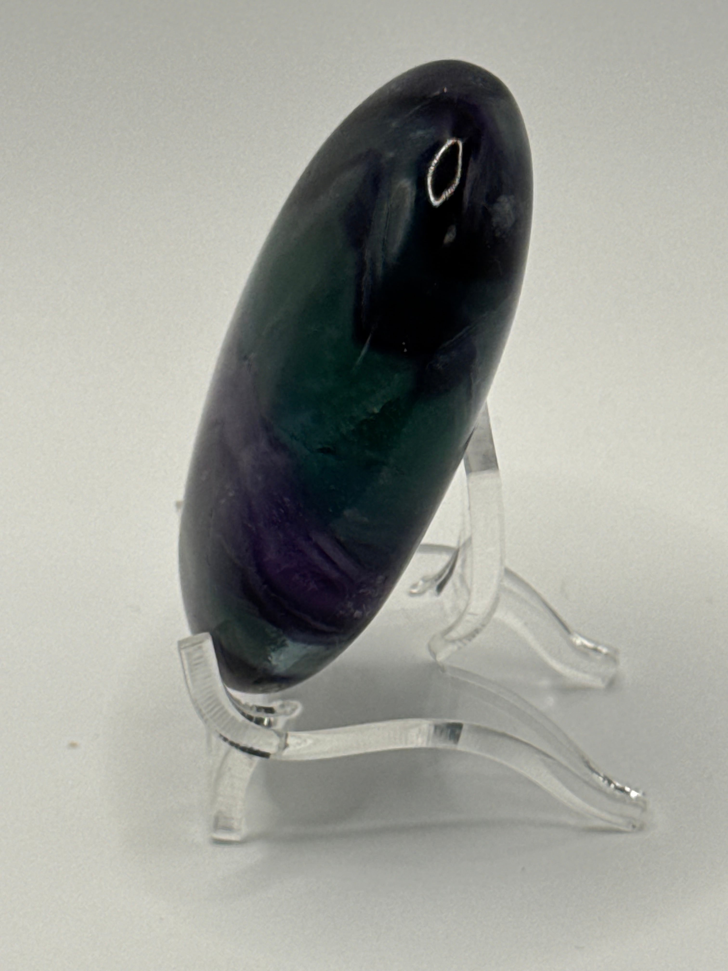 こちらのアイリスフローライトタンブルは、優雅な紫色と美しい磨きが施されており、持つ人に穏やかなエネルギーを提供します。この石は、心の安定をもたらし、ストレスや不安を軽減する効果が期待できる特別な存在です。日常生活においても、自分自身を見つめ直すためのサポートとなり、内面的な成長を促進します。