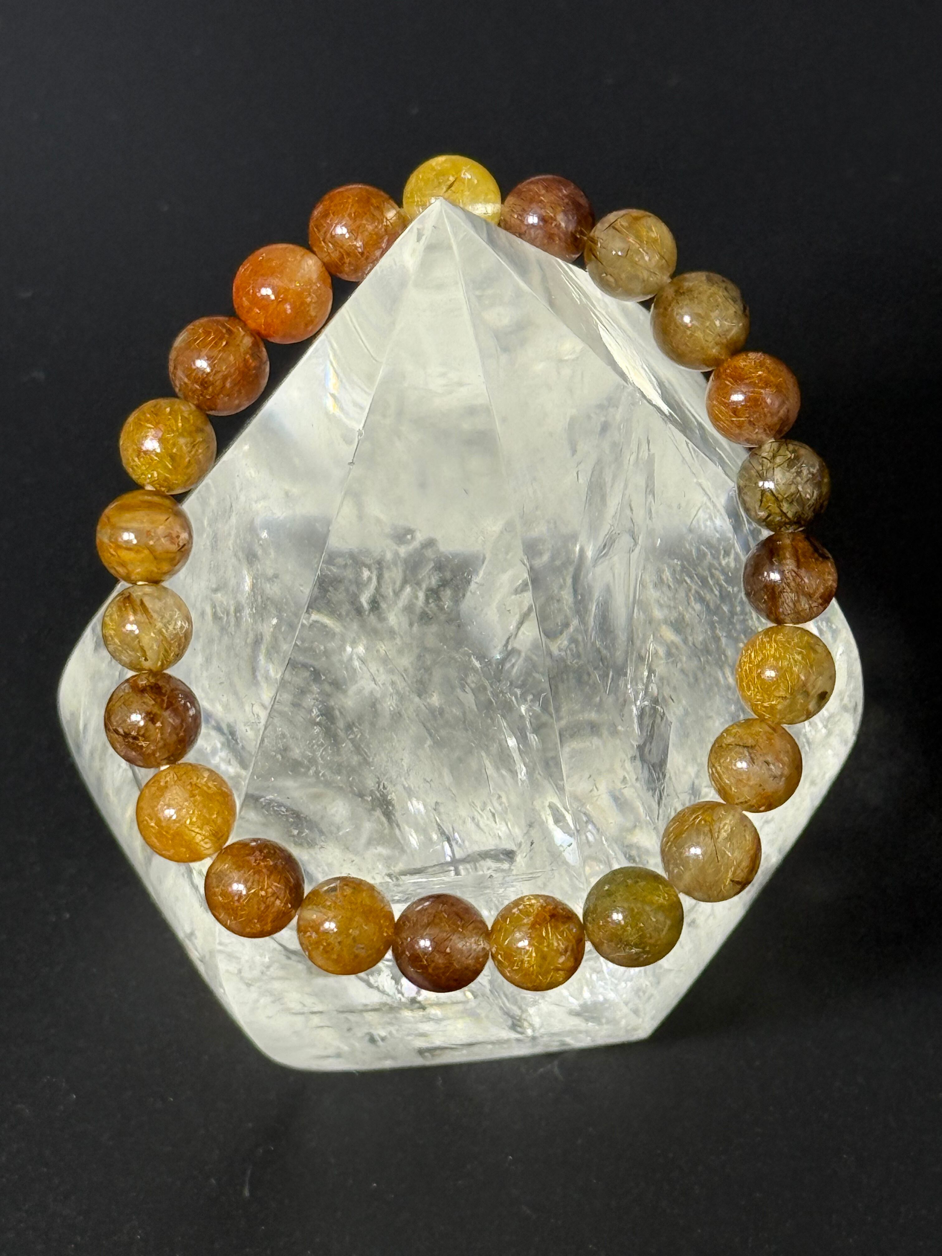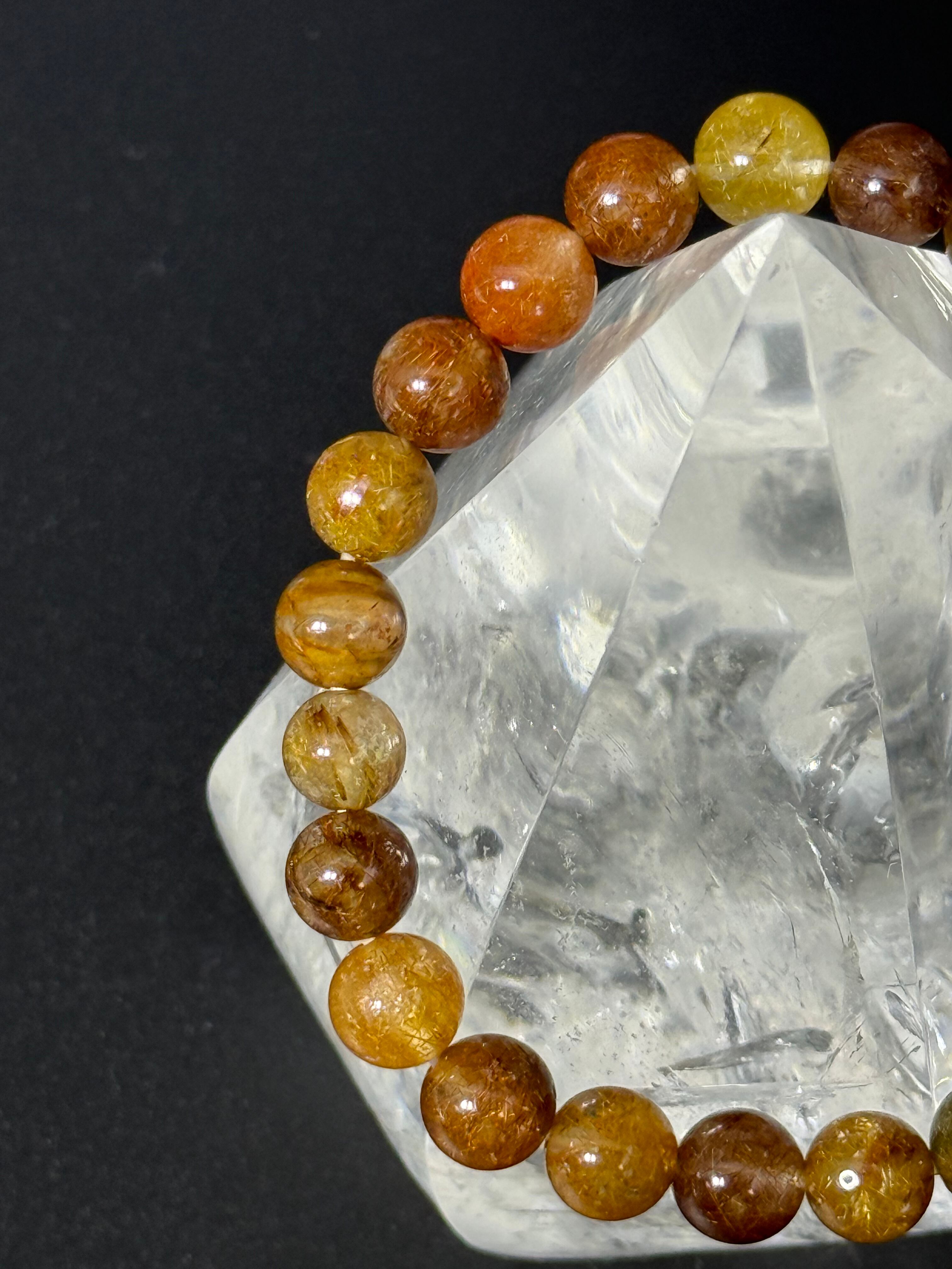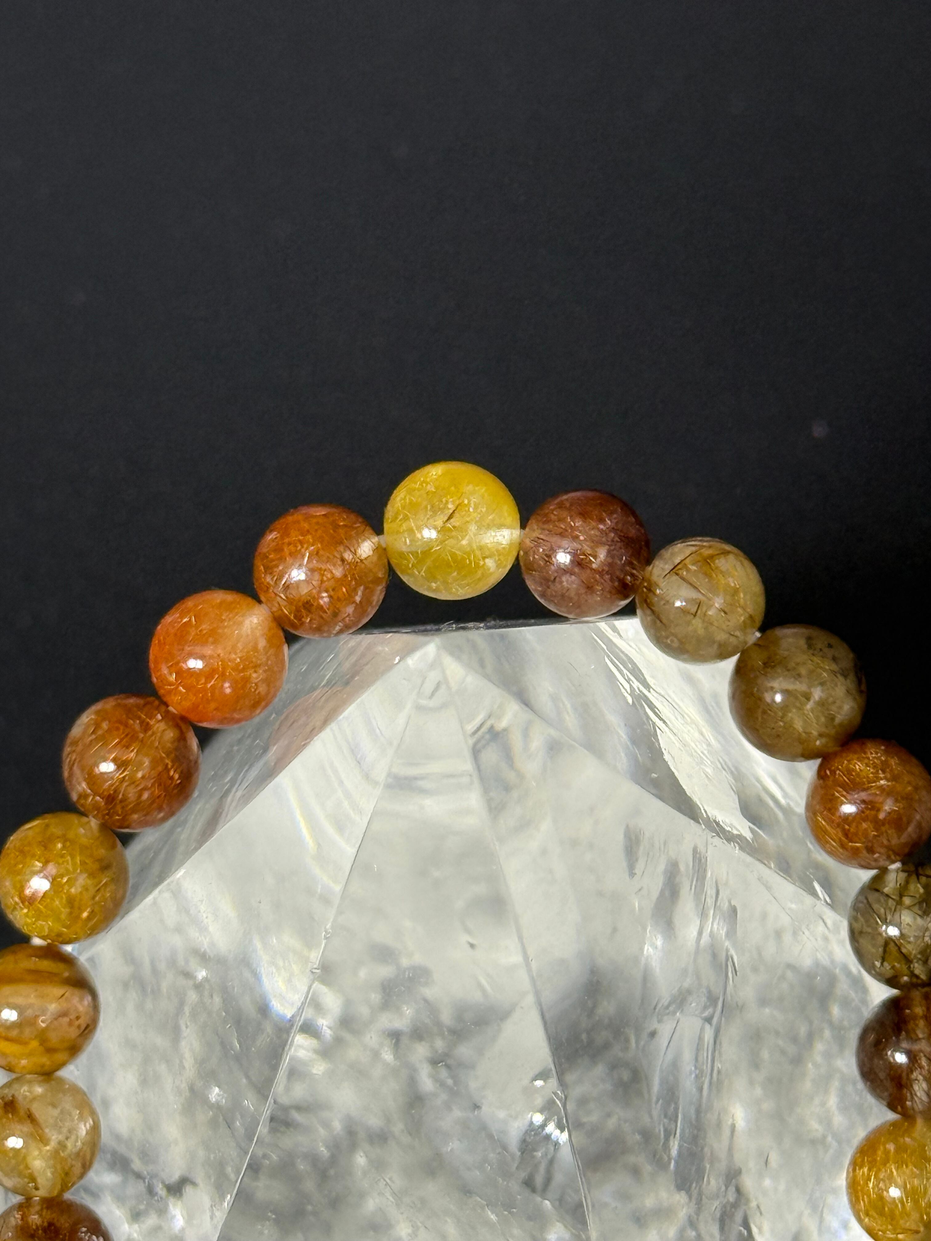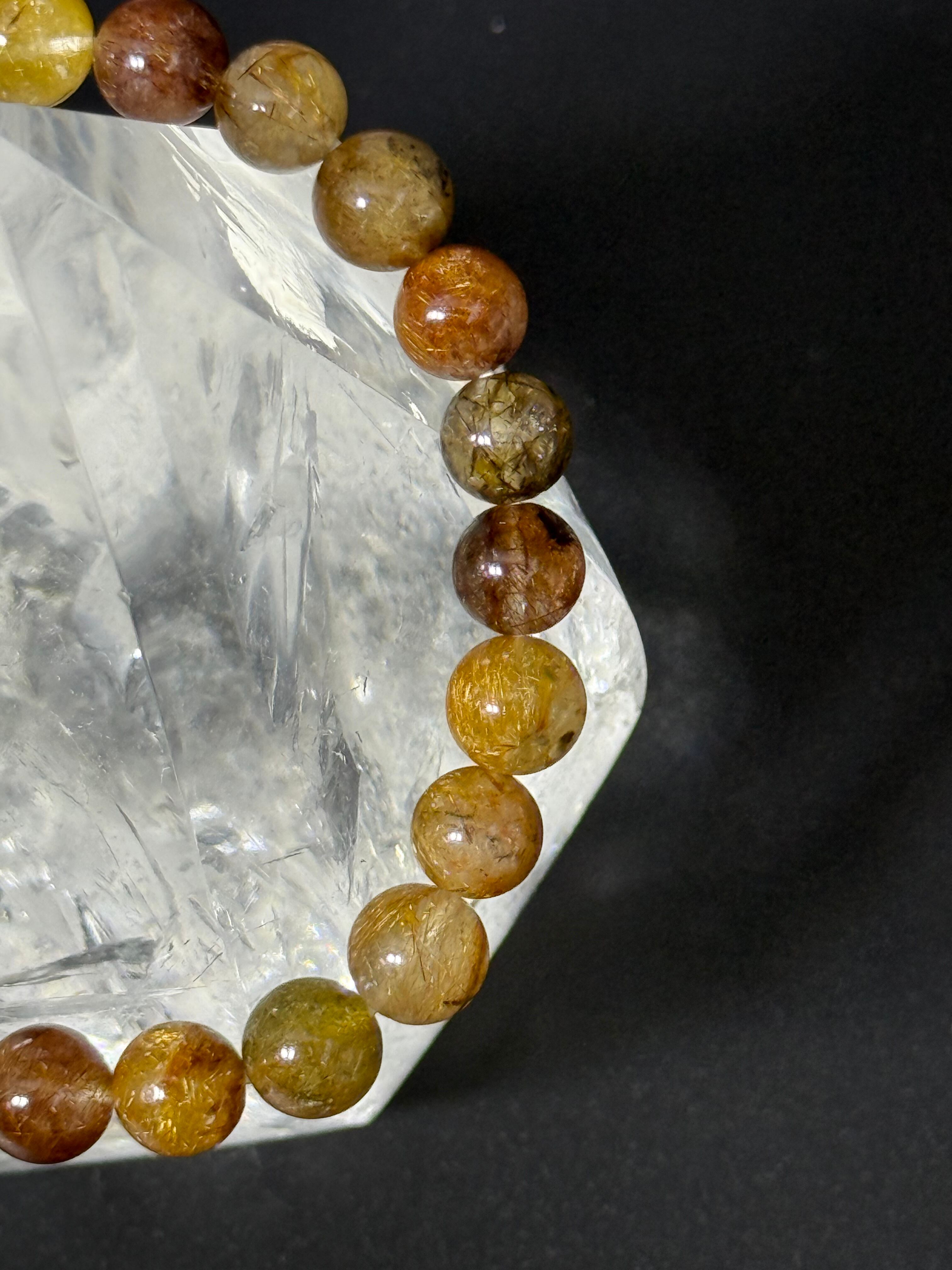 こちらのミックスルチルクォーツブレスレットは、レッド・ブラックのルチルが豊富に含まれている高品質な天然水晶を使用しています。