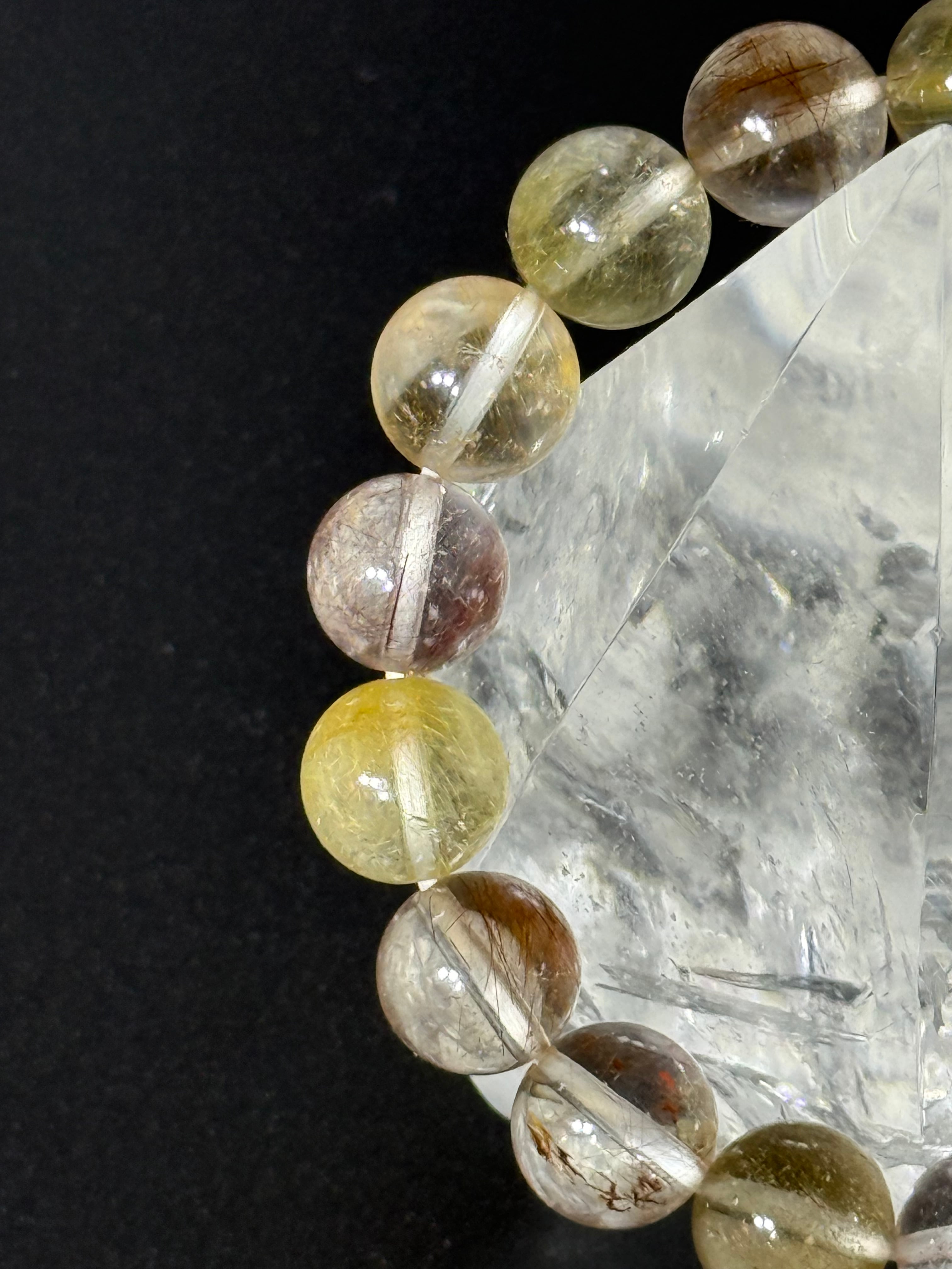 このミックスルチルクォーツブレスレットは、レッド・ブラックのルチルが豊富に含まれている高品質な天然水晶を使用しています。