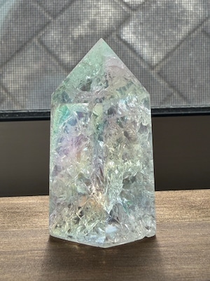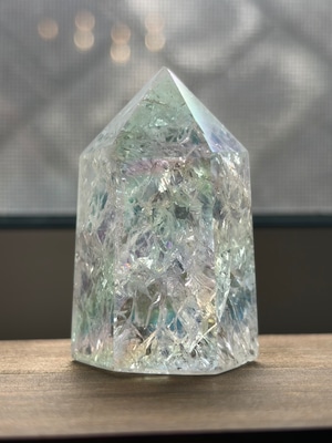 こちらのエンジェルオーラ アイリスクラッククォーツは、澄んだオーラを持つ美しいクラッククォーツで、まるで天使のような優しい色合いが特徴です。その独特な模様と透き通った輝きが、どんなシーンでも心を癒し、特別な存在感を引き立てます。