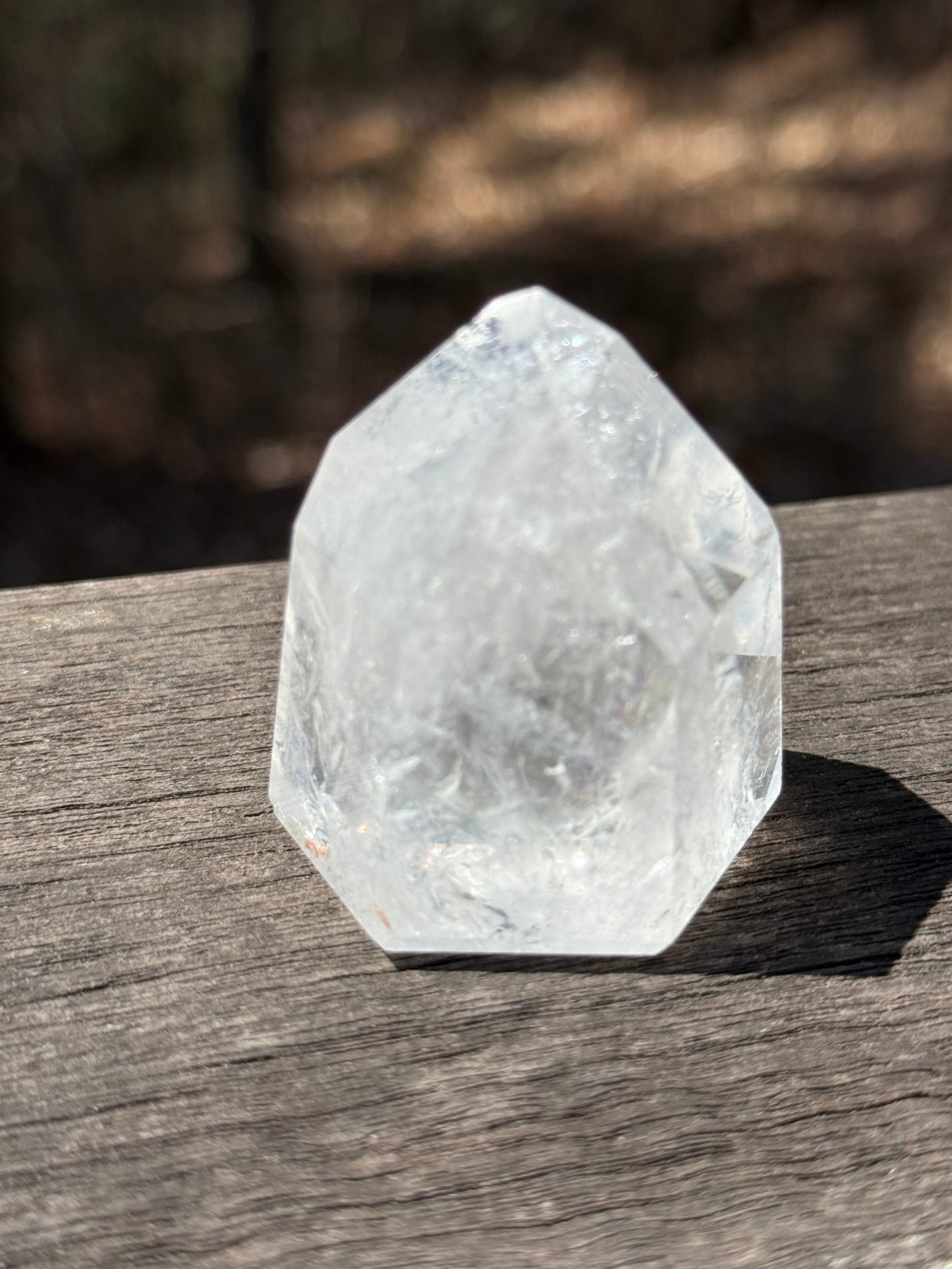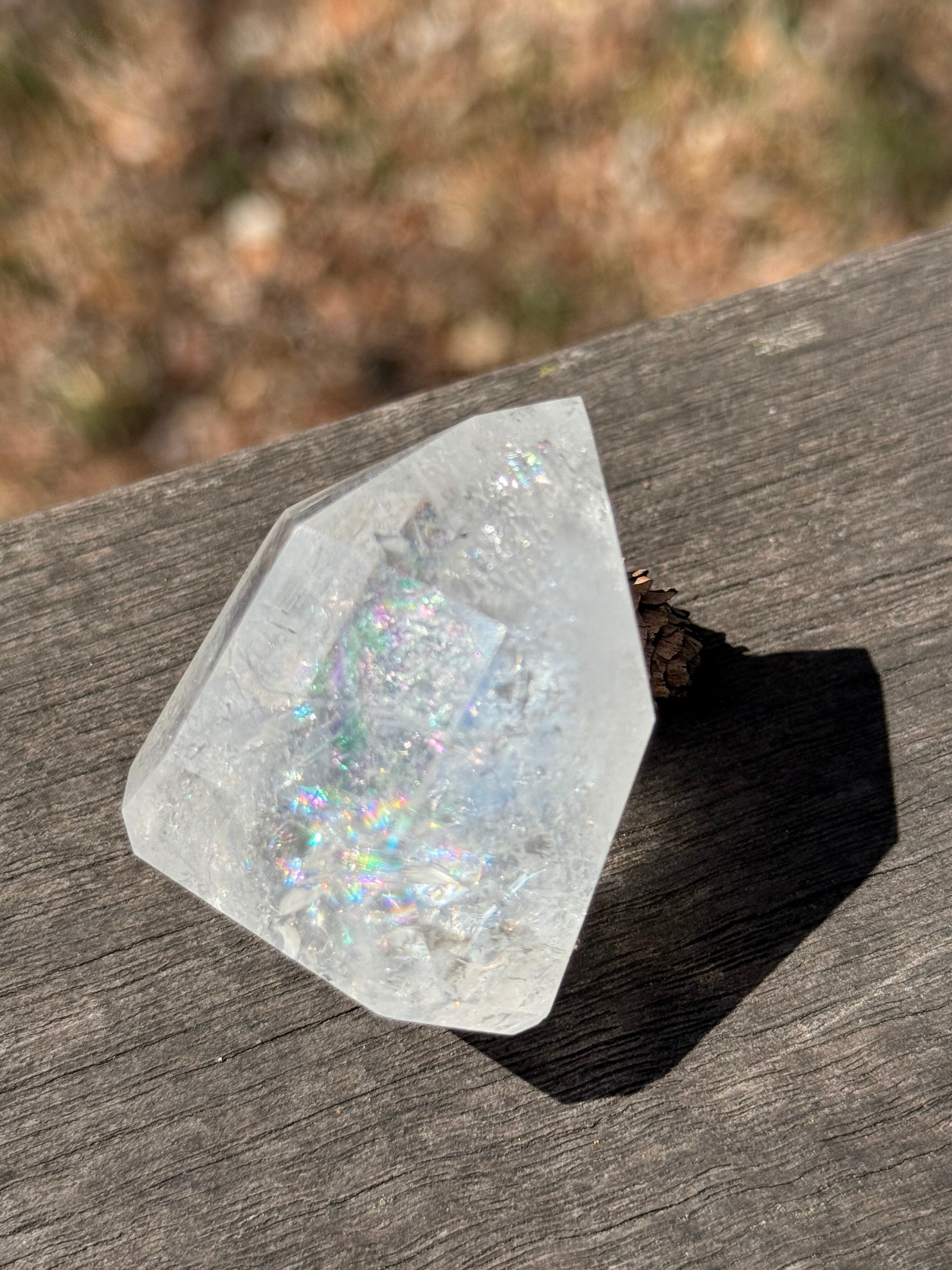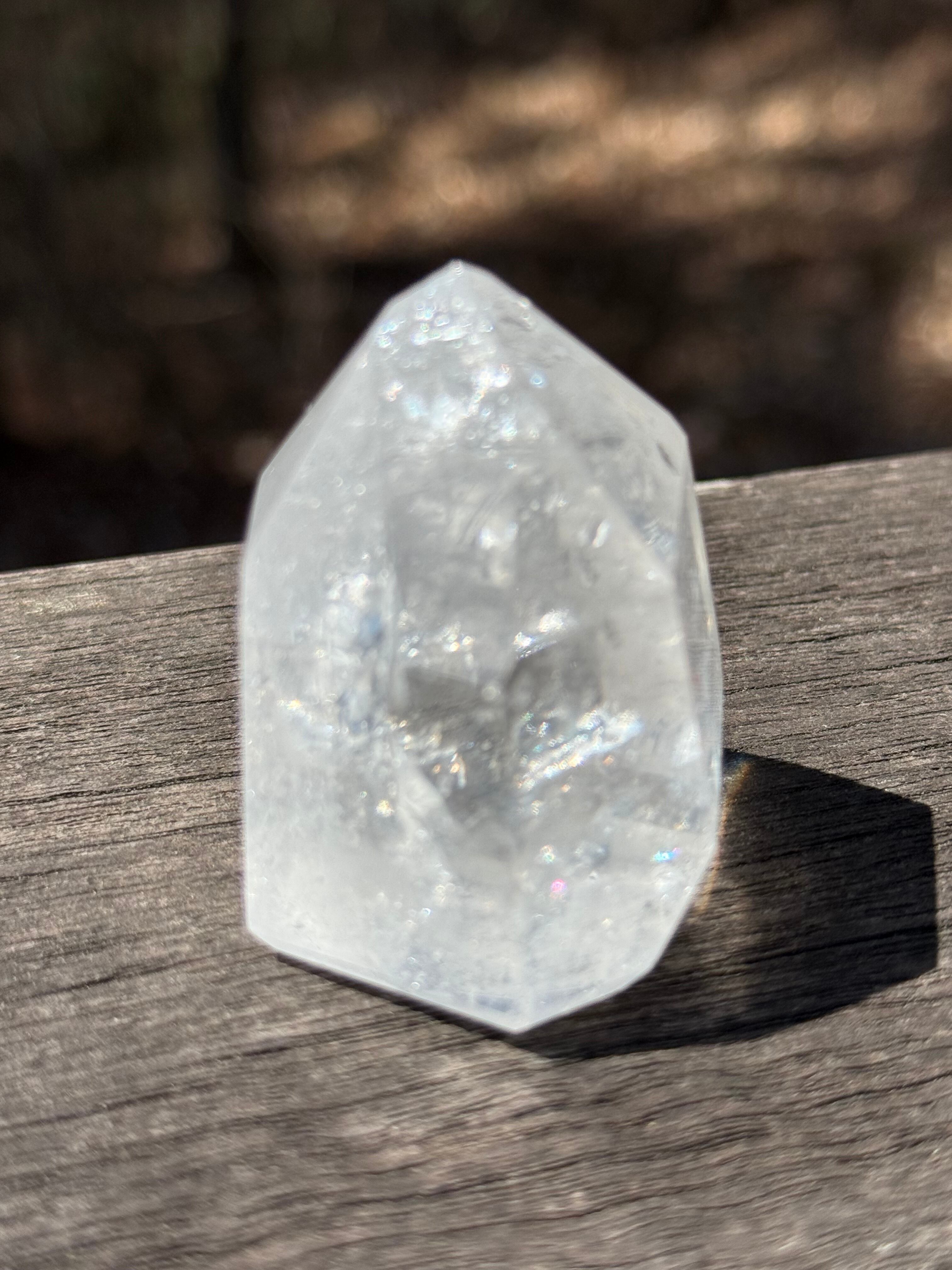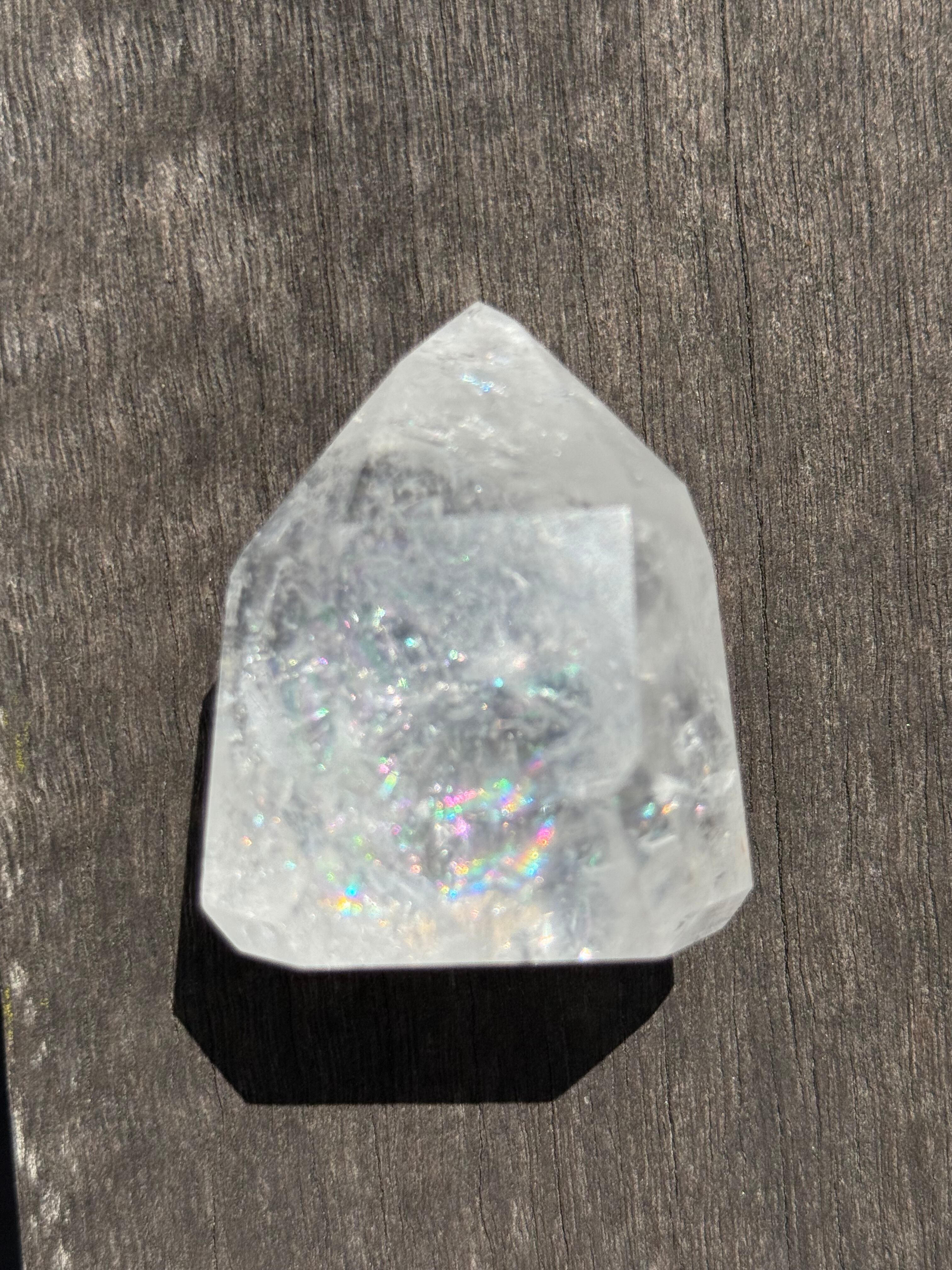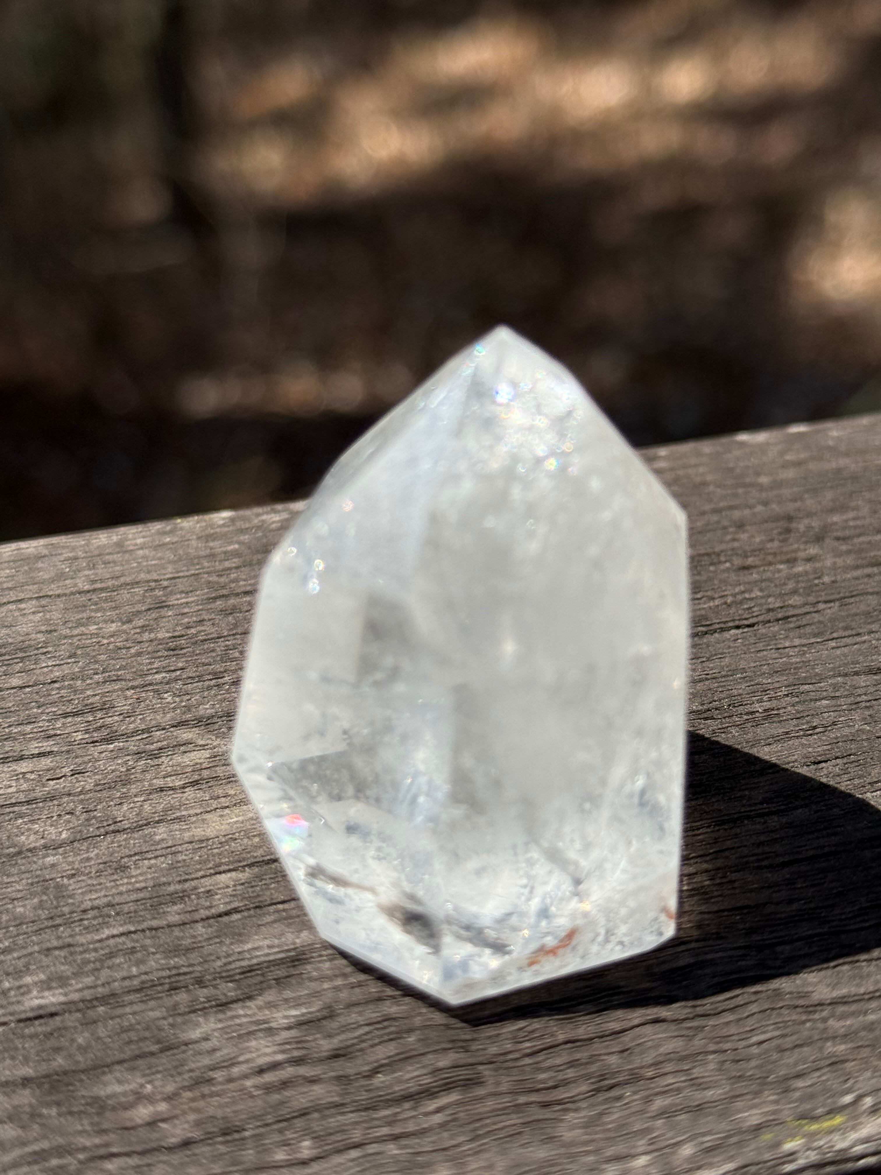 本商品は、トマスゴンサガ産の美しい水晶ポイントです。透明感に優れ、自然の美しさをそのまま感じられる特別な存在となっています。優れたアイリス効果が光の中で魅力を放ち、見ているだけで心を豊かにしてくれるでしょう。
