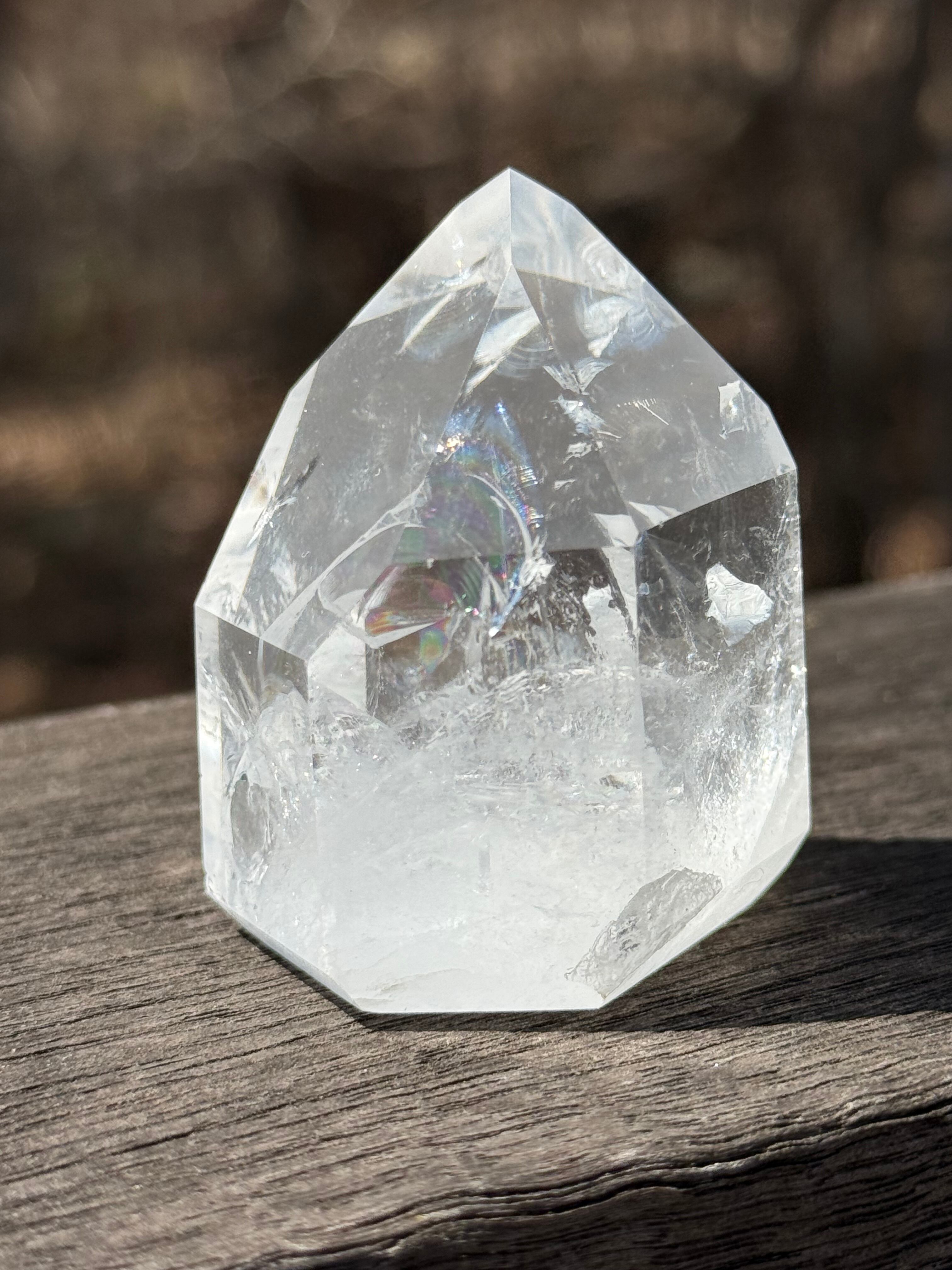 本商品は、トマスゴンサガ産の美しい水晶ポイントです。透明感に優れ、自然の美しさをそのまま感じられる特別な存在となっています。優れたアイリス効果が光の中で魅力を放ち、見ているだけで心を豊かにしてくれるでしょう。
