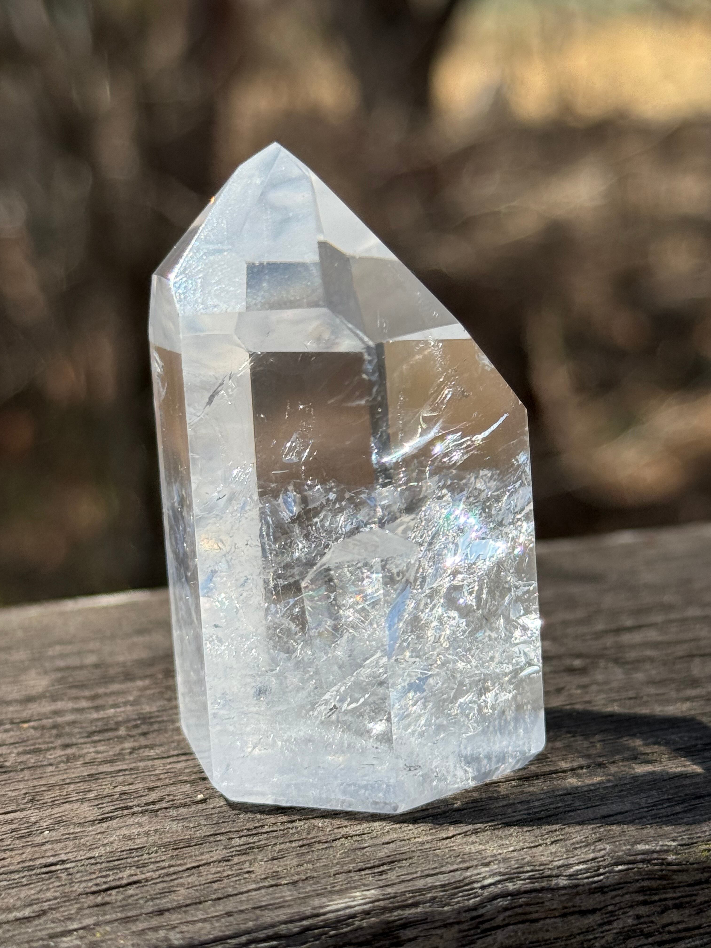 本商品は、トマスゴンサガ産の美しい水晶ポイントです。透明感に優れ、自然の美しさをそのまま感じられる特別な存在となっています。優れたアイリス効果が光の中で魅力を放ち、見ているだけで心を豊かにしてくれるでしょう。