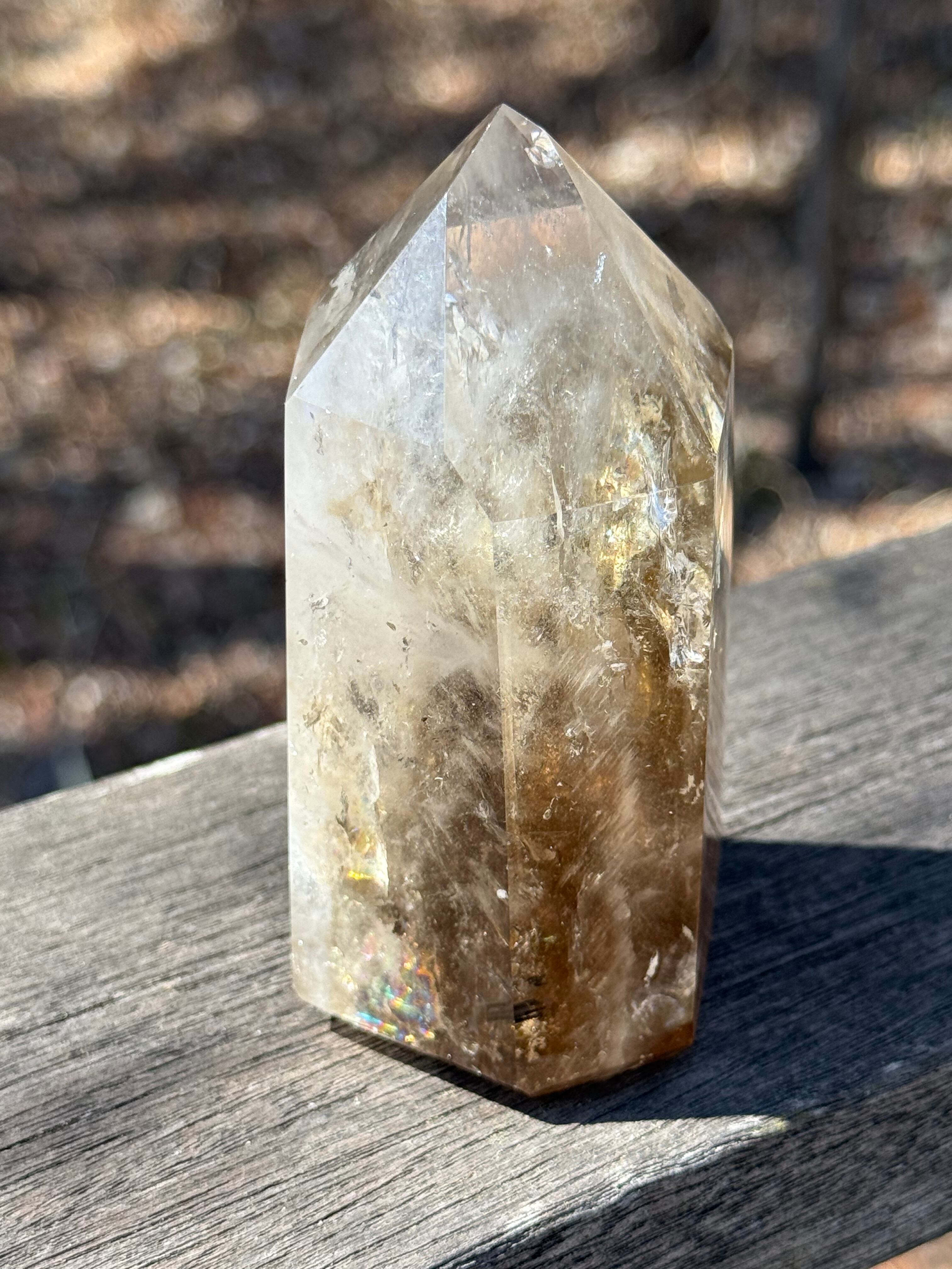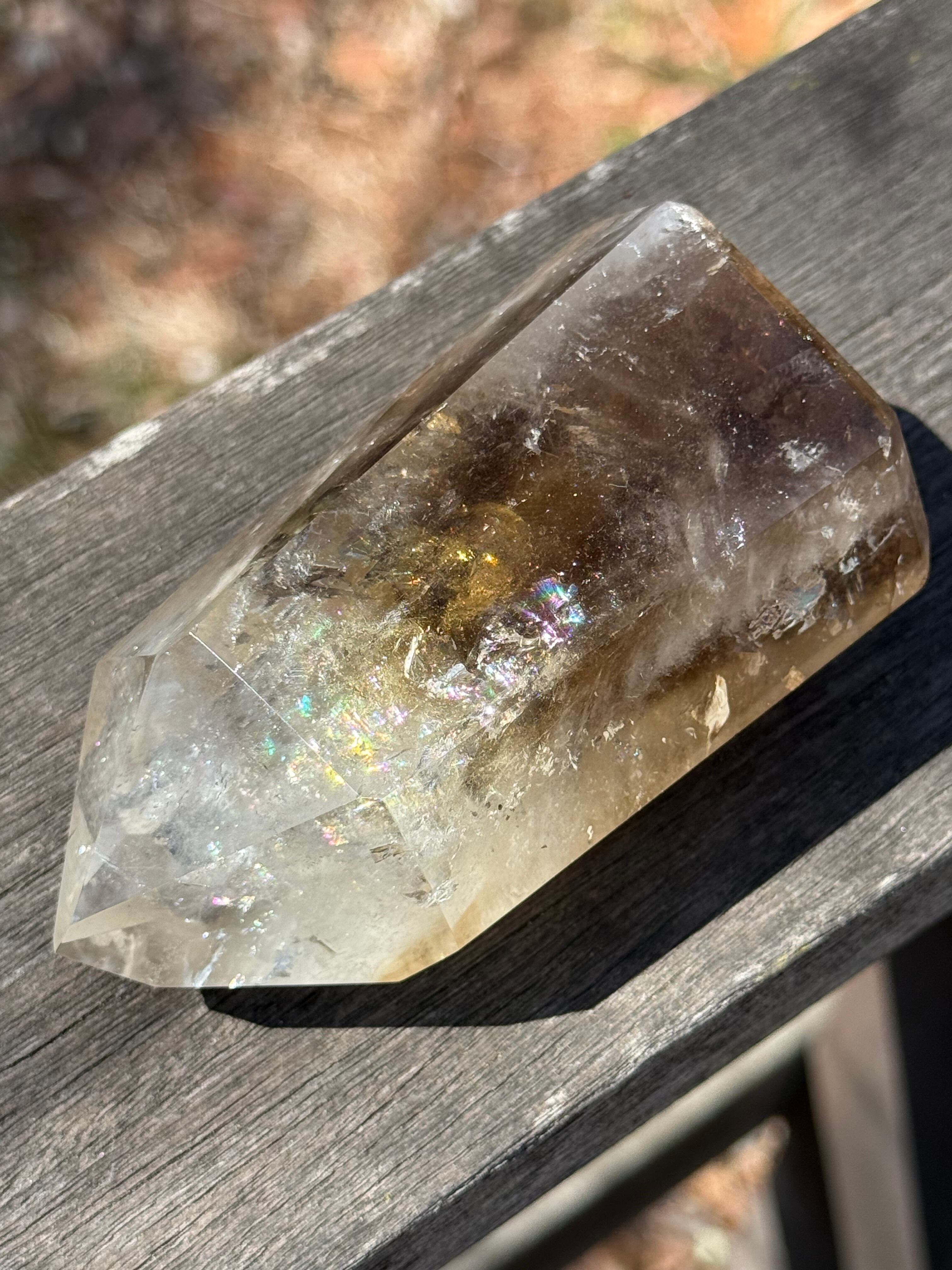 本商品は、トマスゴンサガ産の美しい水晶ポイントです。透明感に優れ、自然の美しさをそのまま感じられる特別な存在となっています。優れたアイリス効果が光の中で魅力を放ち、見ているだけで心を豊かにしてくれるでしょう。