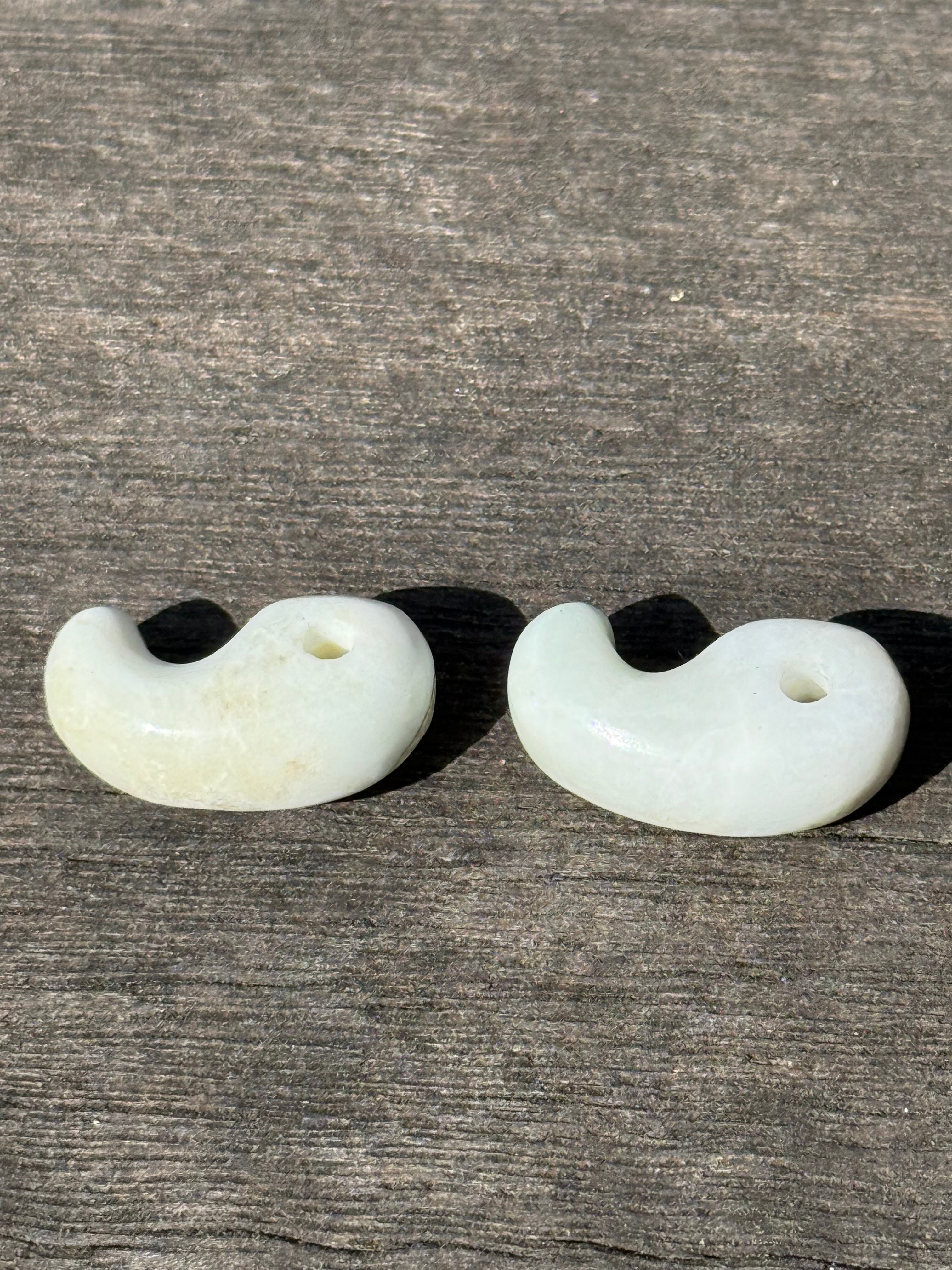 糸魚川翡翠 〜勾玉〜 白地に茶緑