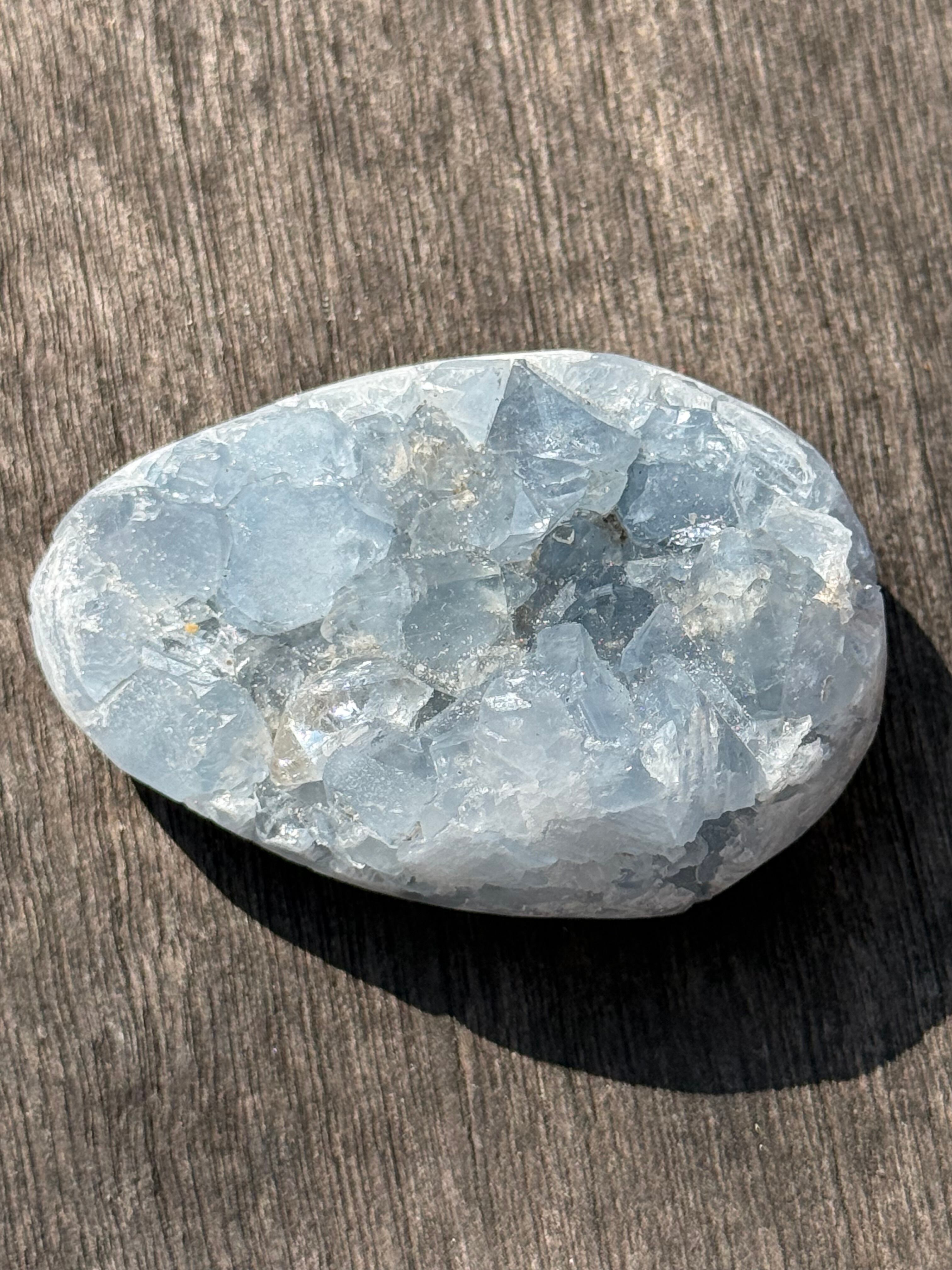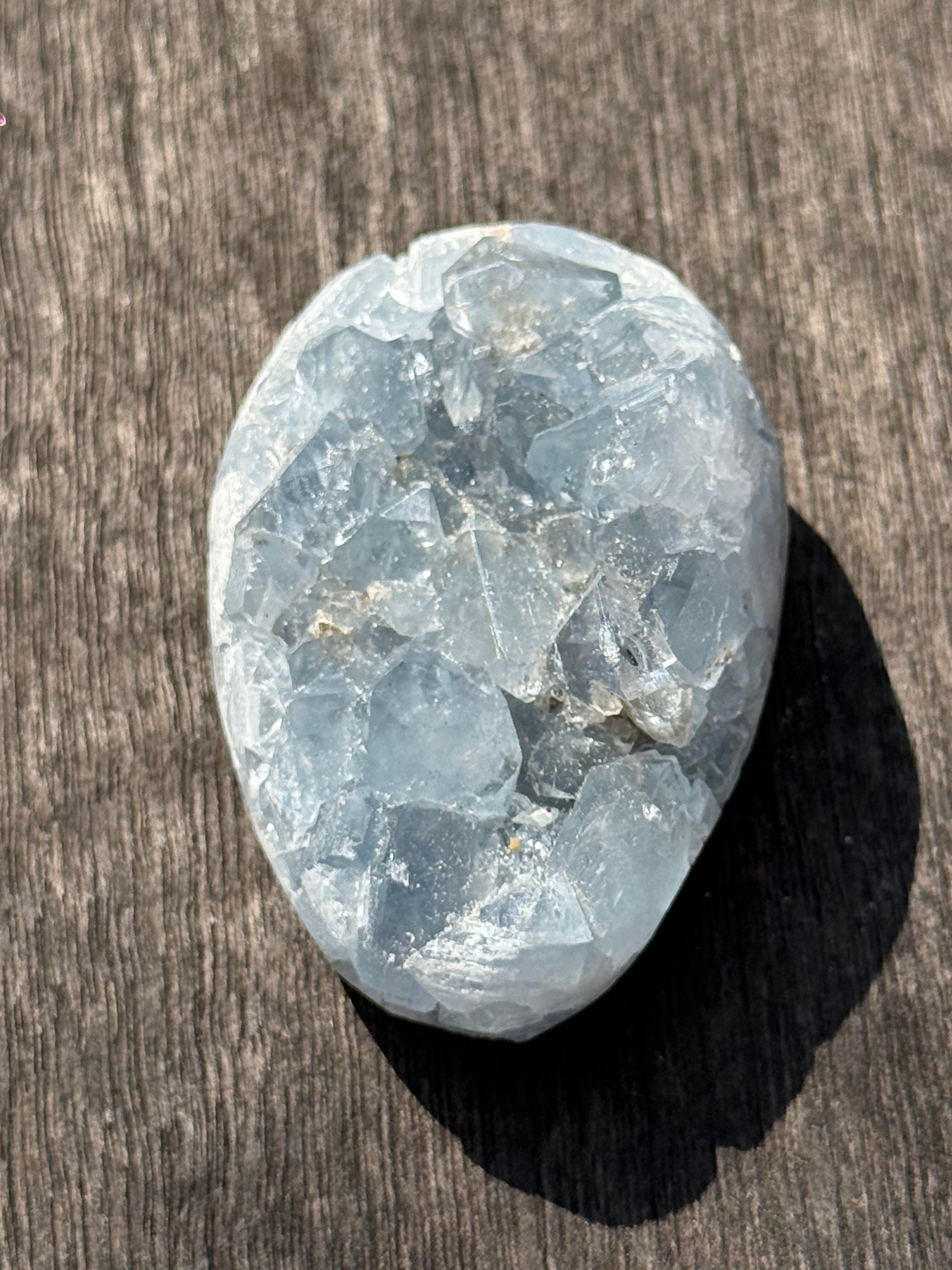こちらは、透明感あふれる優しい色合いのセレスタイトで作られたエッグ型のアイテムです。天然・無着色にこだわり、その美しい光沢と深い色合いをお楽しみいただけます。