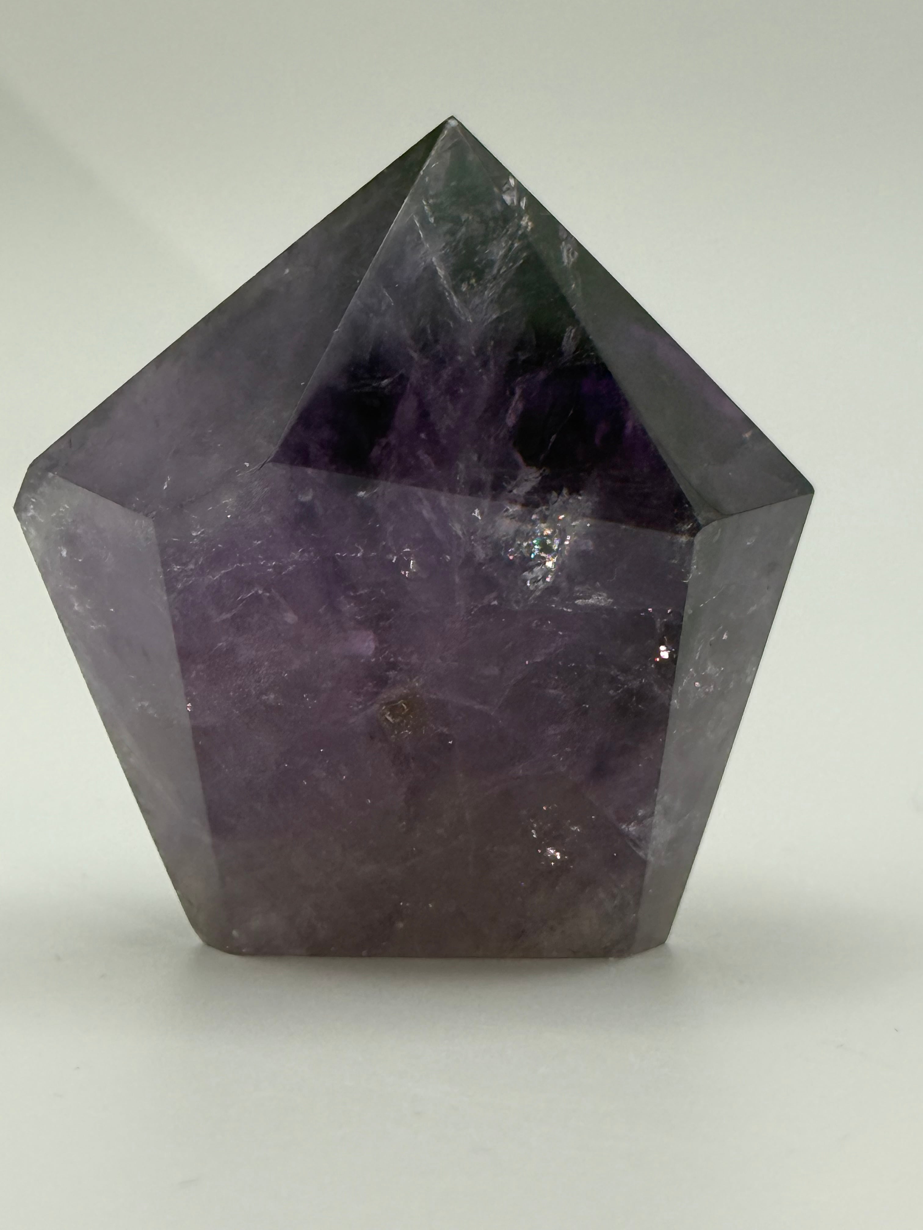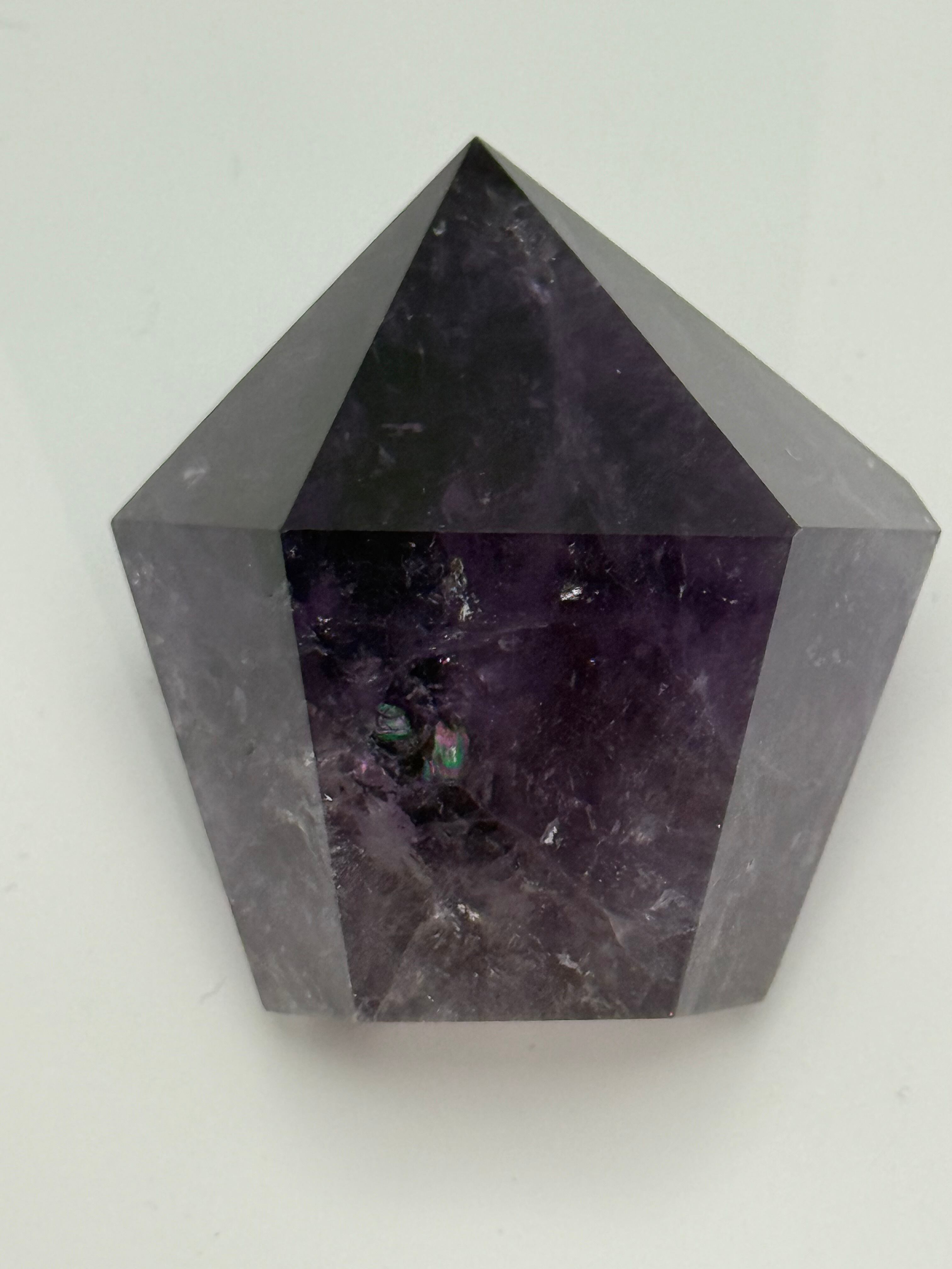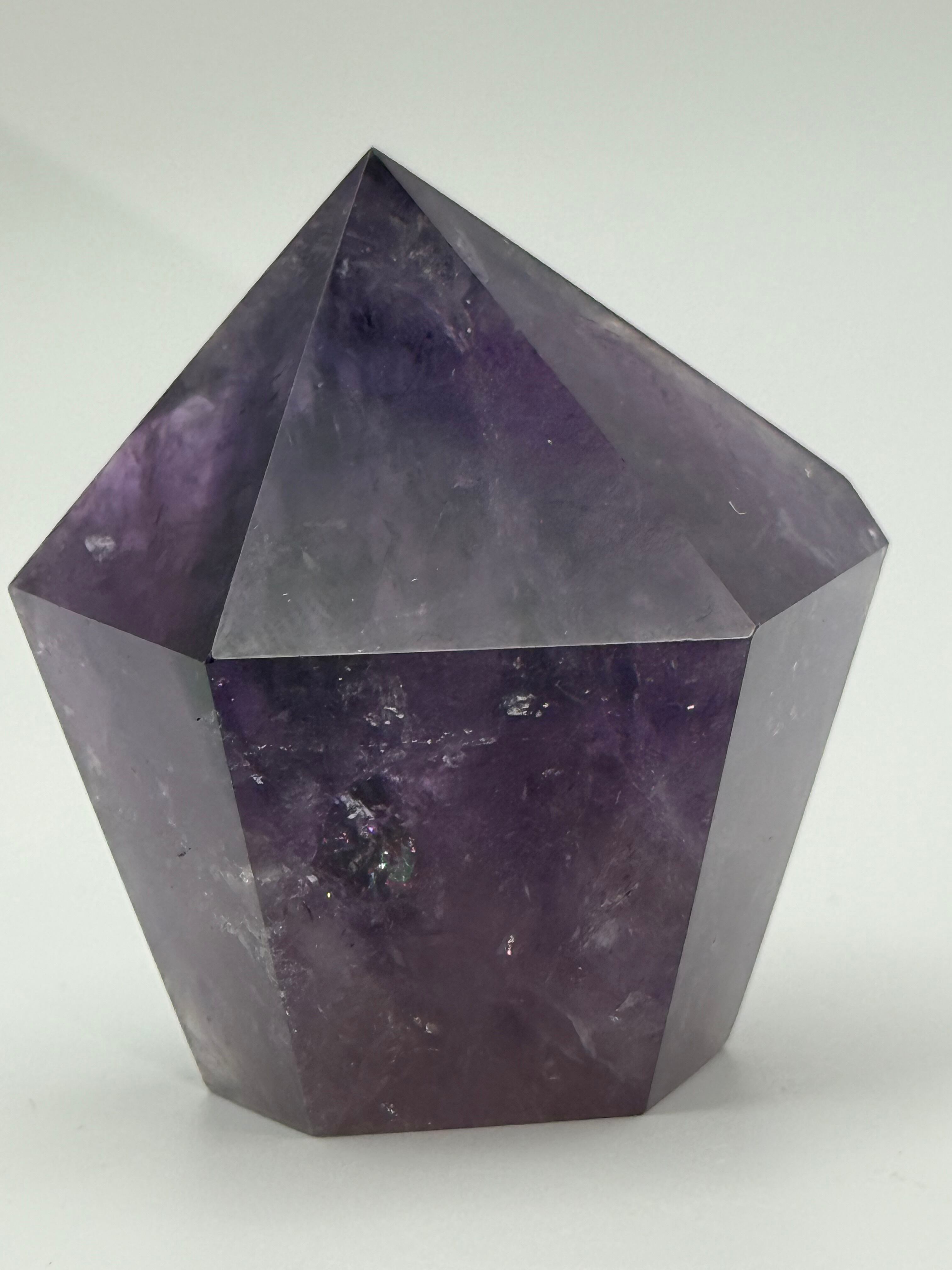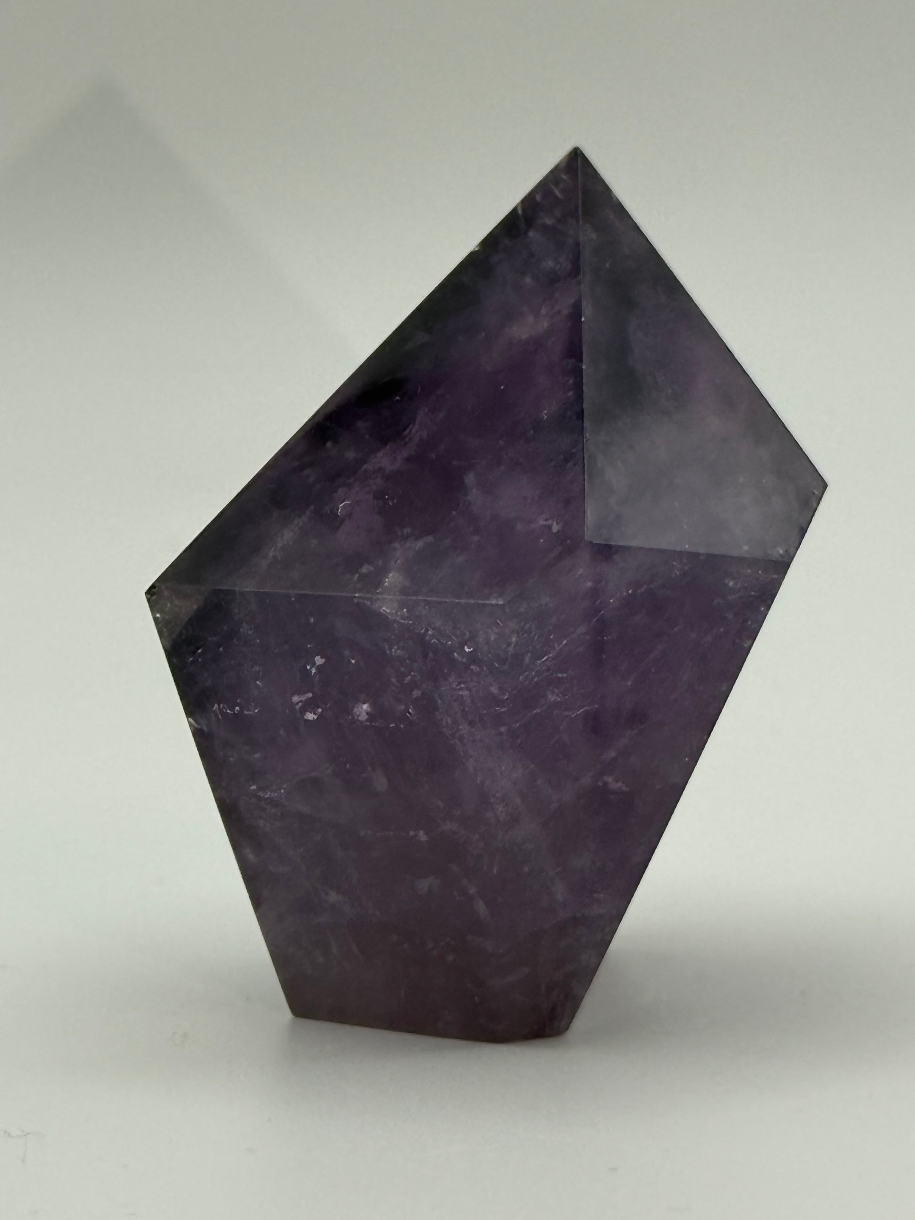 このアメジストは、特有の色合いと逆テーパーのデザインが美しく、光を受けることで心地よい輝きを放ちます。深い紫色が放つ魅力は、あなたの日常に静かな安らぎをもたらし、心の豊かさを引き出します。